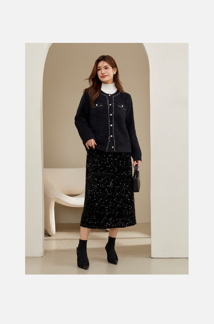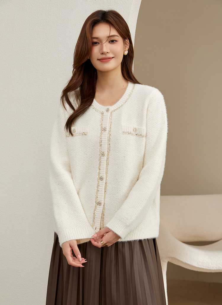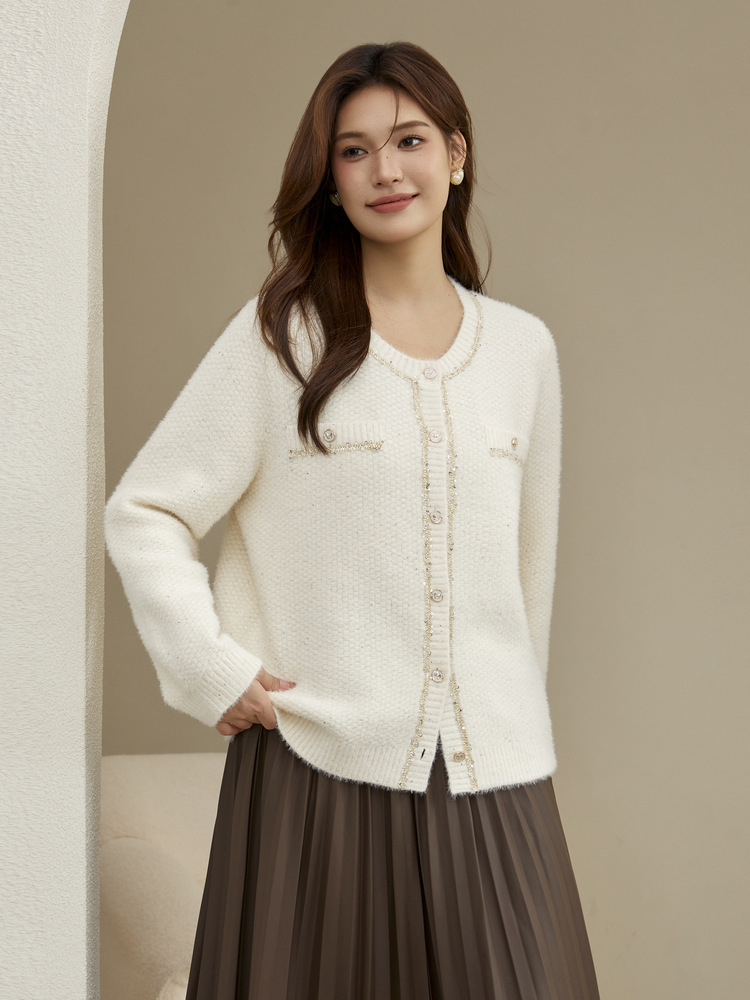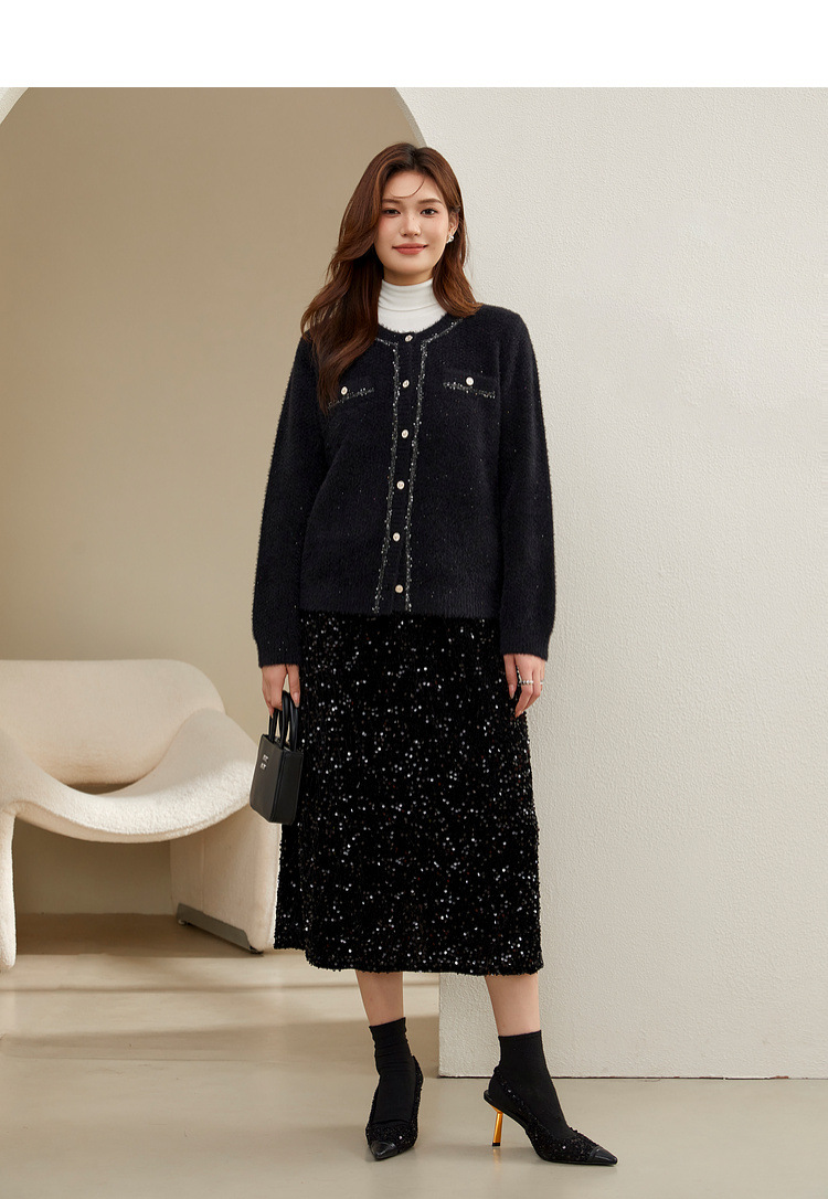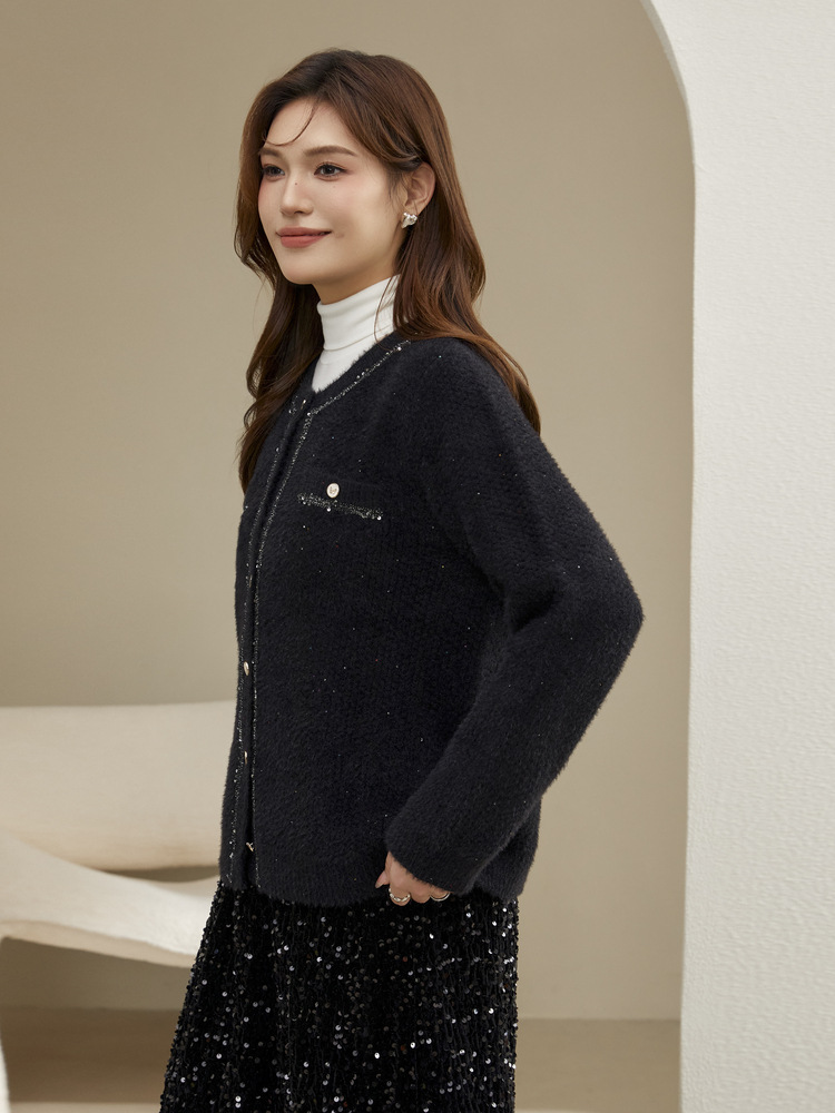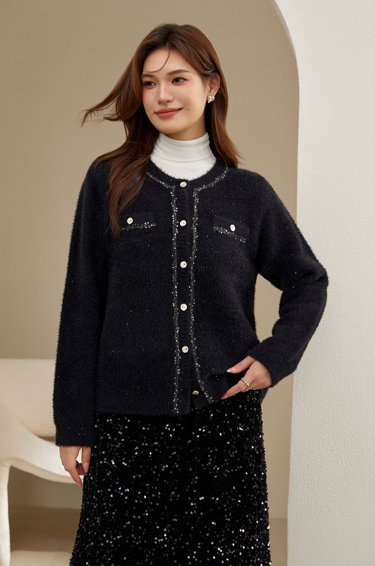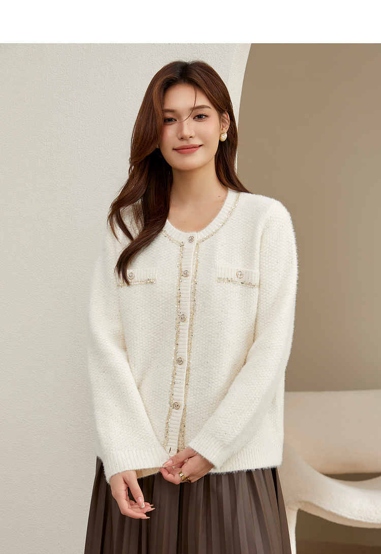 Funny Show большой размер женская французская ретро нежный стиль темперамент модный вязаный кардиган жирный mm2024 зимняя одежда новый