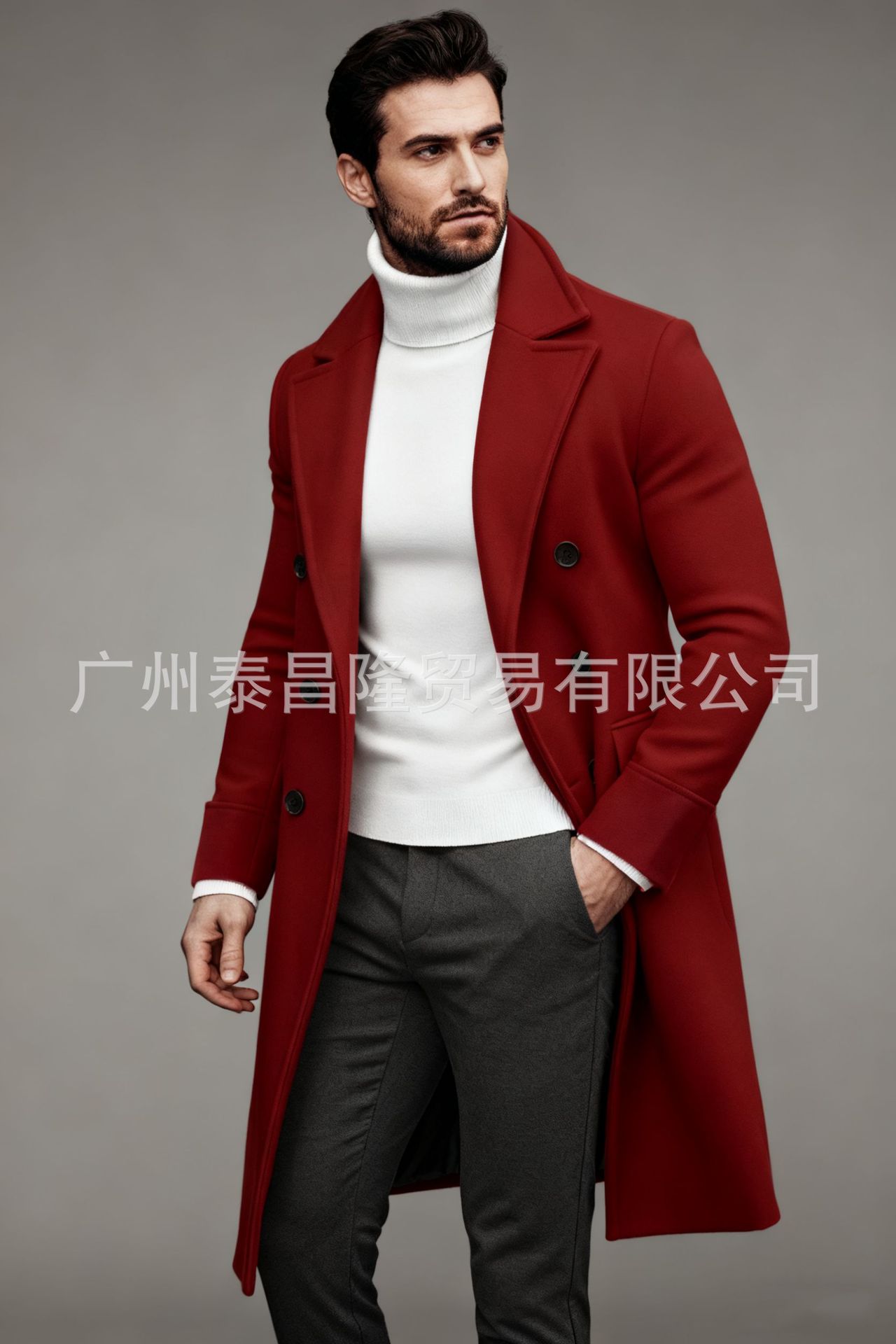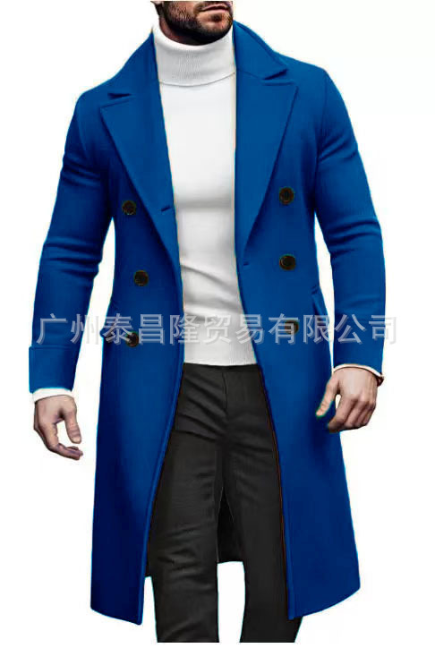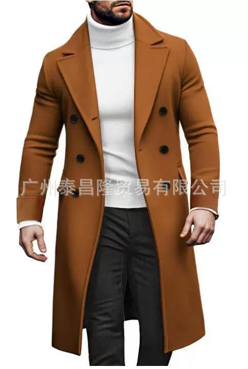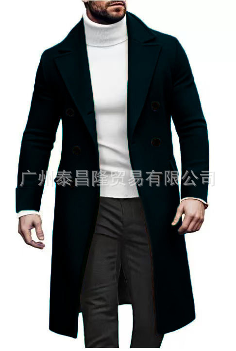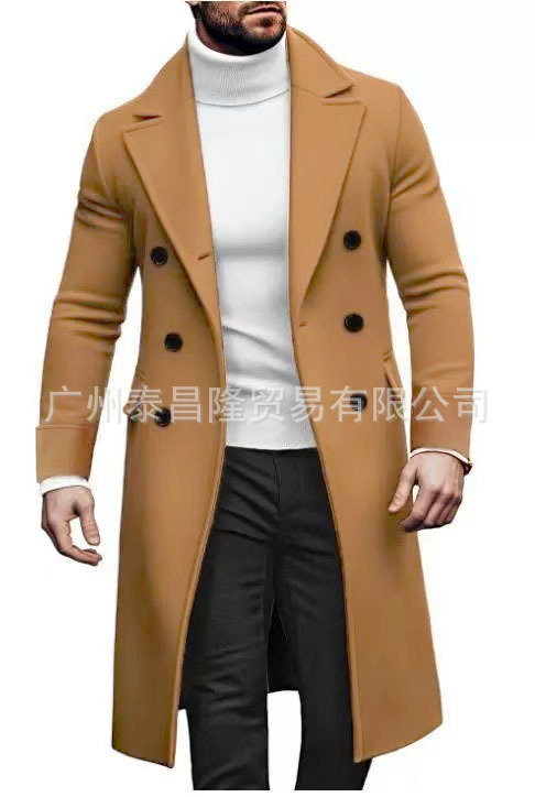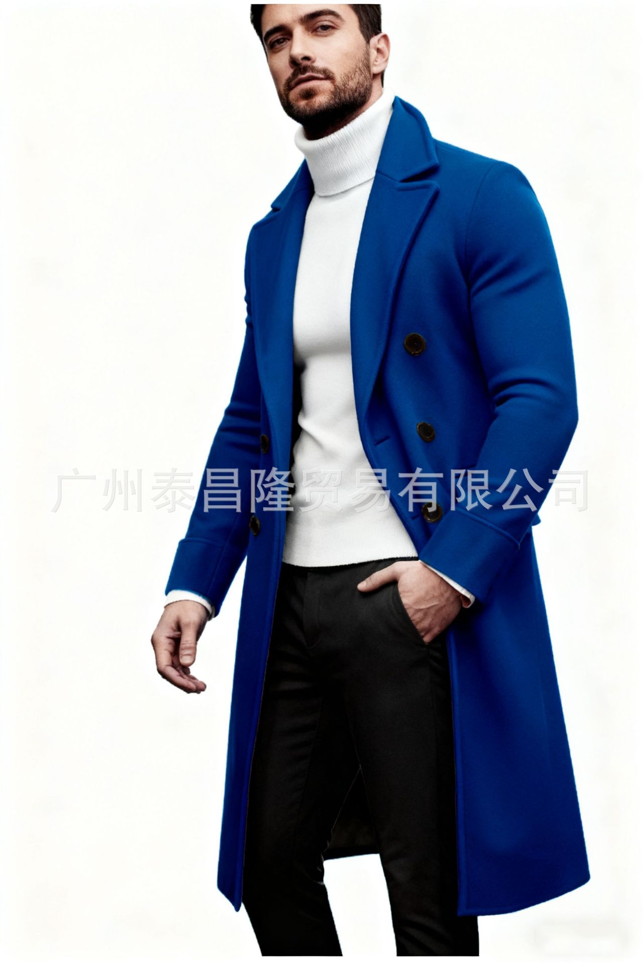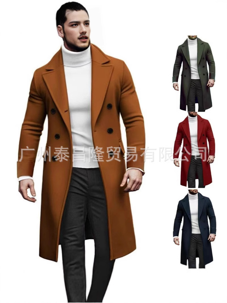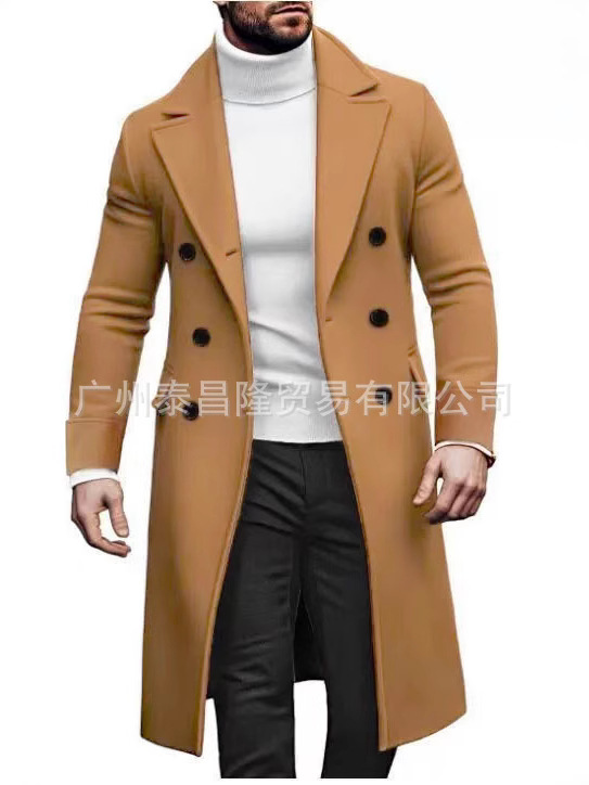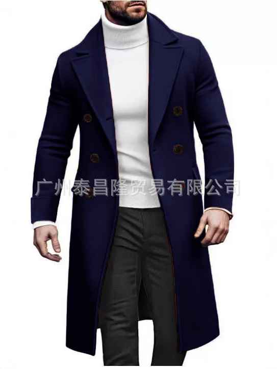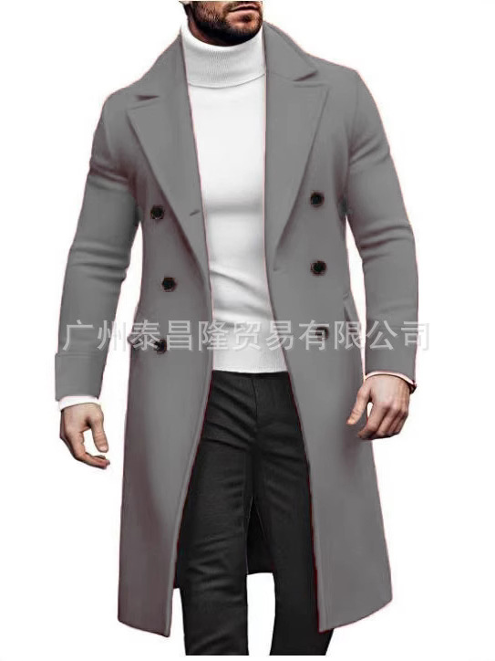 AliExpress Amazon трансграничная внешняя торговля популярная мужская шерстяная длинная верхняя одежда двубортная мужская верхняя одежда верхняя одежда в британском стиле
