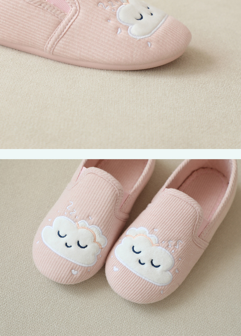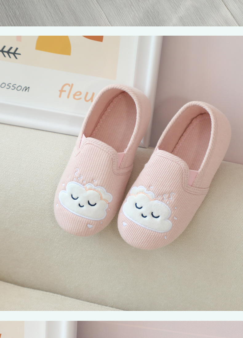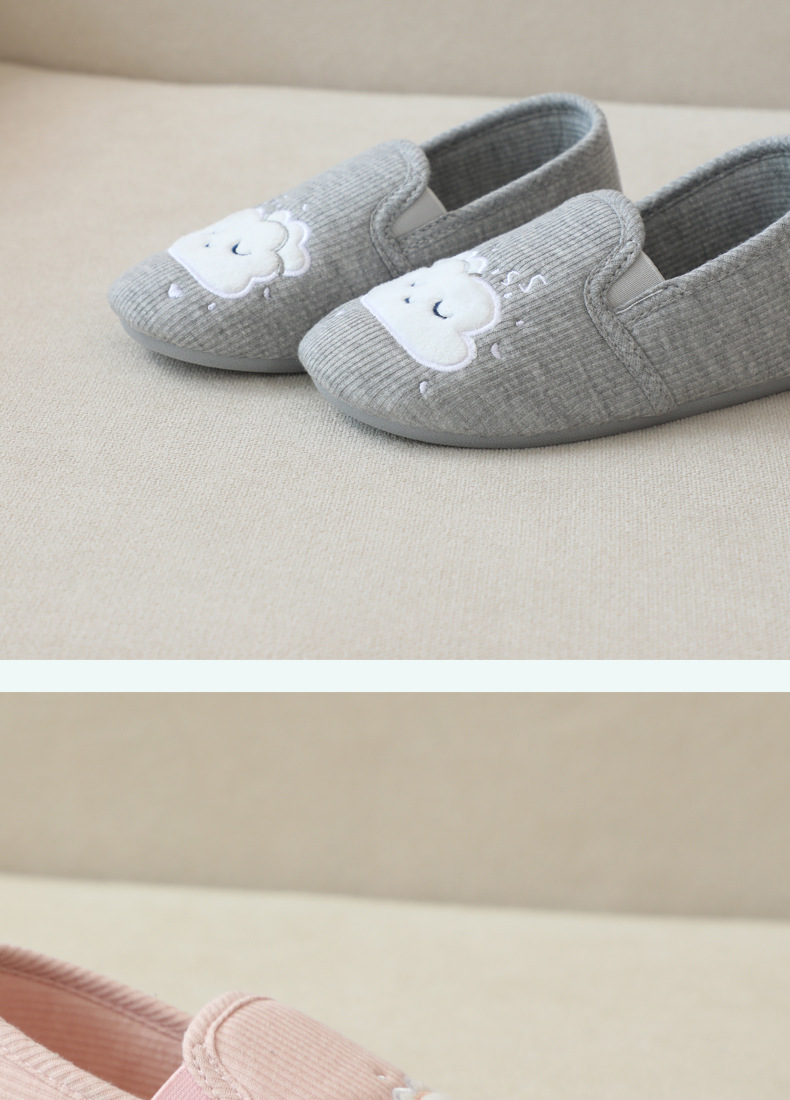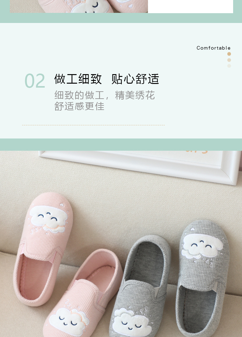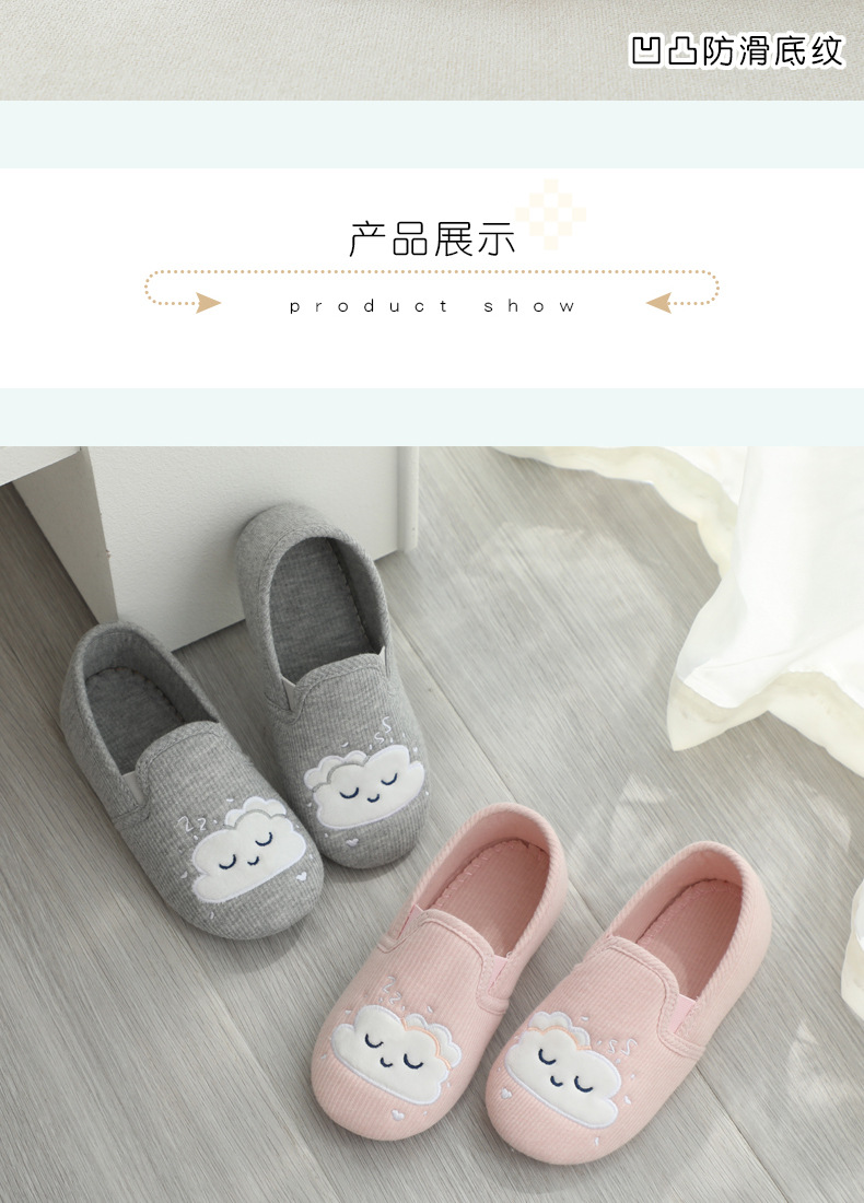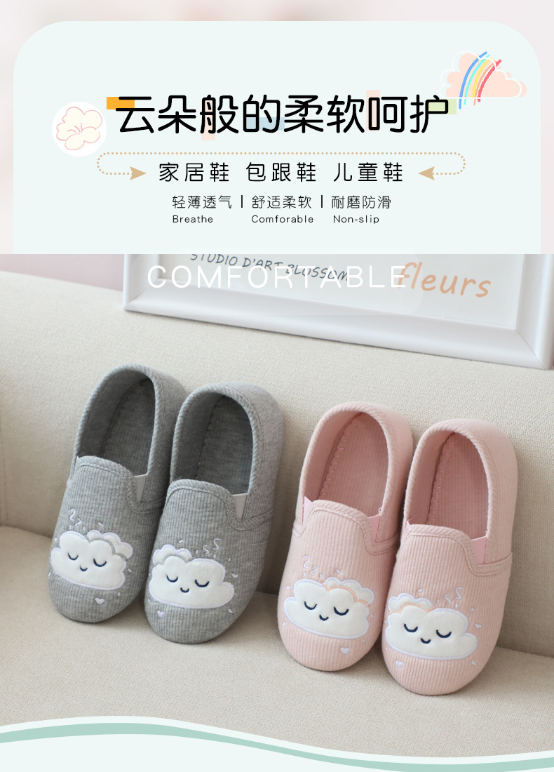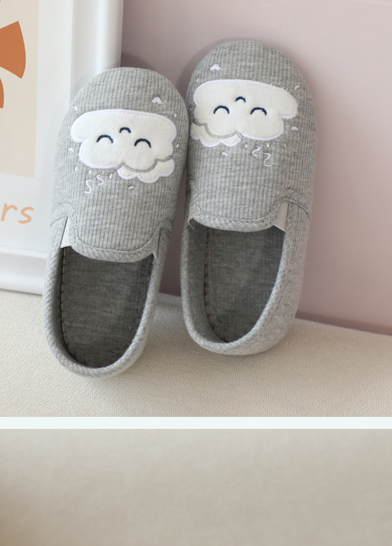 31-35 Весна и Осень Девушки Симпатичные облака Крытый дом Хлопковая обувь Деревянные полы Смена ног Тапочки для девочек Большая детская обувь