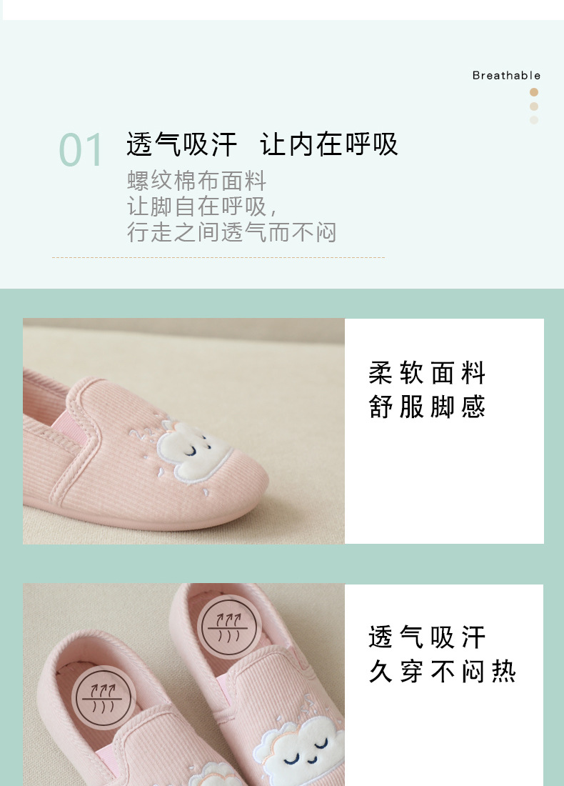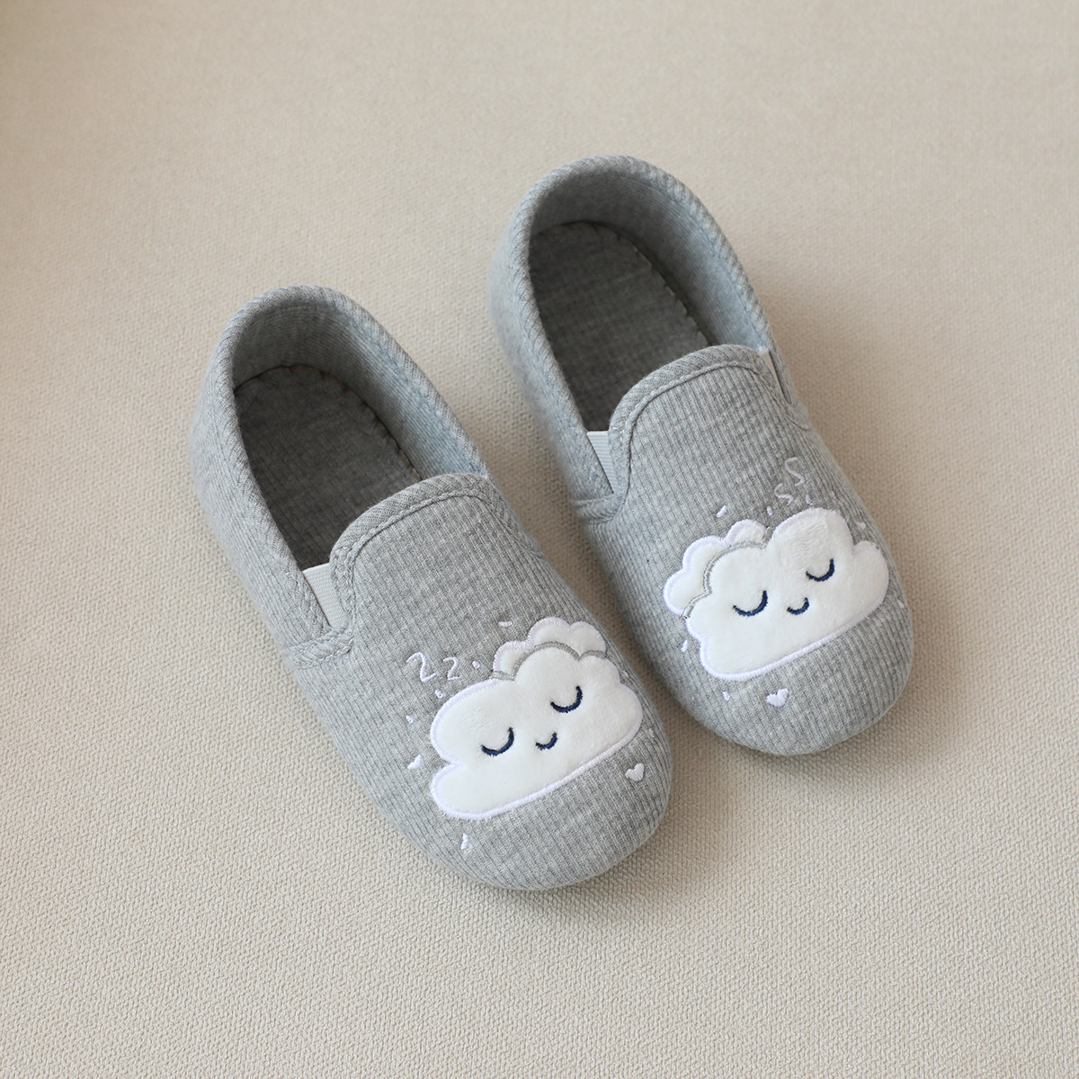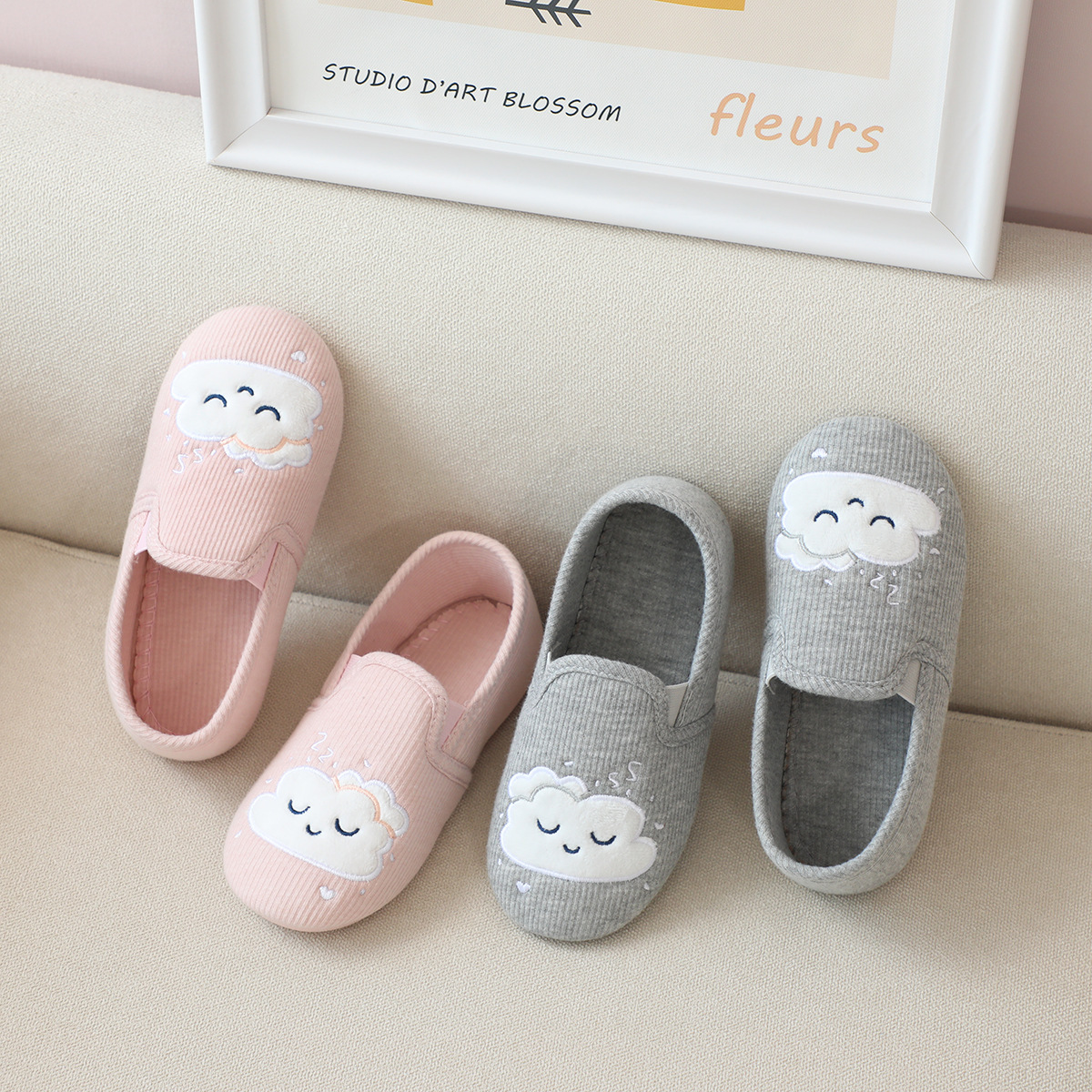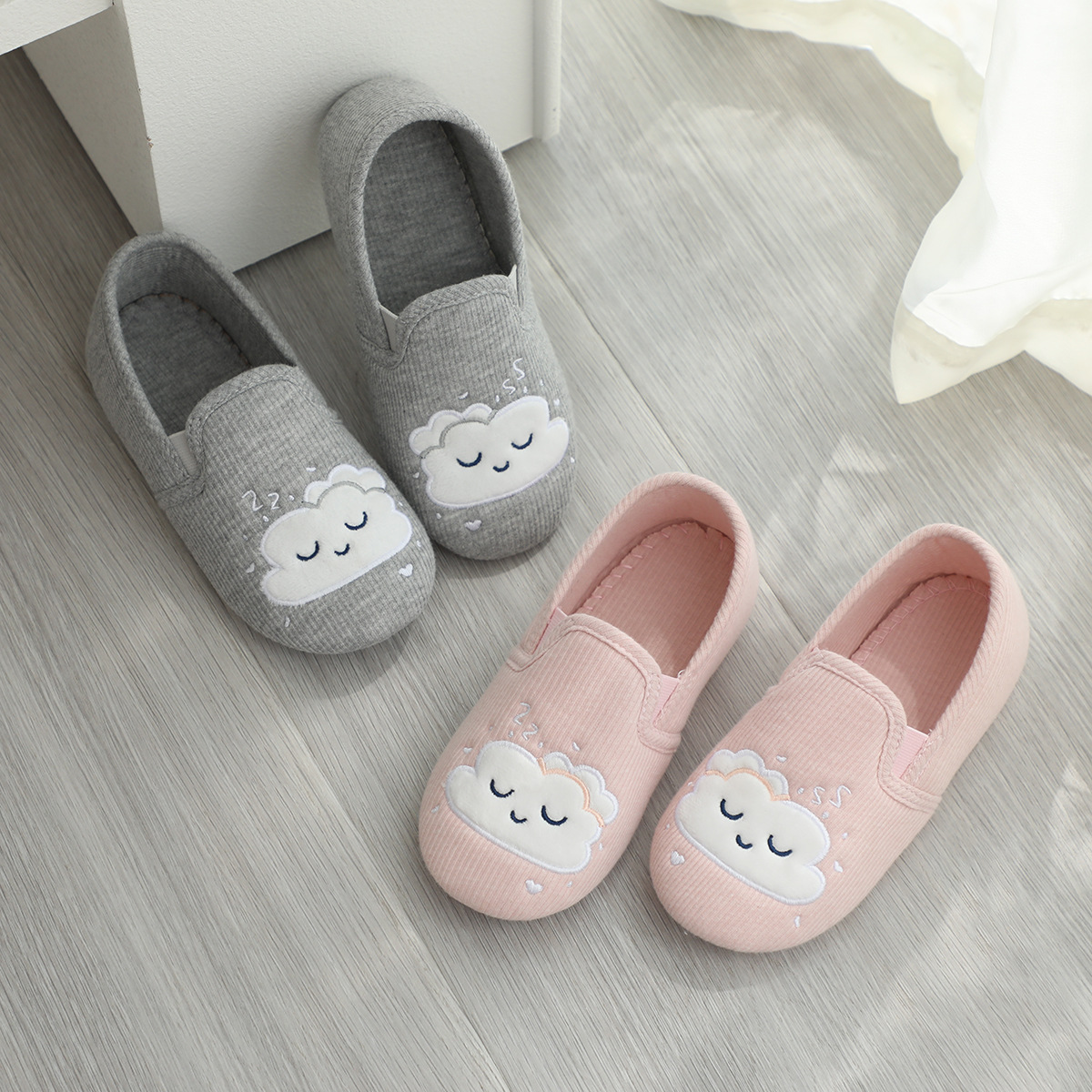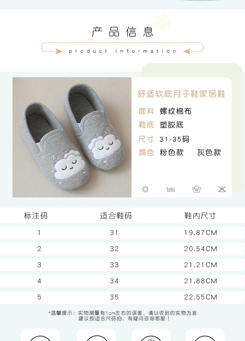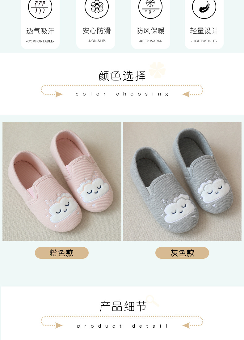 31-35 Весна и Осень Девушки Симпатичные облака Крытый дом Хлопковая обувь Деревянные полы Смена ног Тапочки для девочек Большая детская обувь