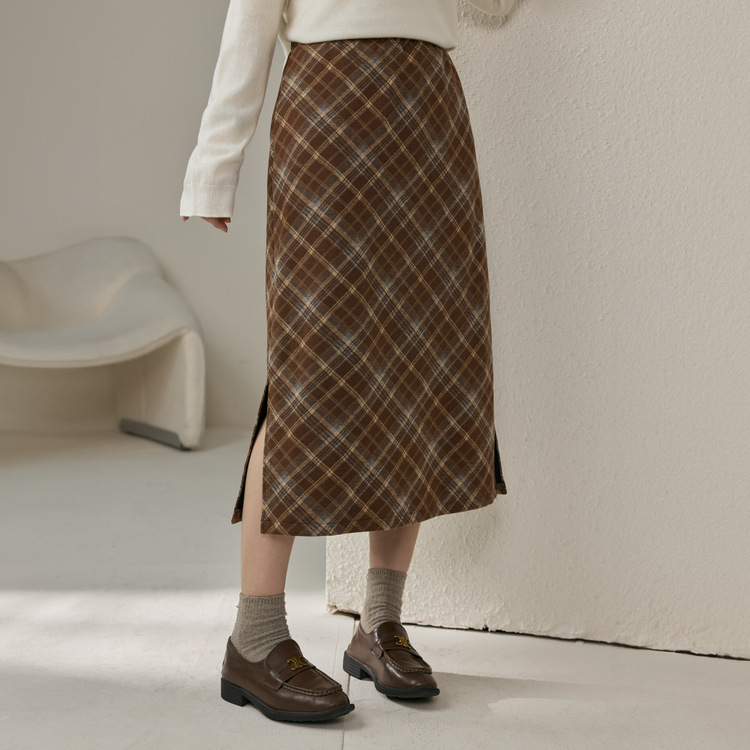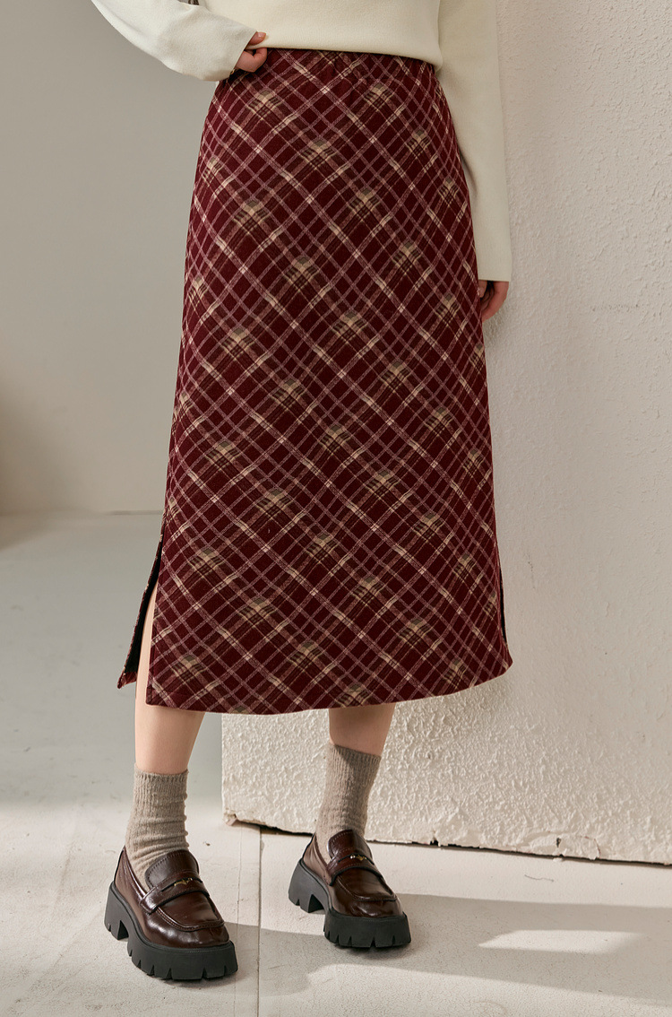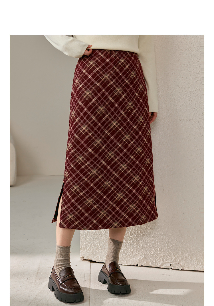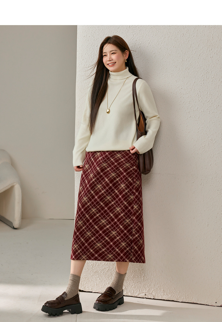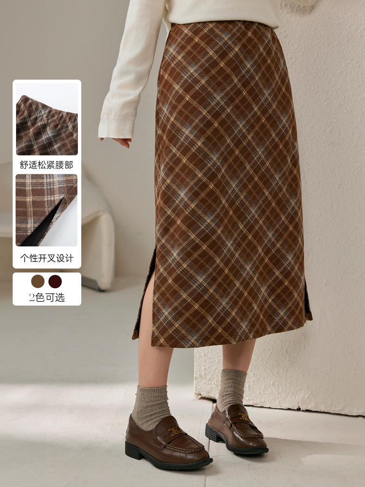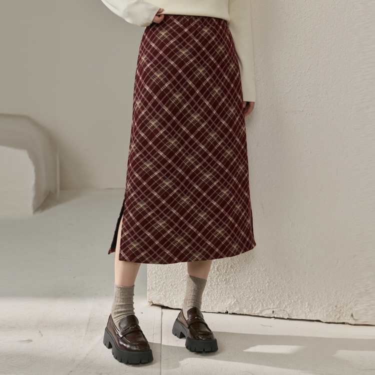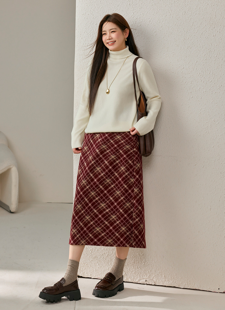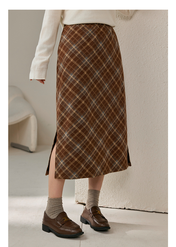 [Ретро клетчатая юбка] Полноцветный большой размер женская прямая крыша, тонкая юбка, толстая юбка mm2024 зимняя новая