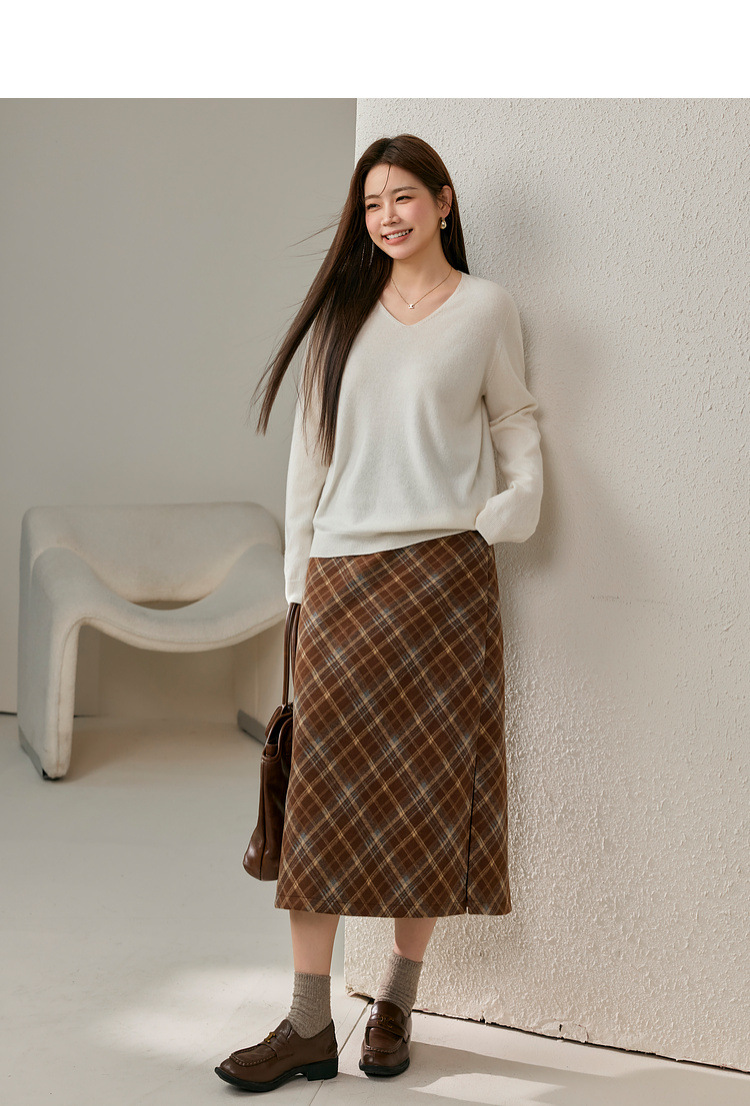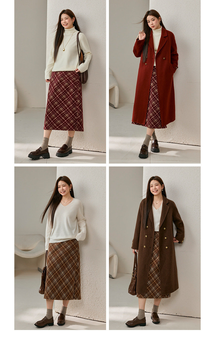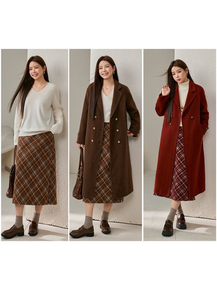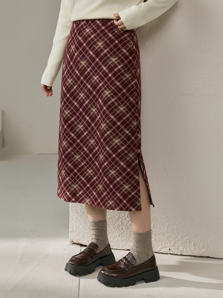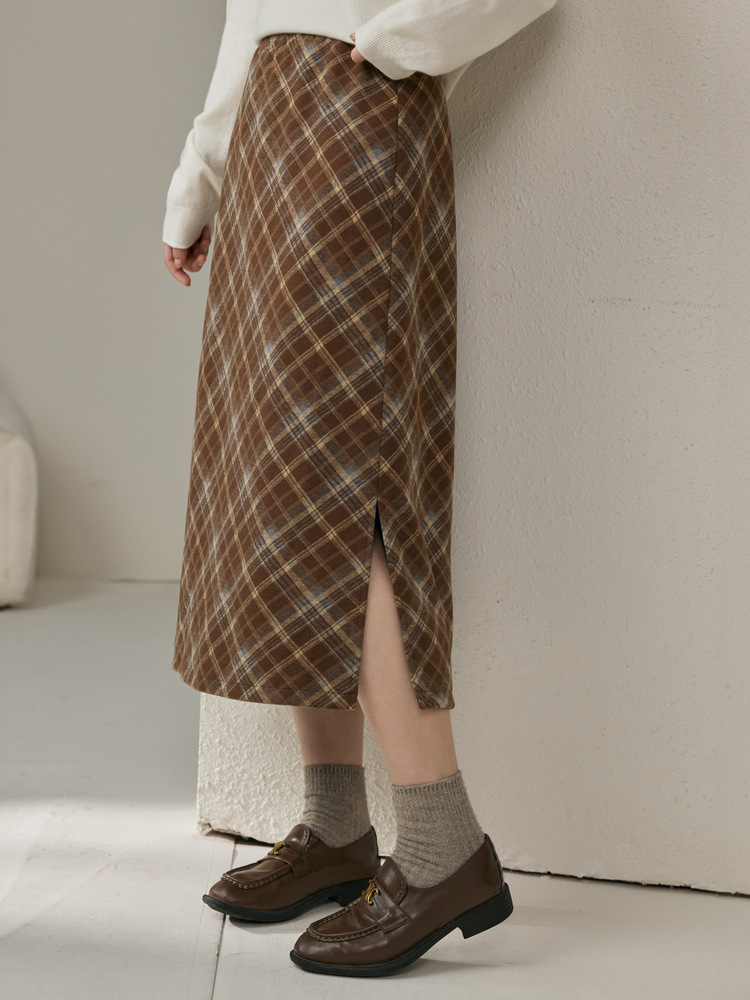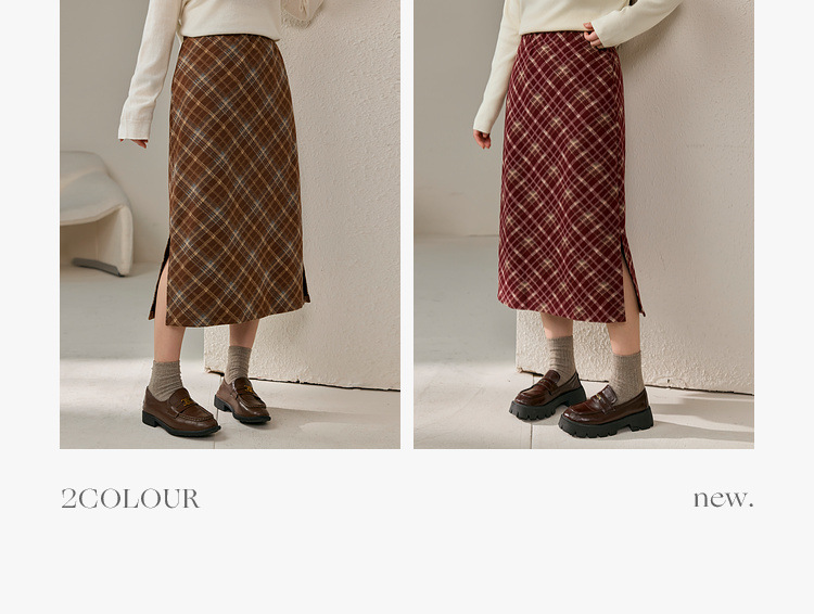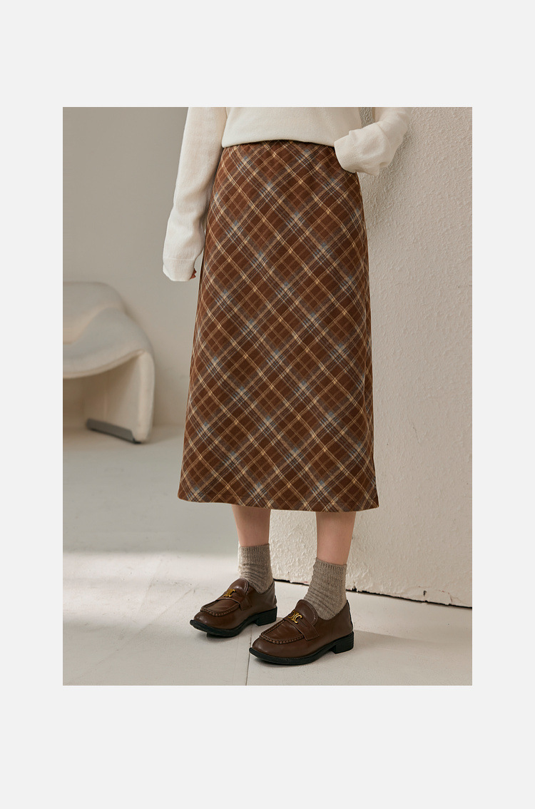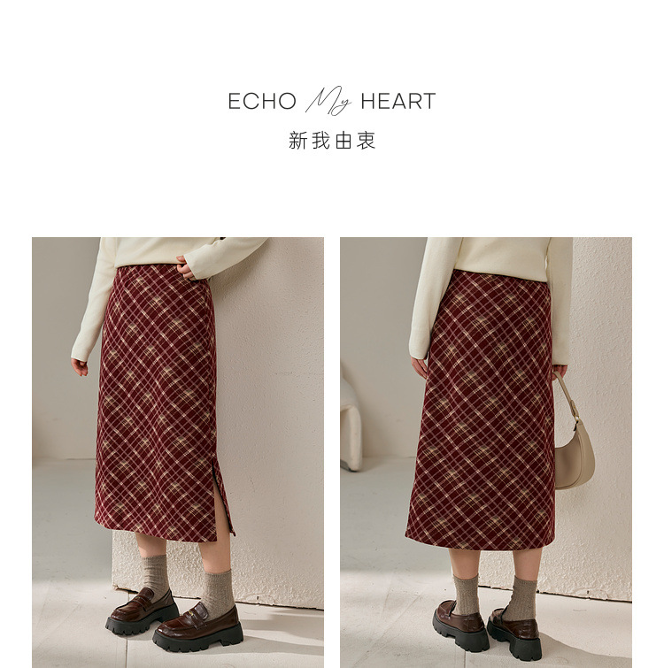[Ретро клетчатая юбка] Полноцветный большой размер женская прямая крыша, тонкая юбка, толстая юбка mm2024 зимняя новая