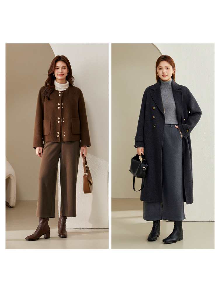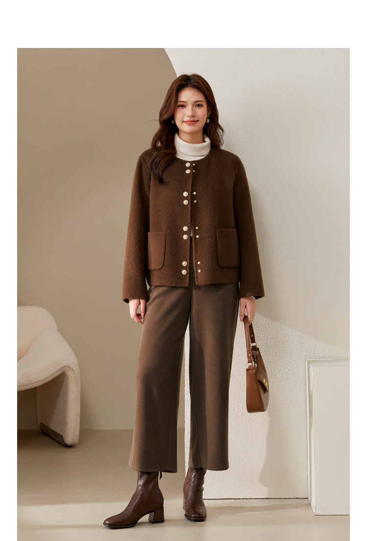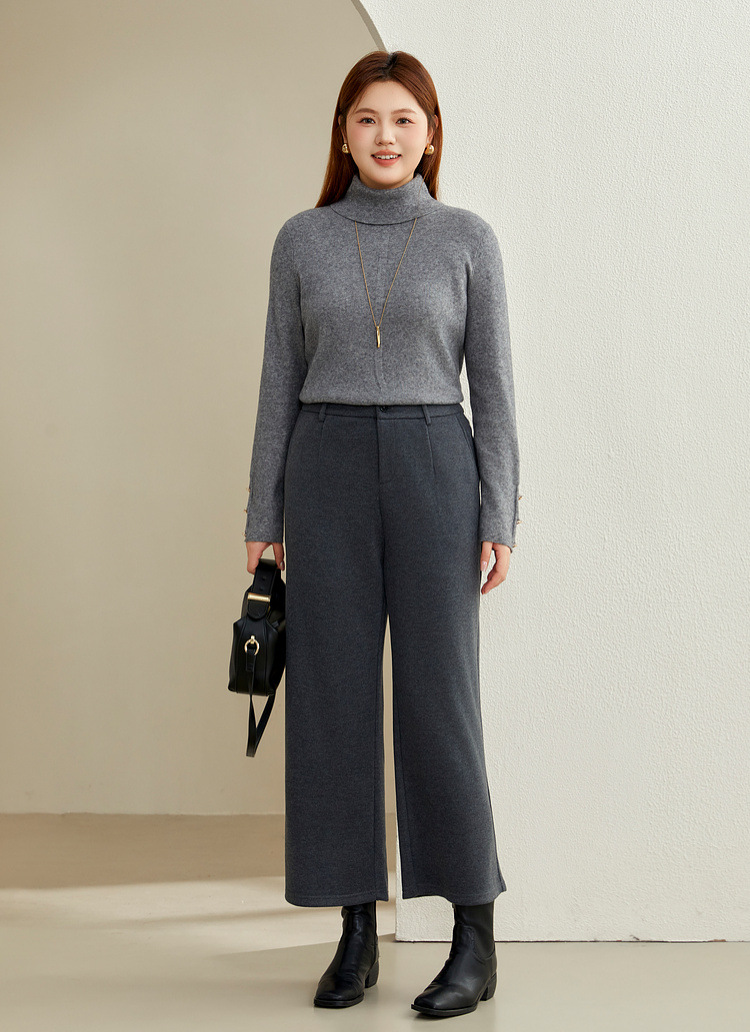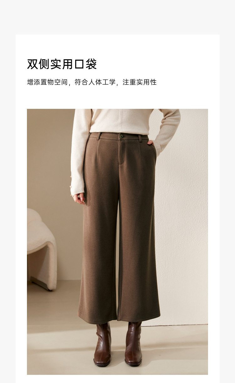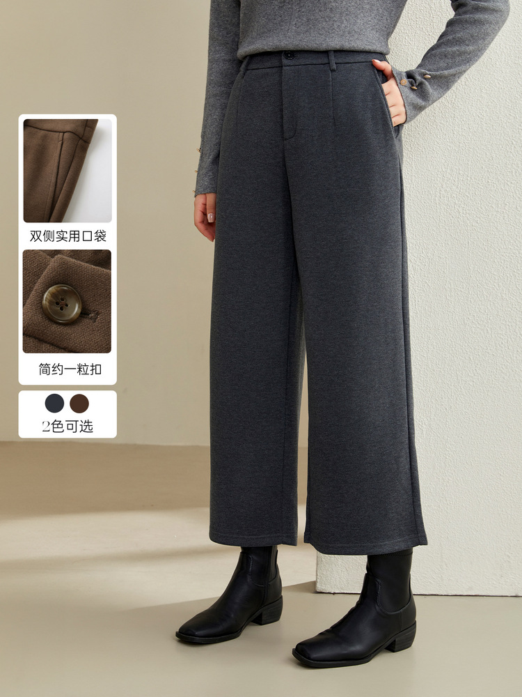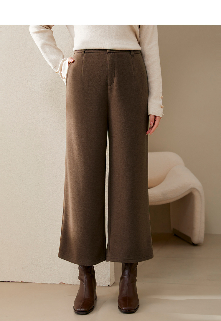 Слепое шоу большой размер женская дикая пригородная прямая крытая тонкая и удобная коричневая брюки толстый mm2024 зимний новый