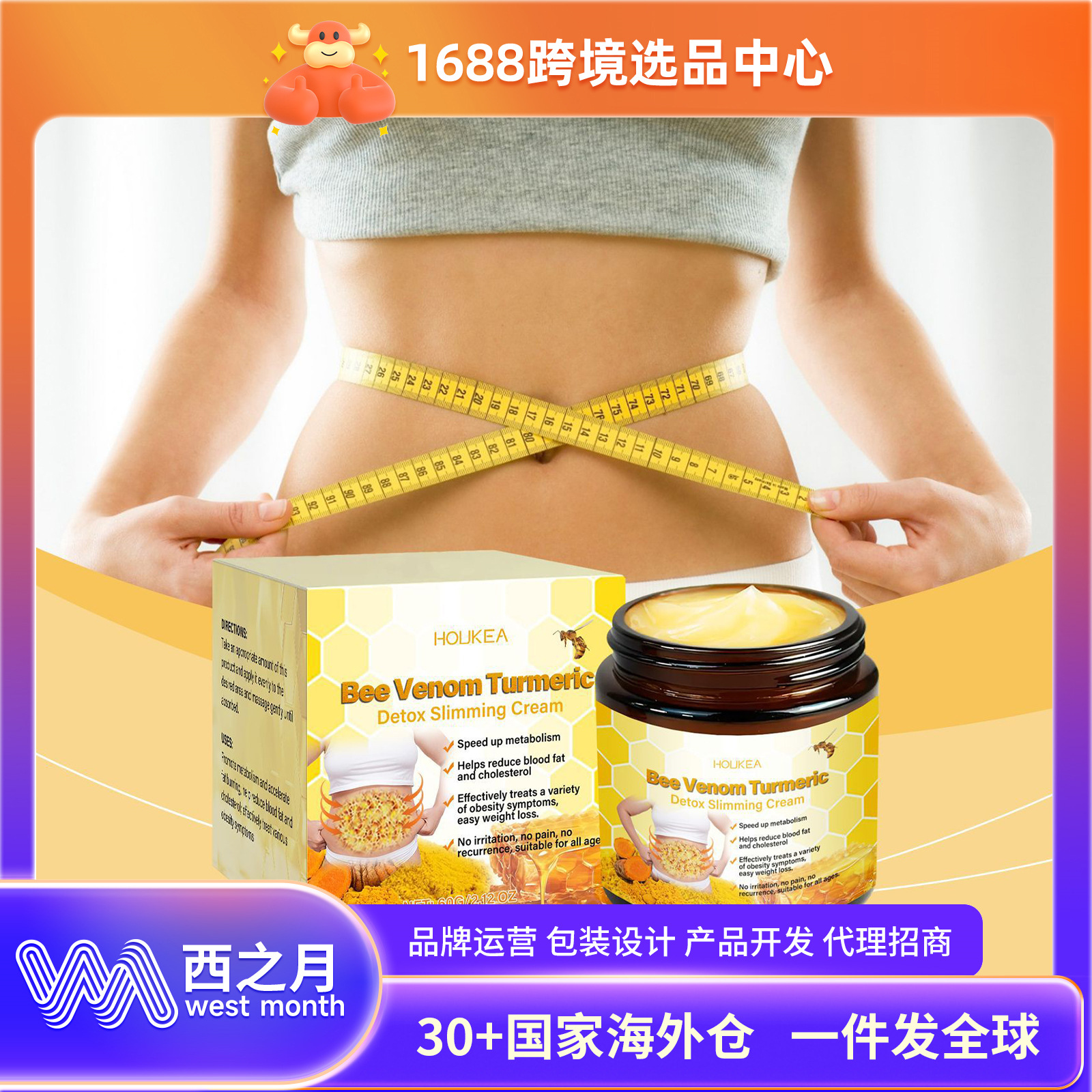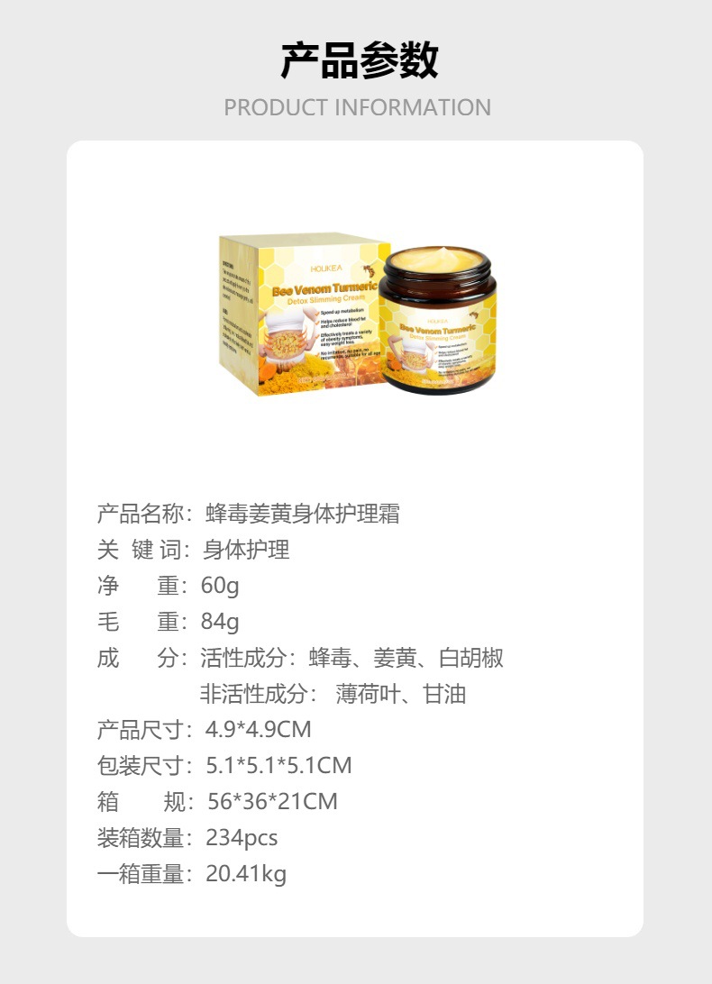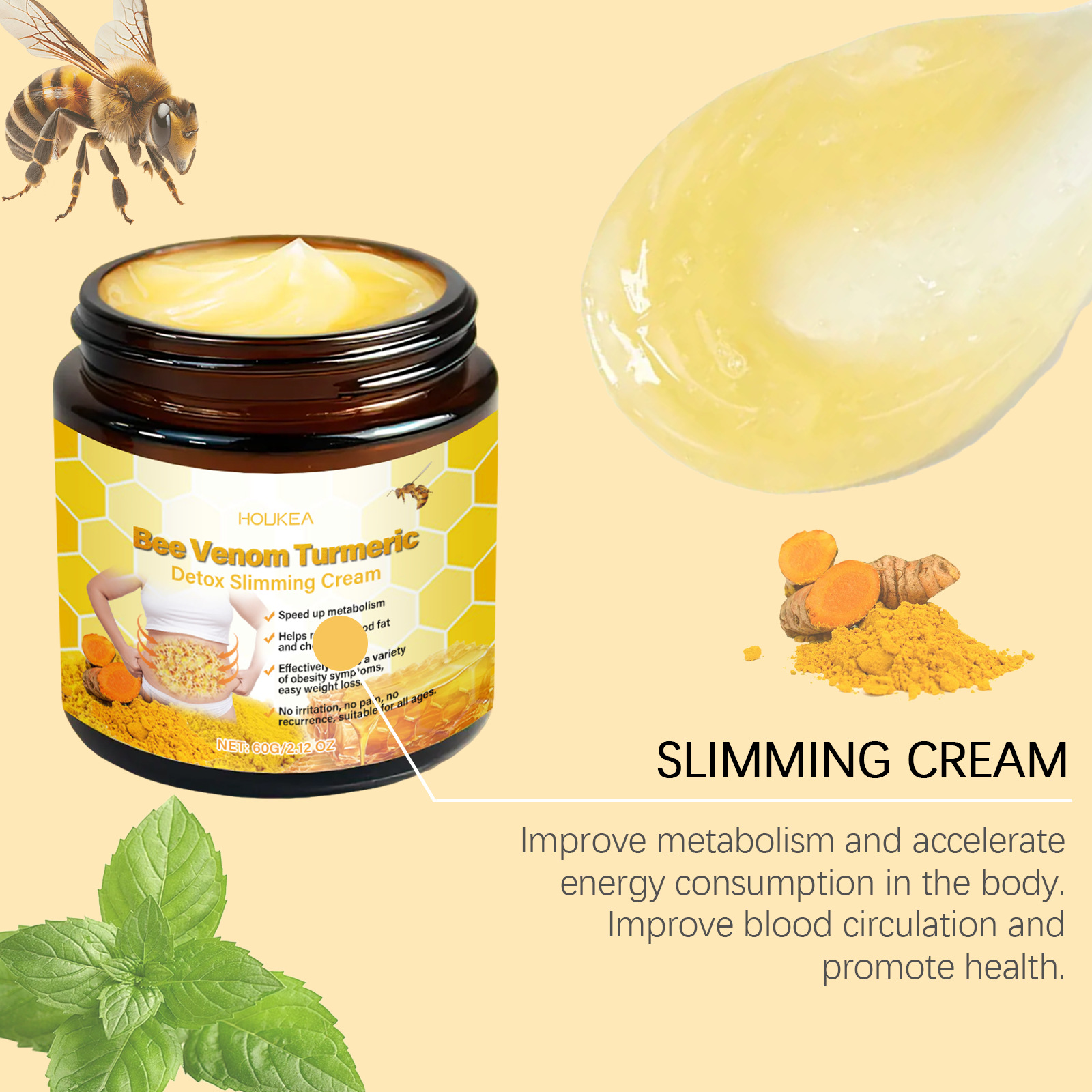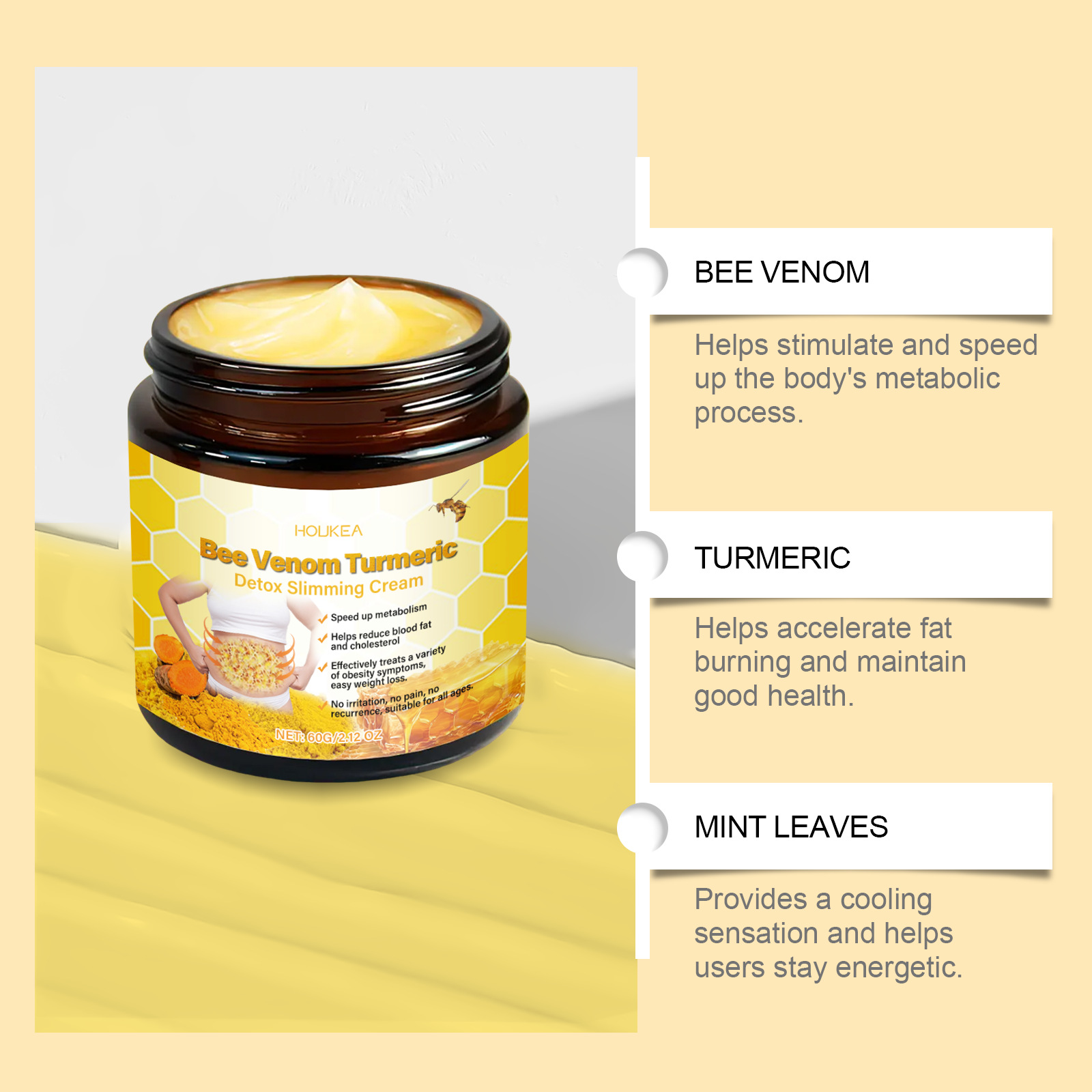 HOUKEA Пчелиный яд Крем для ухода за телом куркумы увлажняет и укрепляет кожу всего тела с выделенными линиями Крем для ухода за телом