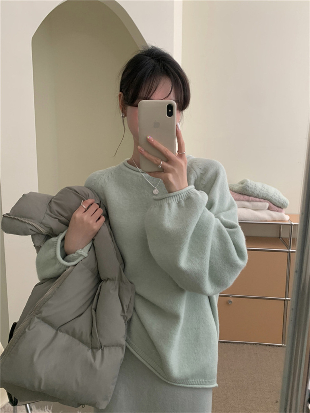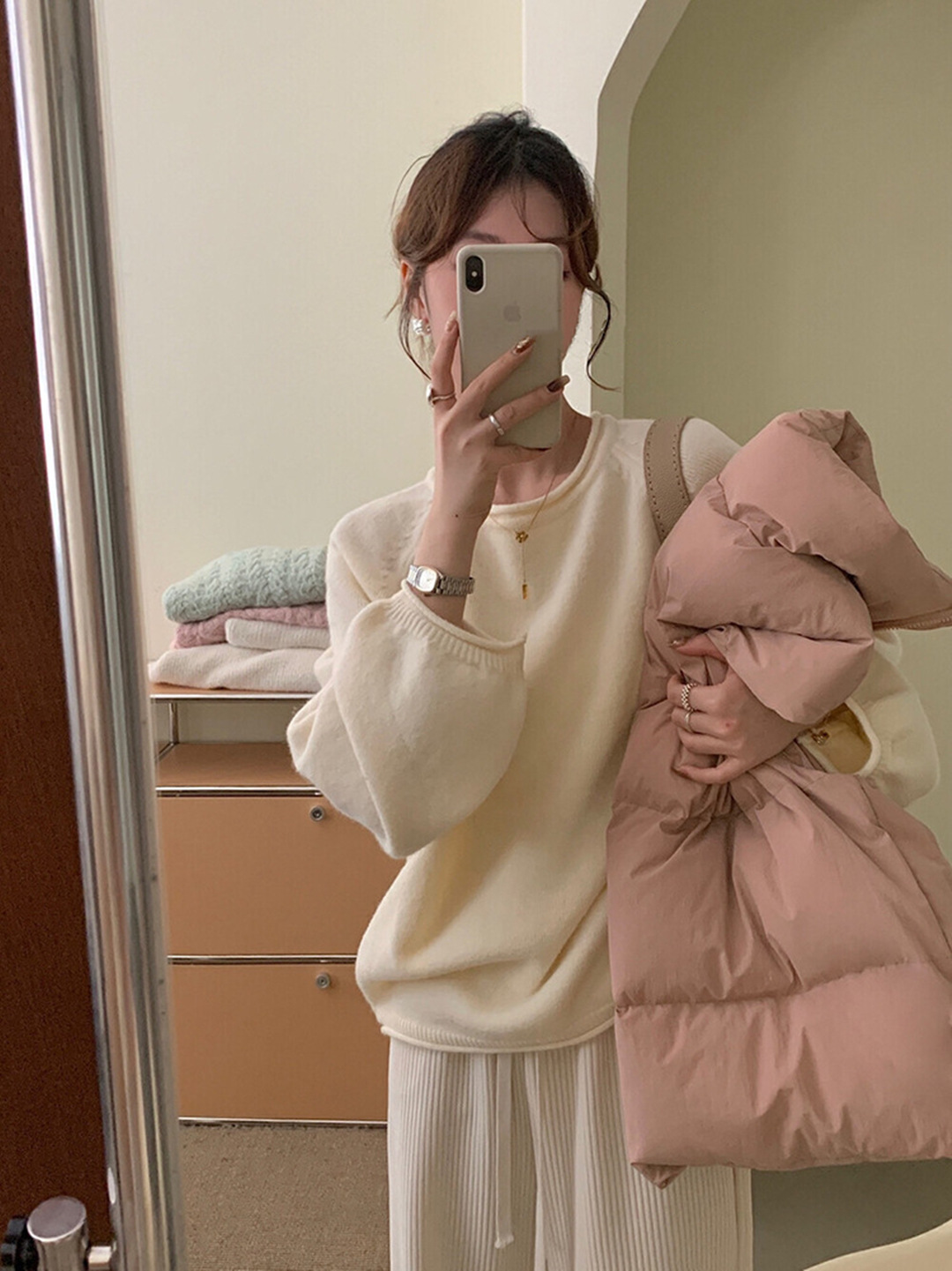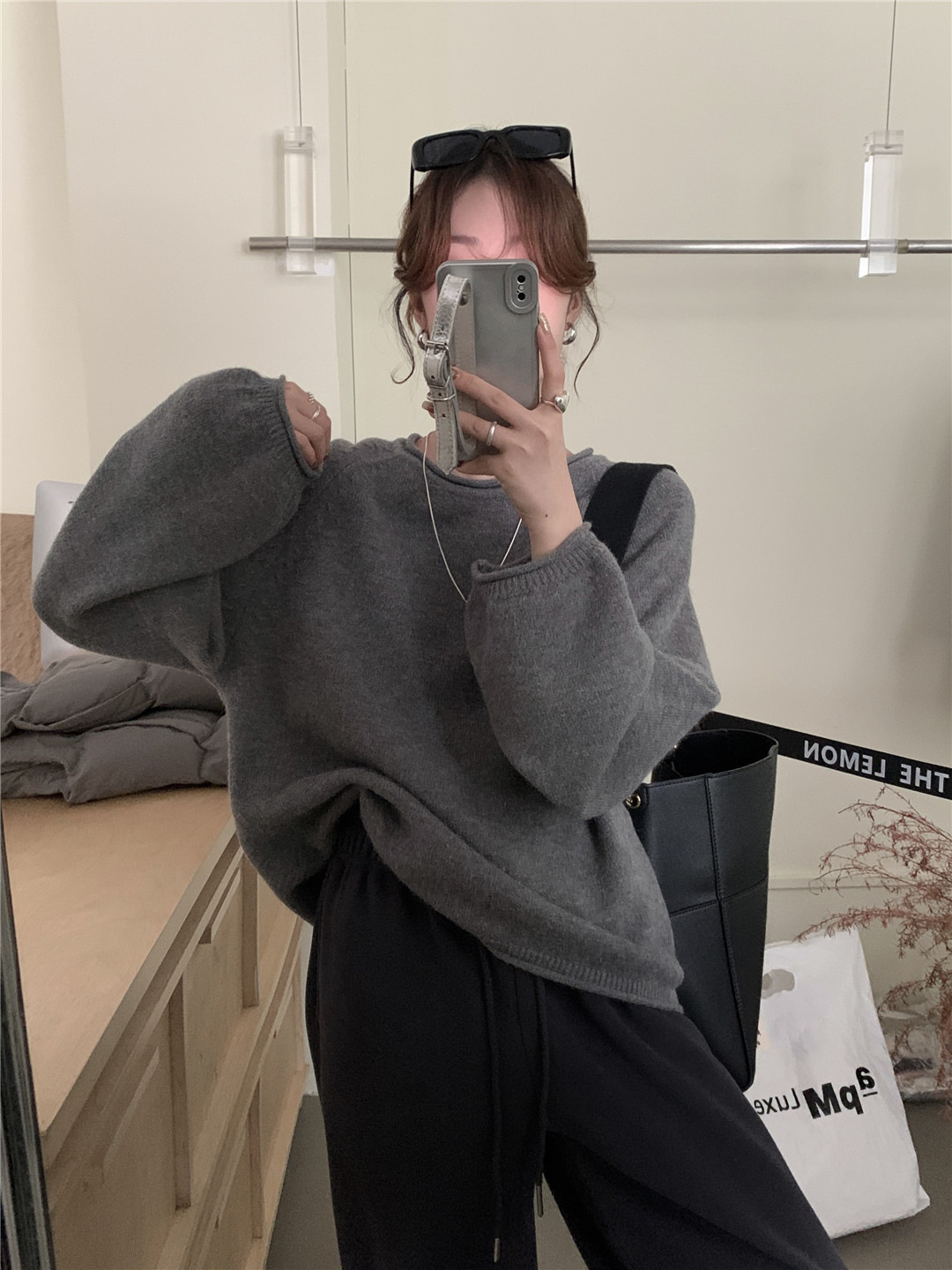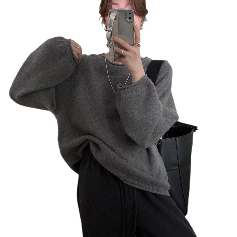 Свиток молока нежный ветер пуловер женский 2024 осень и зима новый простой свободный ленивый стиль свитер женский
