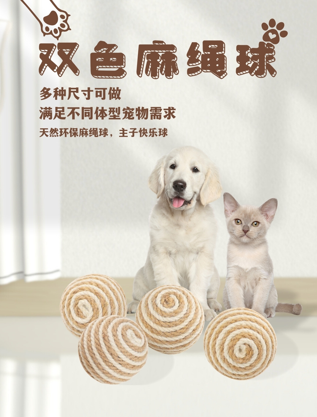 批发宠物玩具6cm双色麻绳球 耐咬磨牙球狗狗猫咪爆款宠物用品