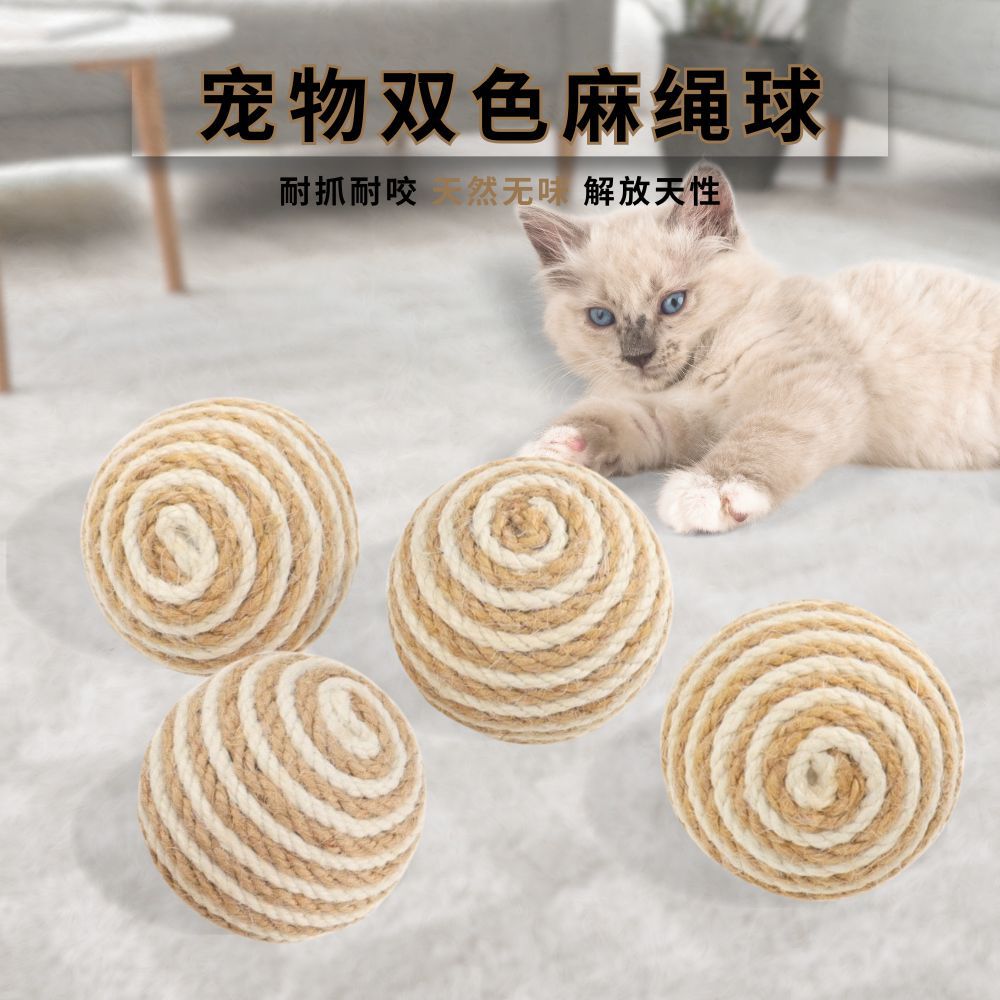 Оптовые игрушки для животных: мяч из двухцветной конопляной веревки 6 см, устойчивый к укусам, для прорезывания зубов, популярные товары для собак и кошек
