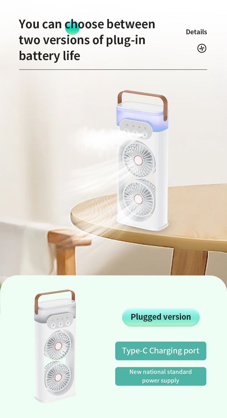 Новый двойной головка спрей вентилятор USB домашний рабочий стол офисный портативный охлаждающий вентилятор с тремя отверстиями холодный увлажнитель вентилятор