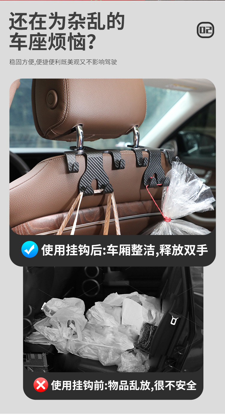 Автомобильный крючок, автомобильный органайзер, многофункциональное хранение на заднем сиденье автомобиля, спинка водительского сиденья, небольшой, из углеродного волокна