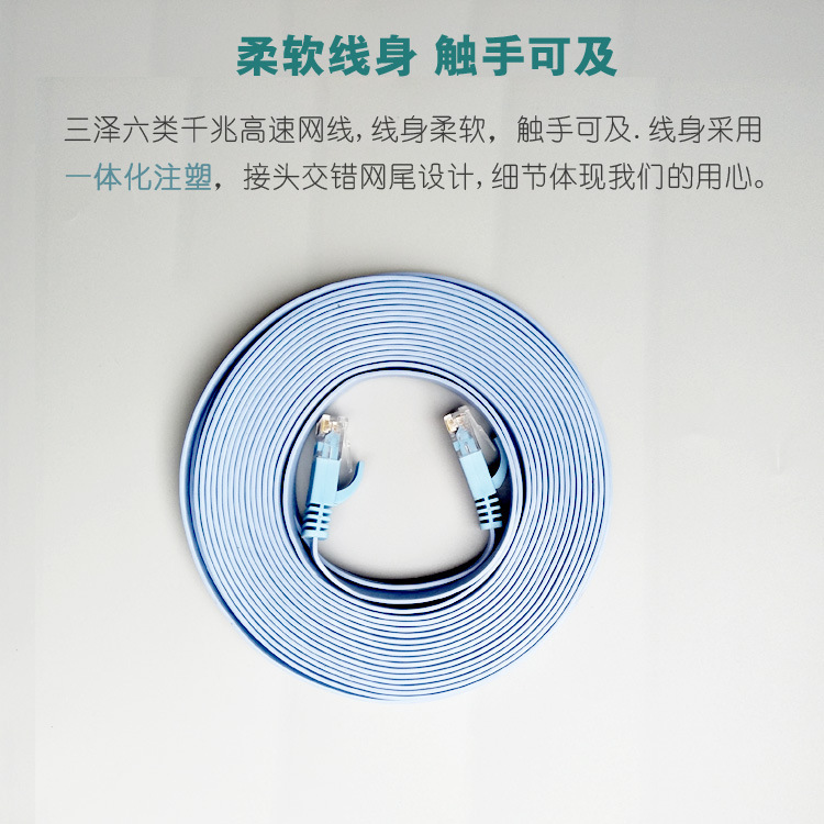 Плоский круглый сетевой кабель Jinsanding категории 6, бескислородная медь, готовая гигабитная 8-жильная сетевая перемычка категории 5 (цвет различается)