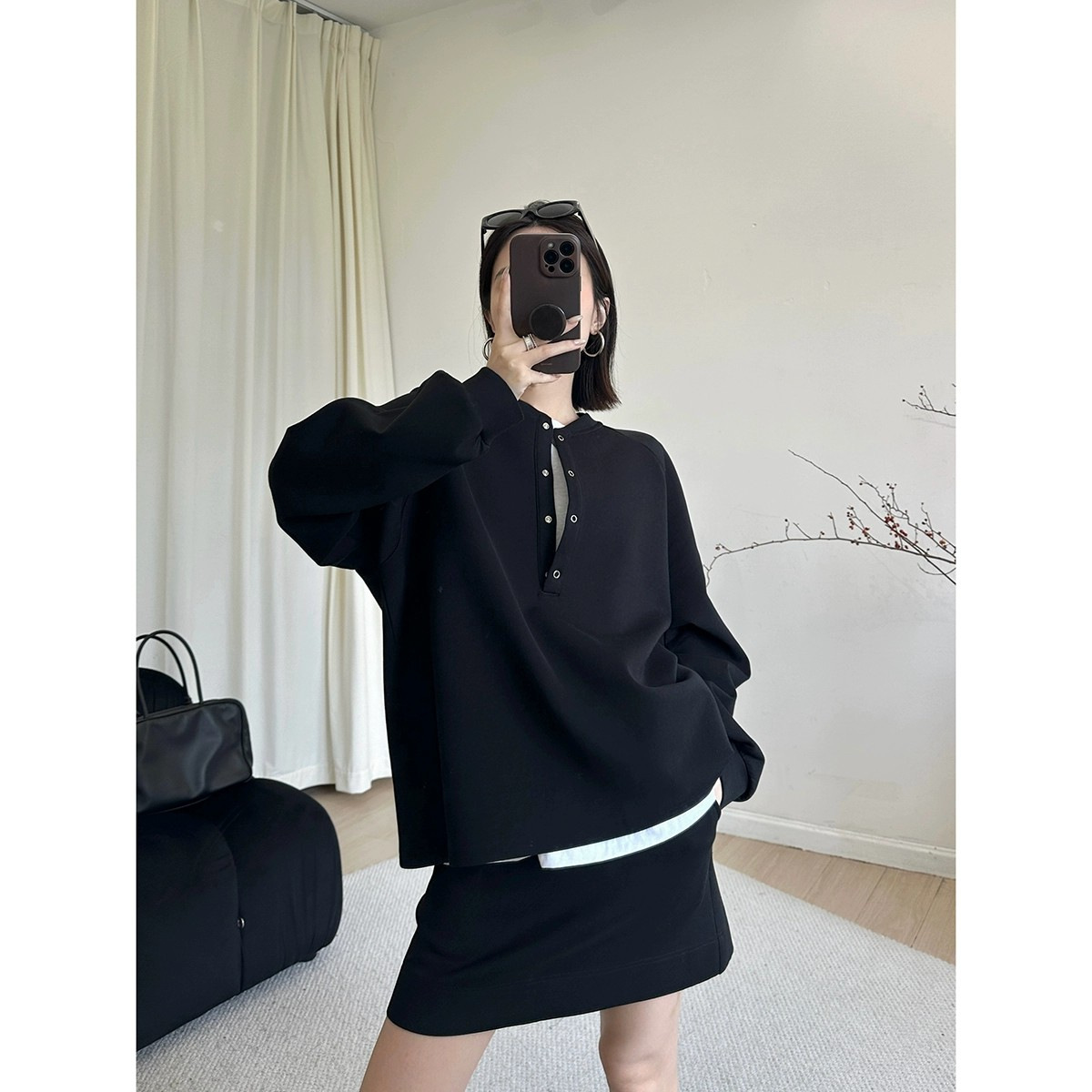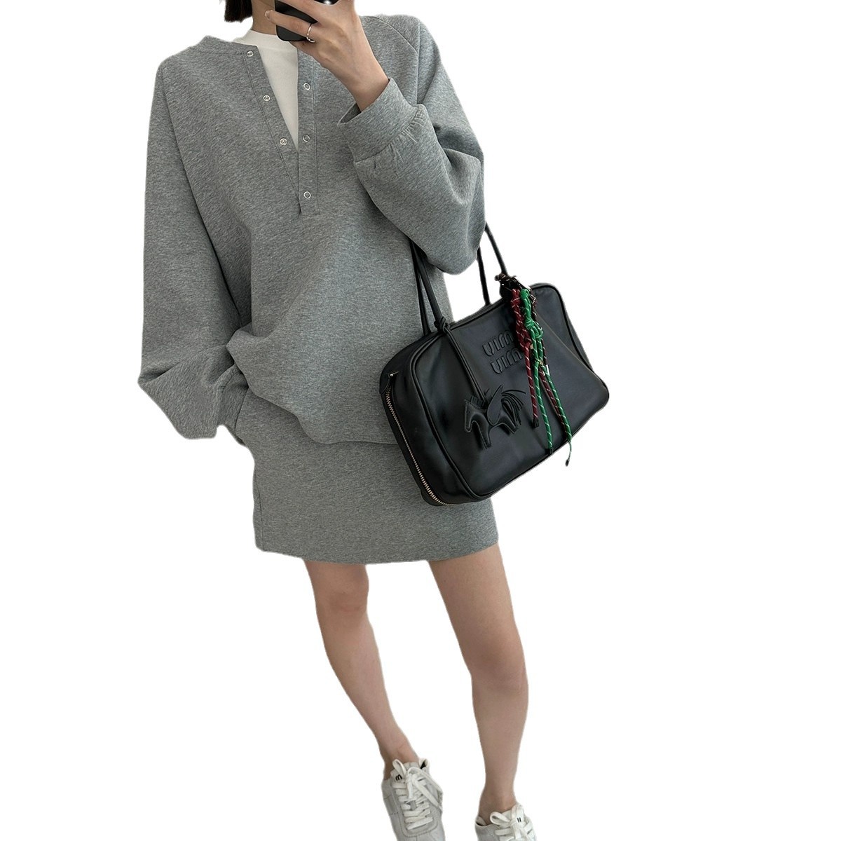 Весенний и осенний костюм женский новый корейский полуоткрытый воротник свободный повседневный свиток