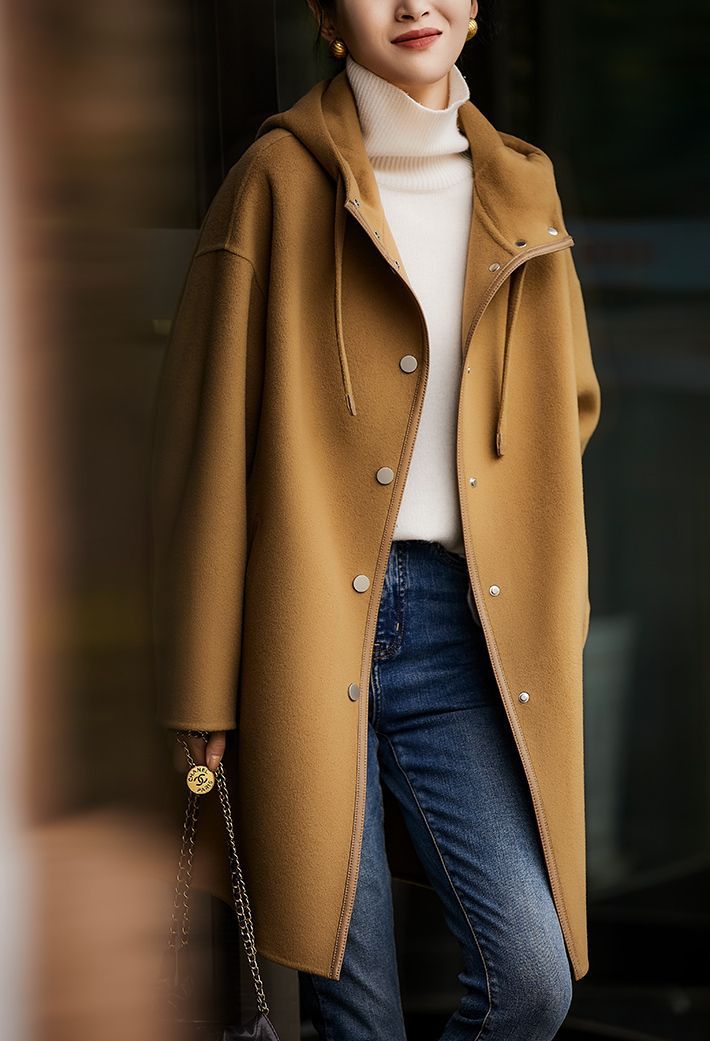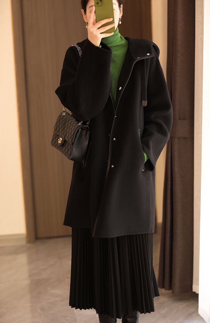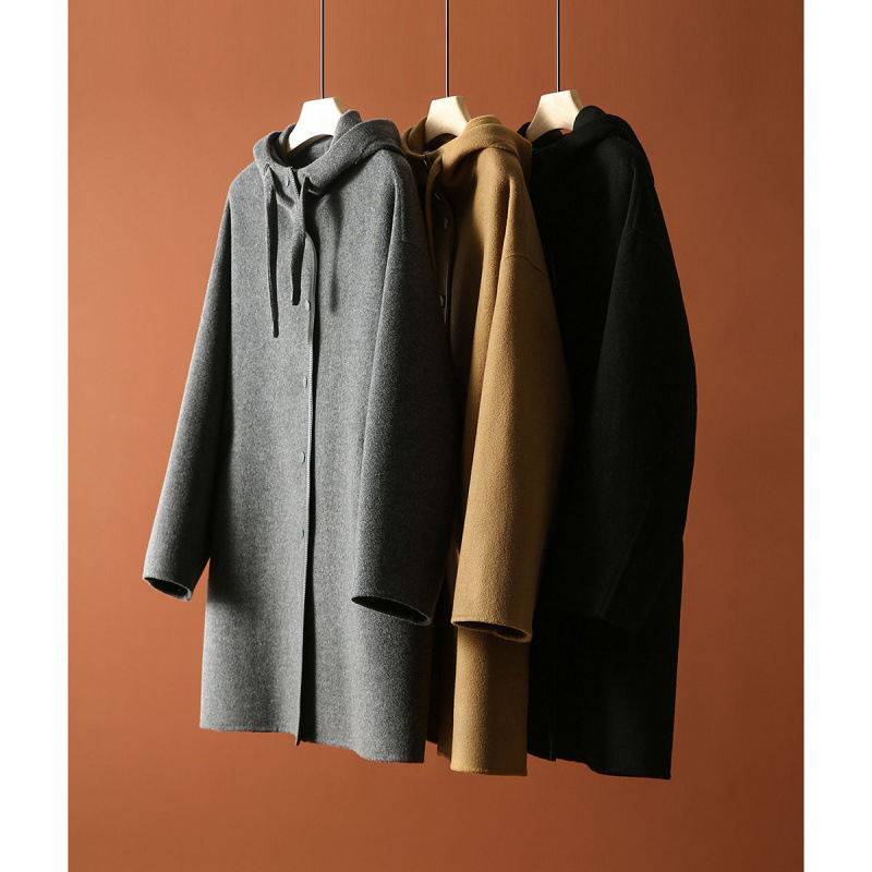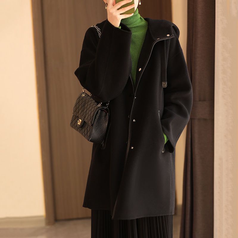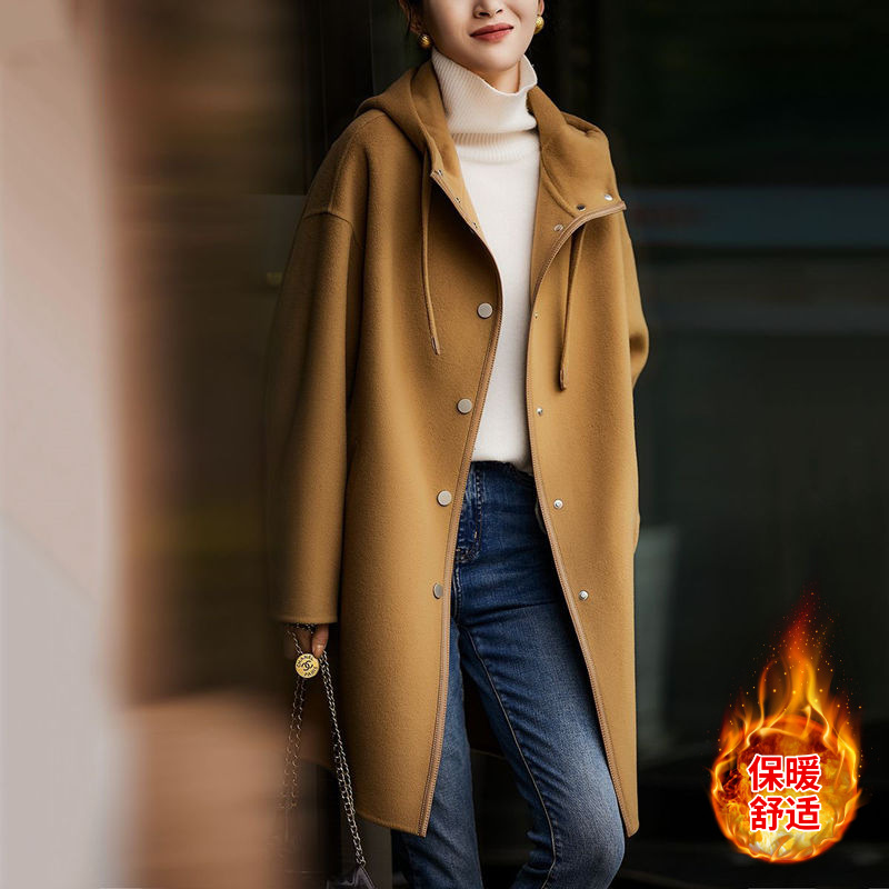 2024 осень и зима новая мода корейская версия тонкая повседневная дикая шапка с длинными рукавами шерстяное пальто женский прилив
