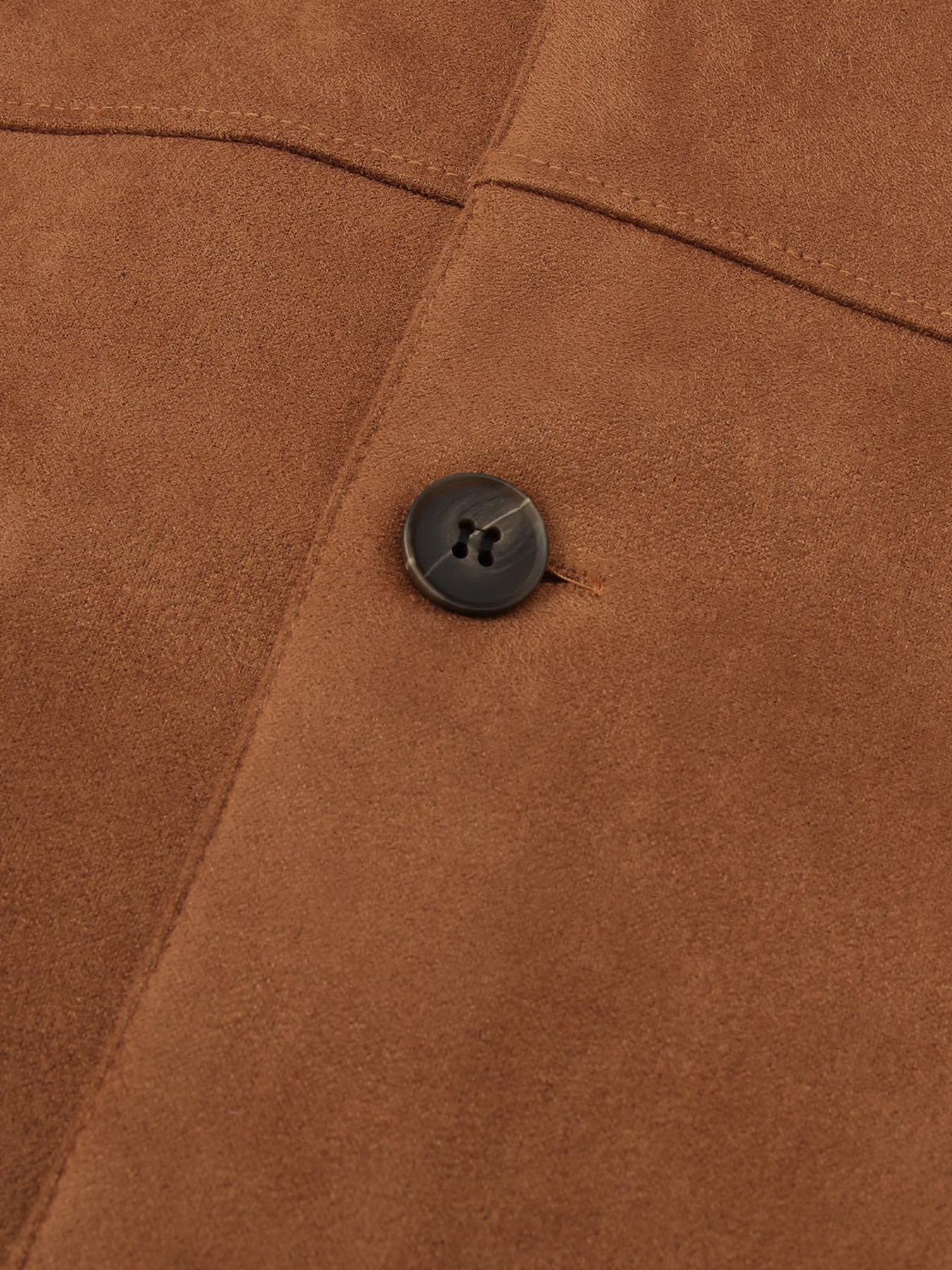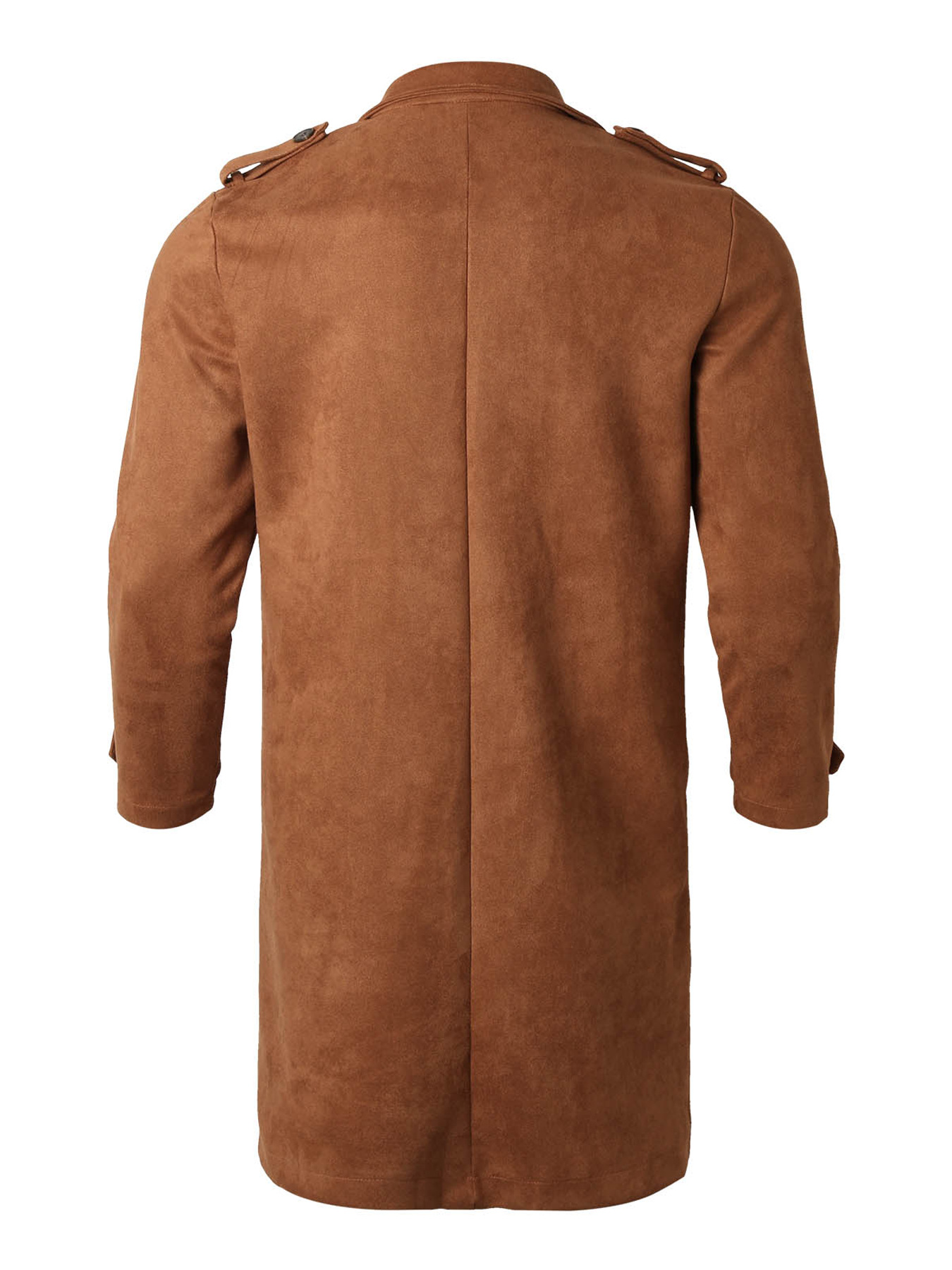 Мужская куртка из замши в американском ретро-стиле, осенне-зимняя коллекция 2025 года, средней длины, с отложным воротником и двубортной застежкой.