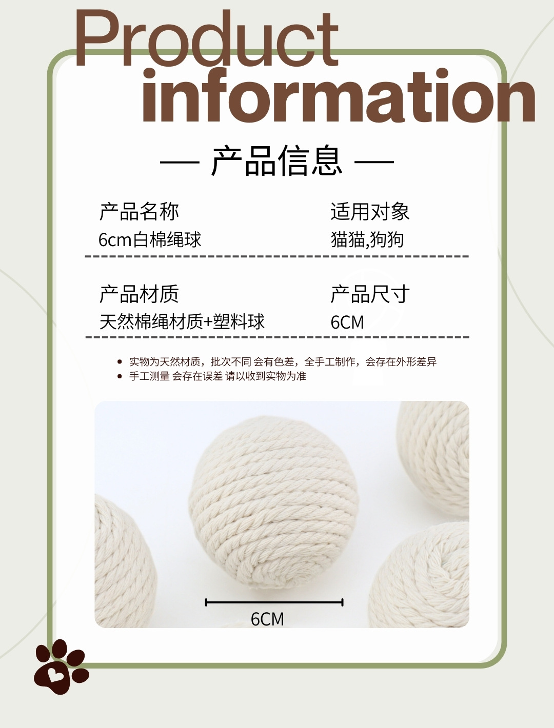 Оптовая продажа: в наличии, белый хлопковый мяч-игрушка для собак диаметром 6 см, прочный и устойчивый к жеванию, для самостоятельных игр и снятия скуки, товары для животных, мяч для жевания.