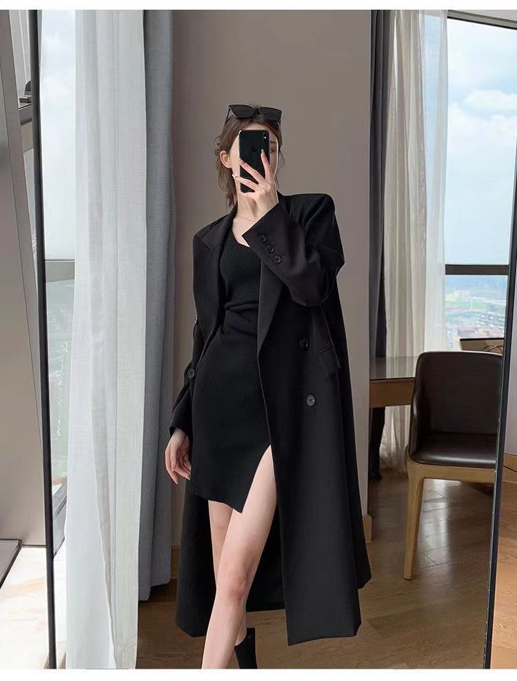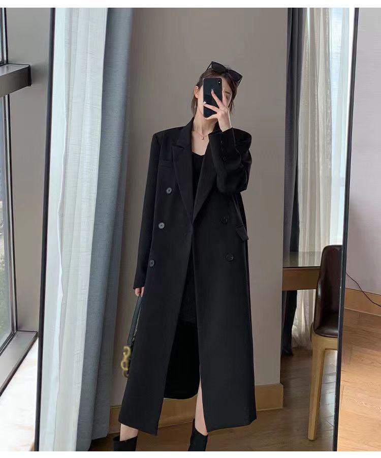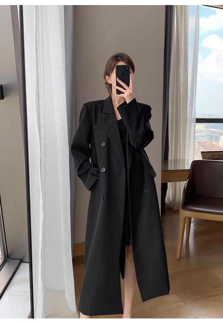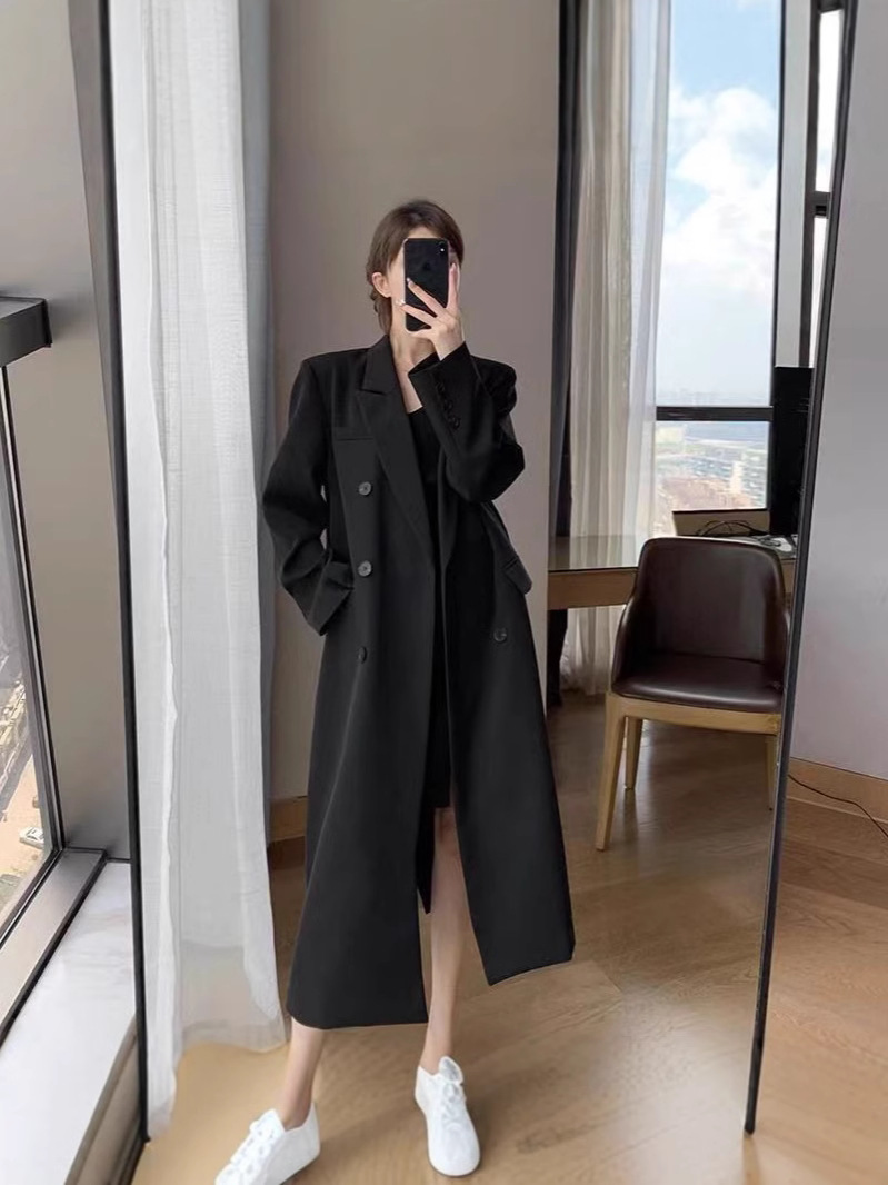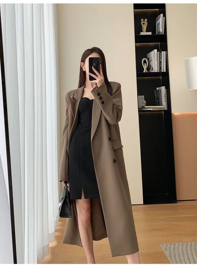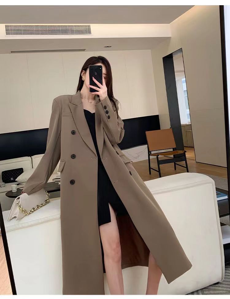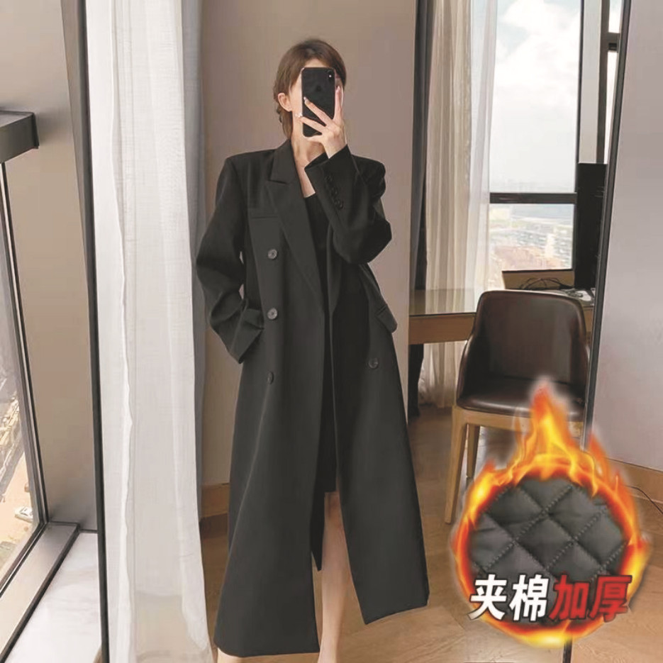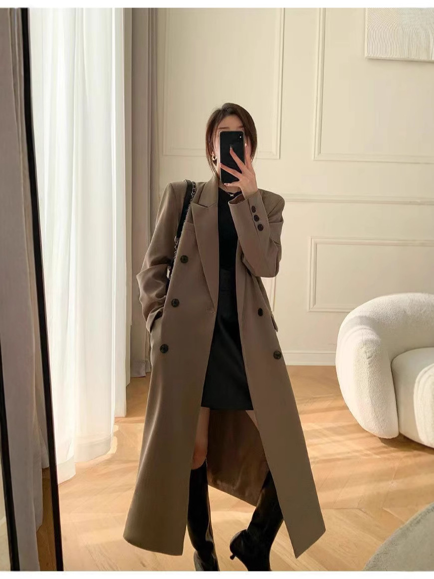 【Качественная ткань】Элегантный удлиненный двубортный плащ для женщин, средней длины, осенне-зимний, утепленный, приталенный пальто-тренч