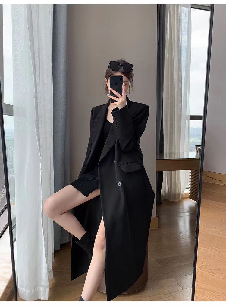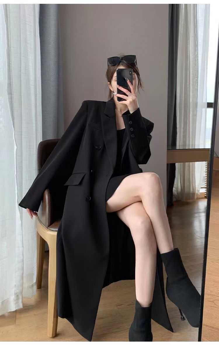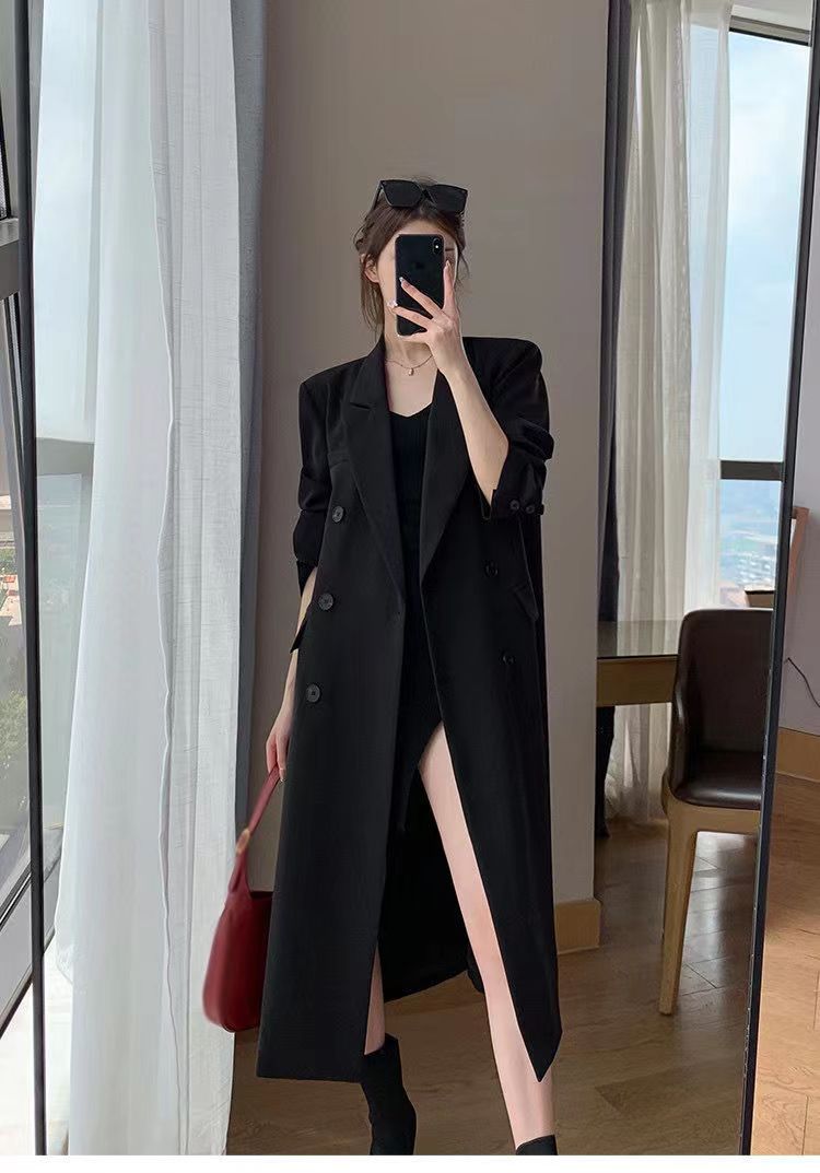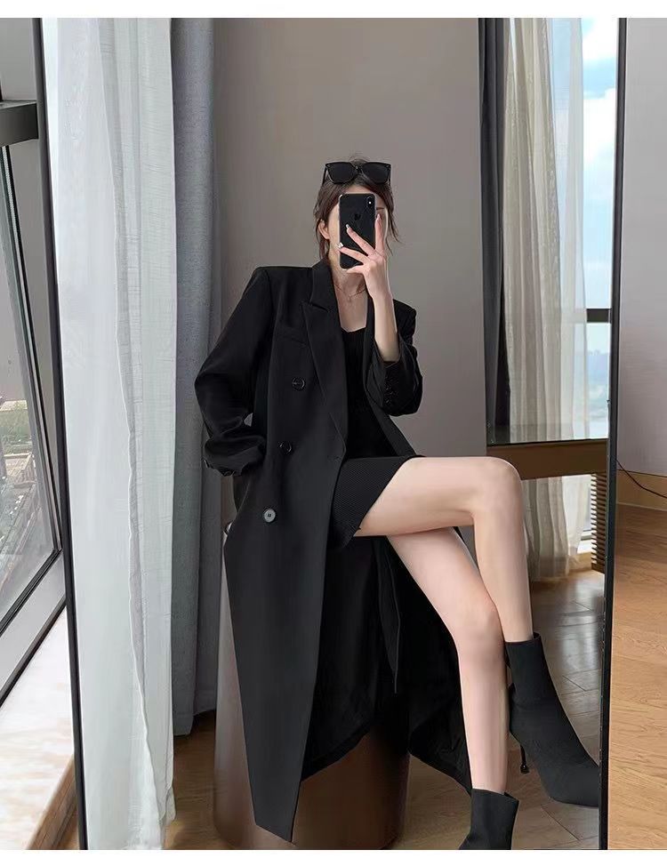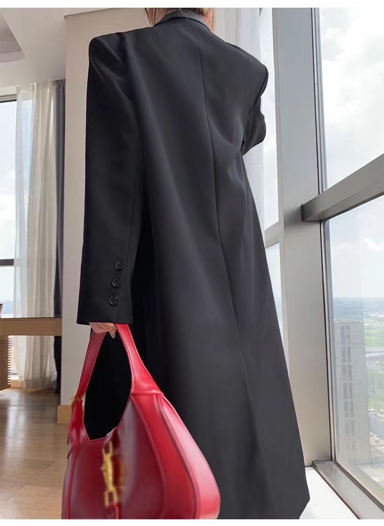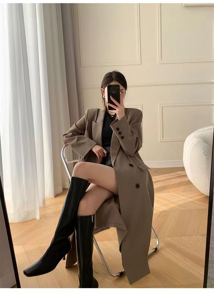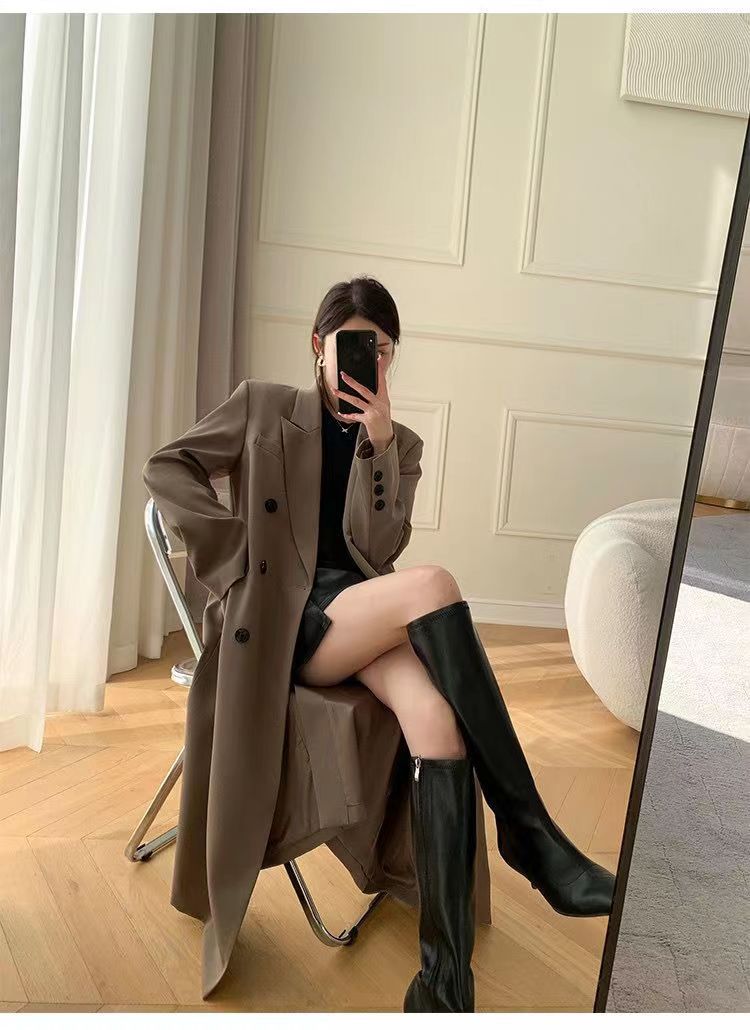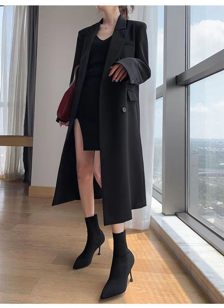 【Качественная ткань】Элегантный удлиненный двубортный плащ для женщин, средней длины, осенне-зимний, утепленный, приталенный пальто-тренч