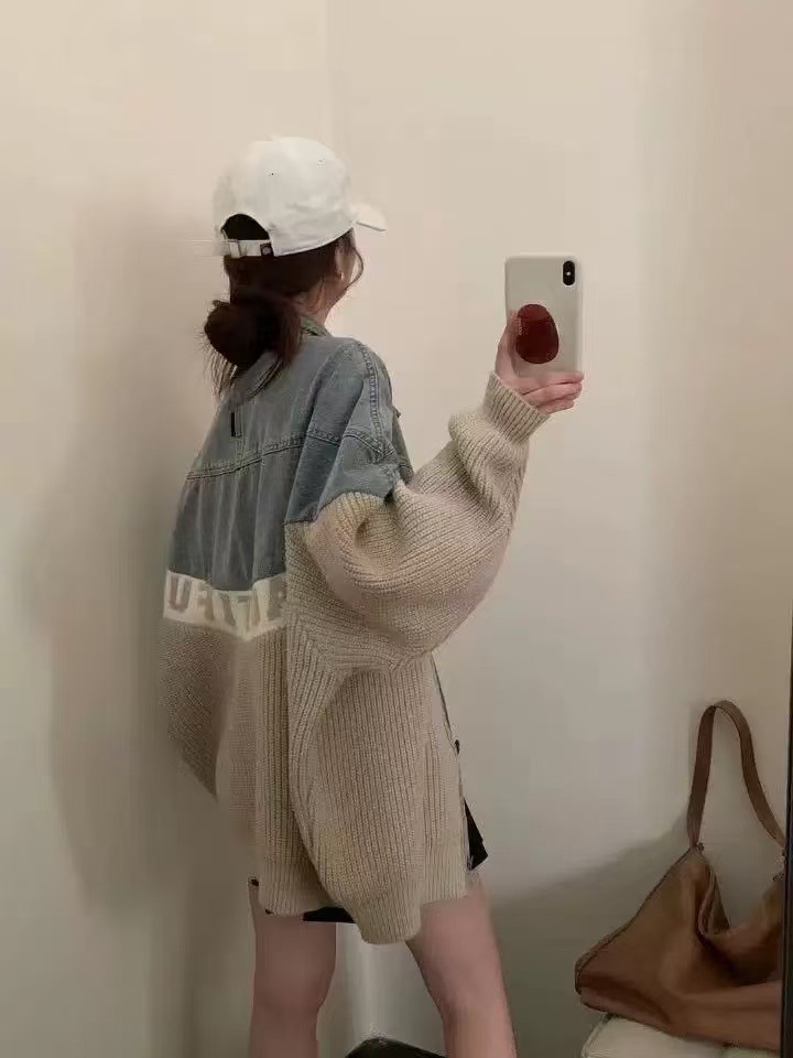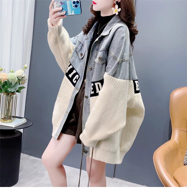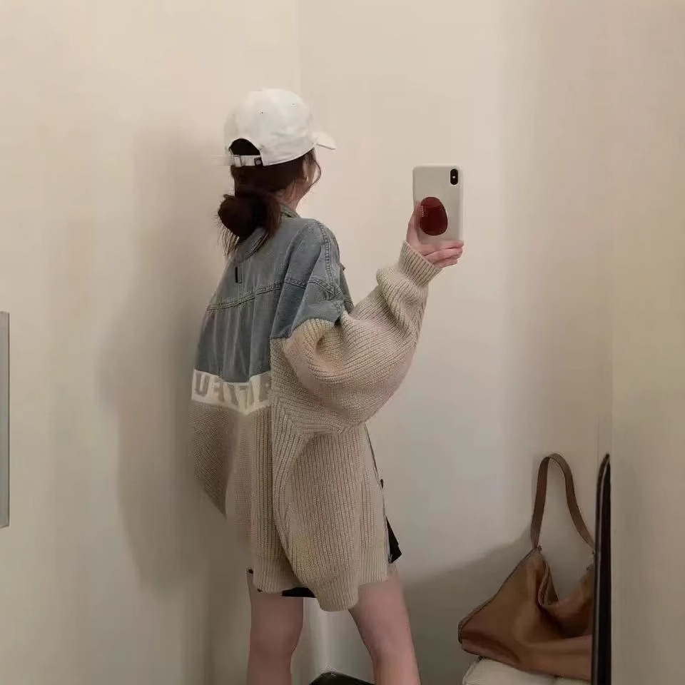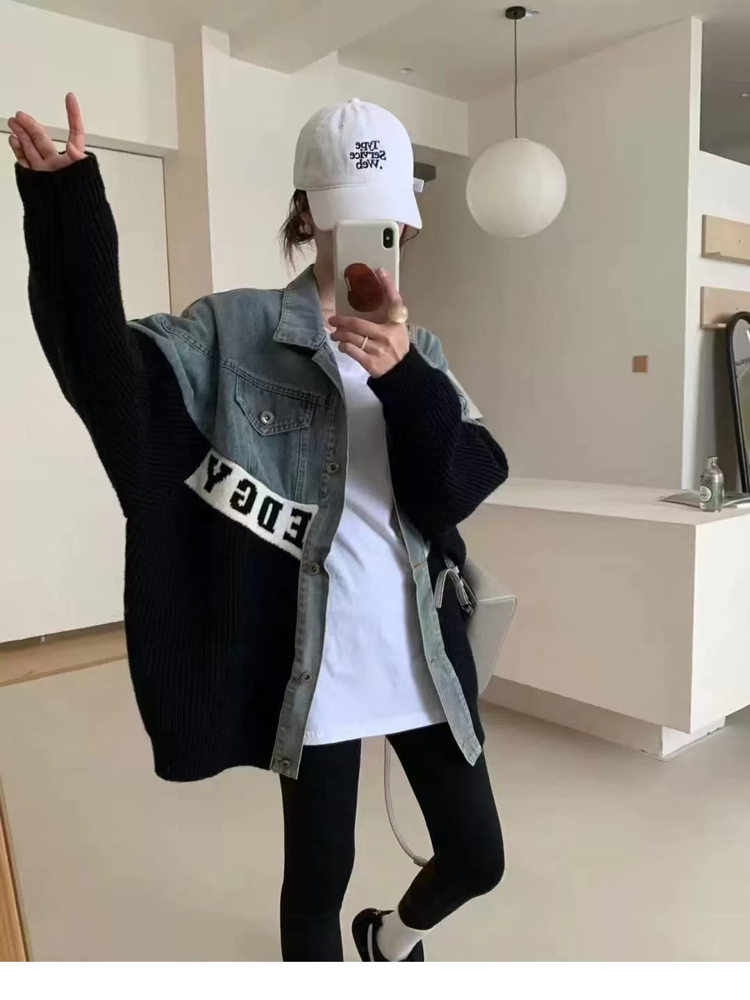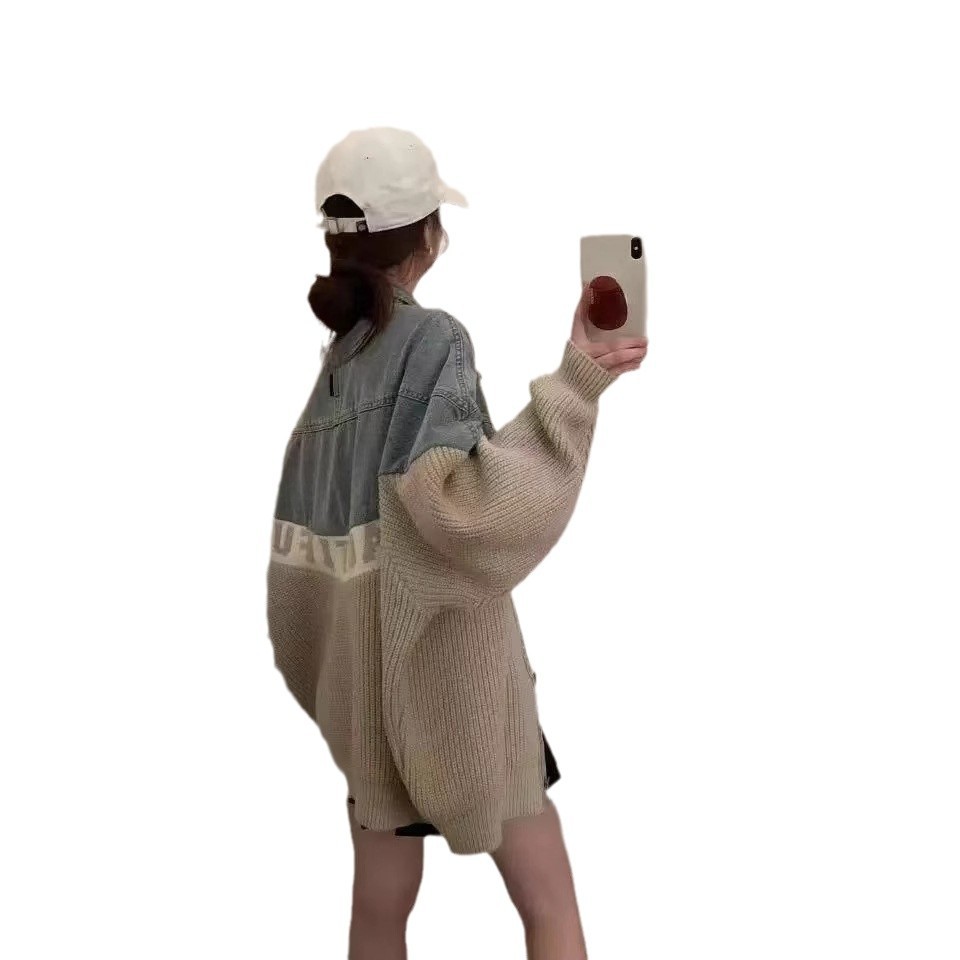 Джинсовый кардиган-свитер в европейском стиле с дизайнерскими вставками для женщин, осень-зима 2025, новая утепленная свободная модель