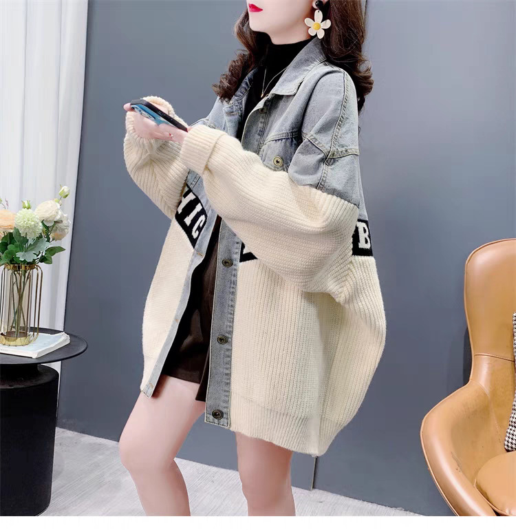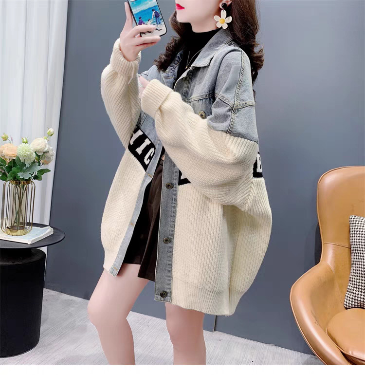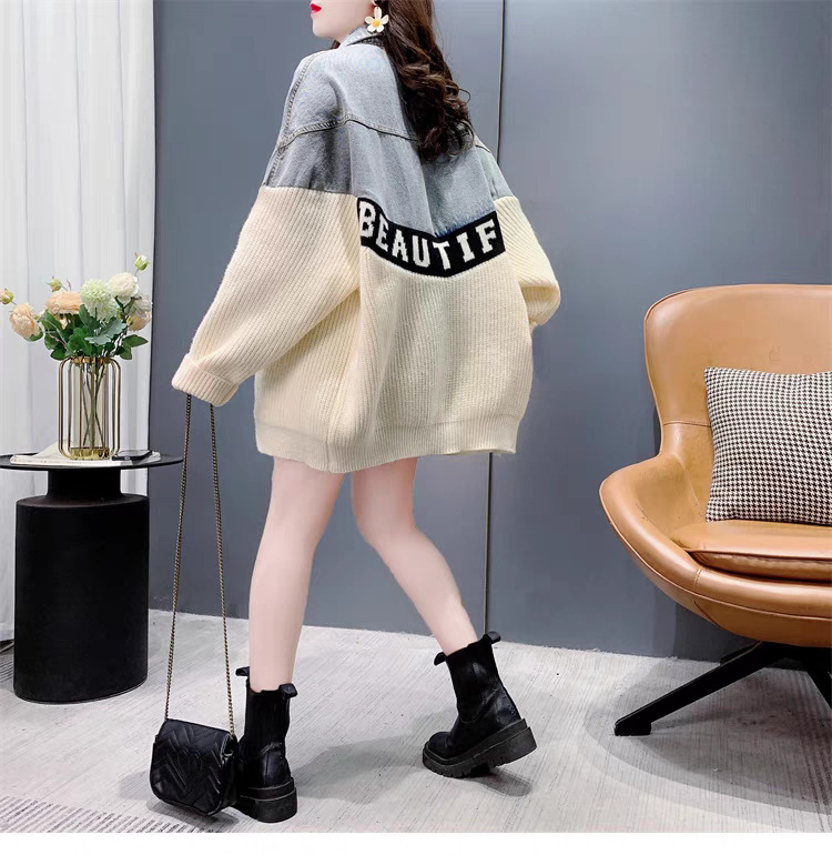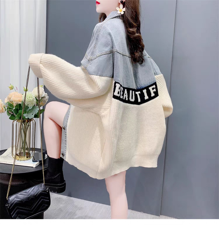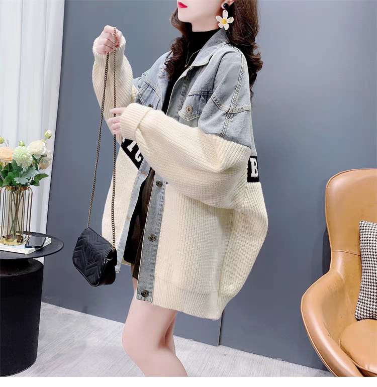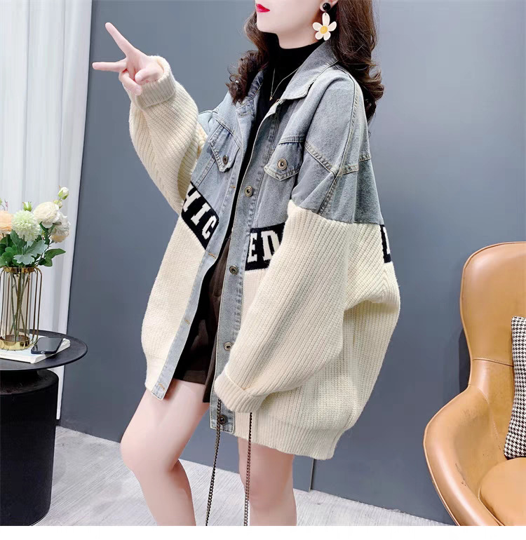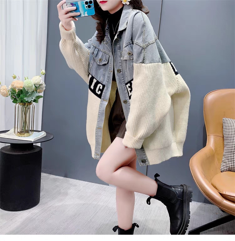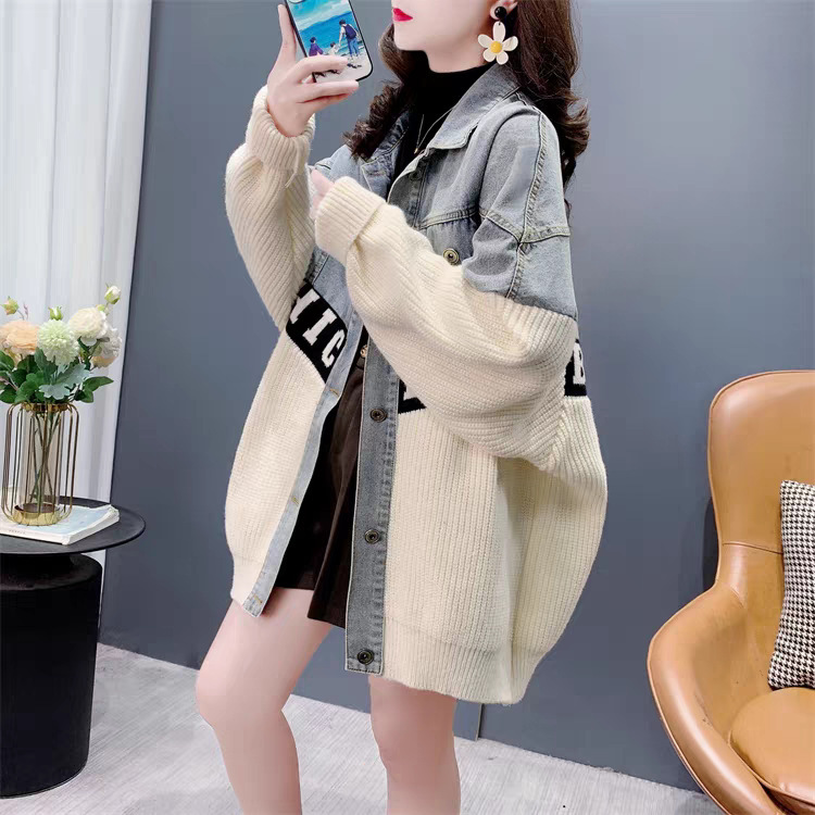 Джинсовый кардиган-свитер в европейском стиле с дизайнерскими вставками для женщин, осень-зима 2025, новая утепленная свободная модель