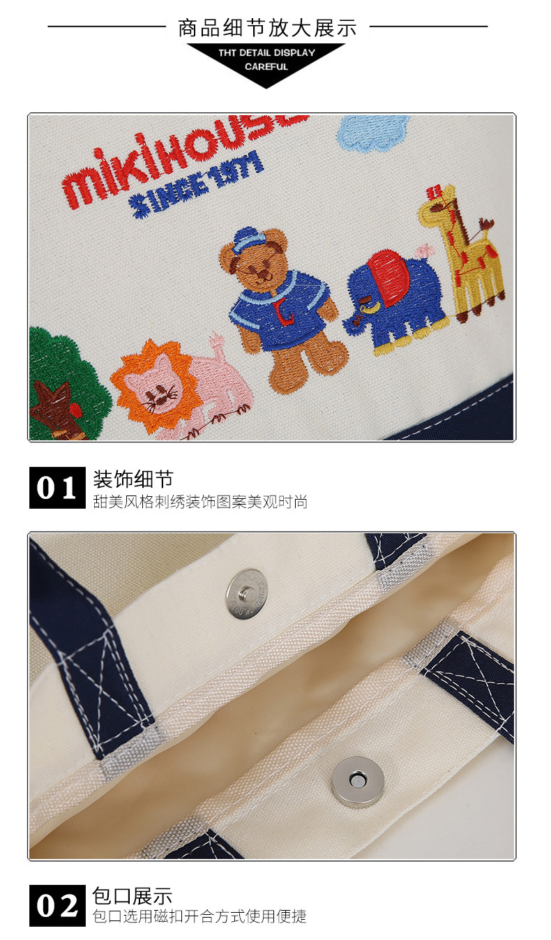 Мики холщовый магазин с ручной подаркой сумка сумка женская сумка сумка мумия сумка мультфильм вышитая сумка для матери и ребенка сумка для отдыха
