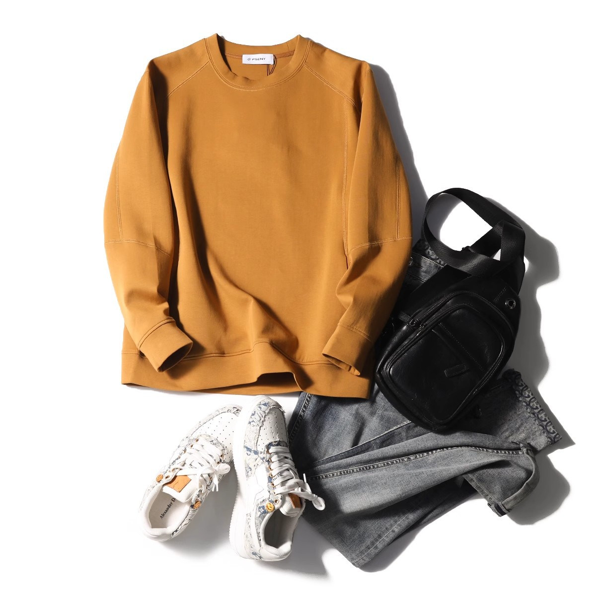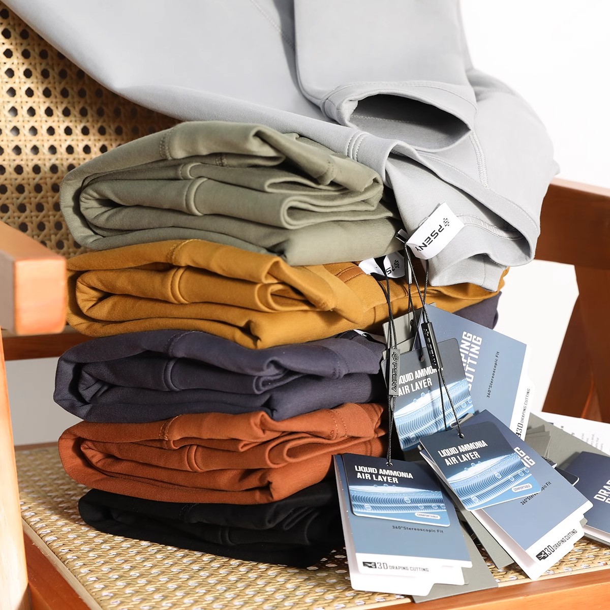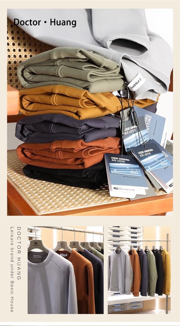 Легкое экстравагантное качество! 320 г в жидкий аммиак воздушный хлопок! Кожаные и удобные! Мужской сплошной свиток с длинными рукавами