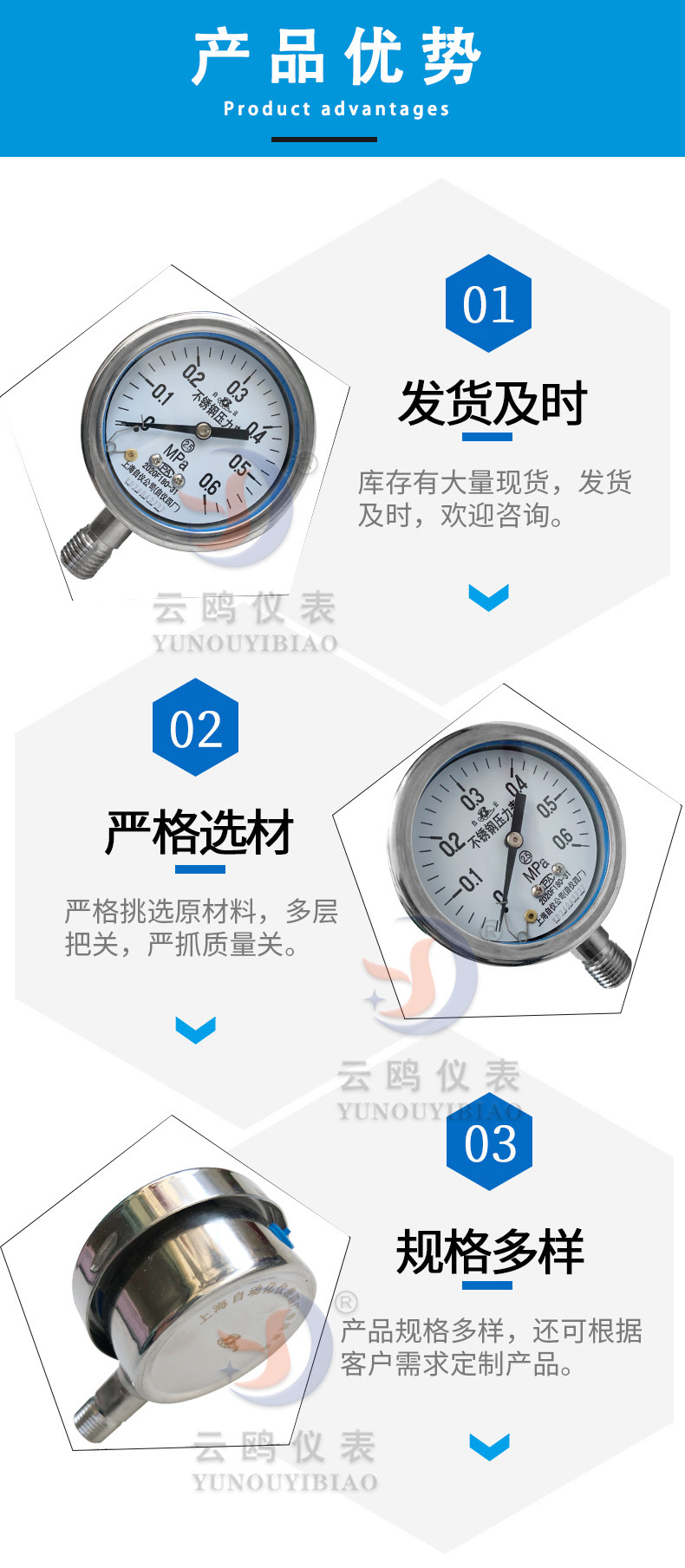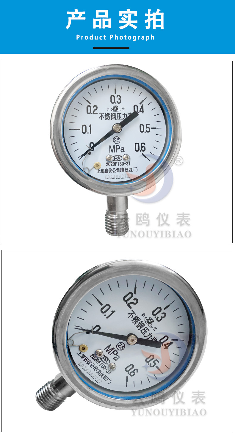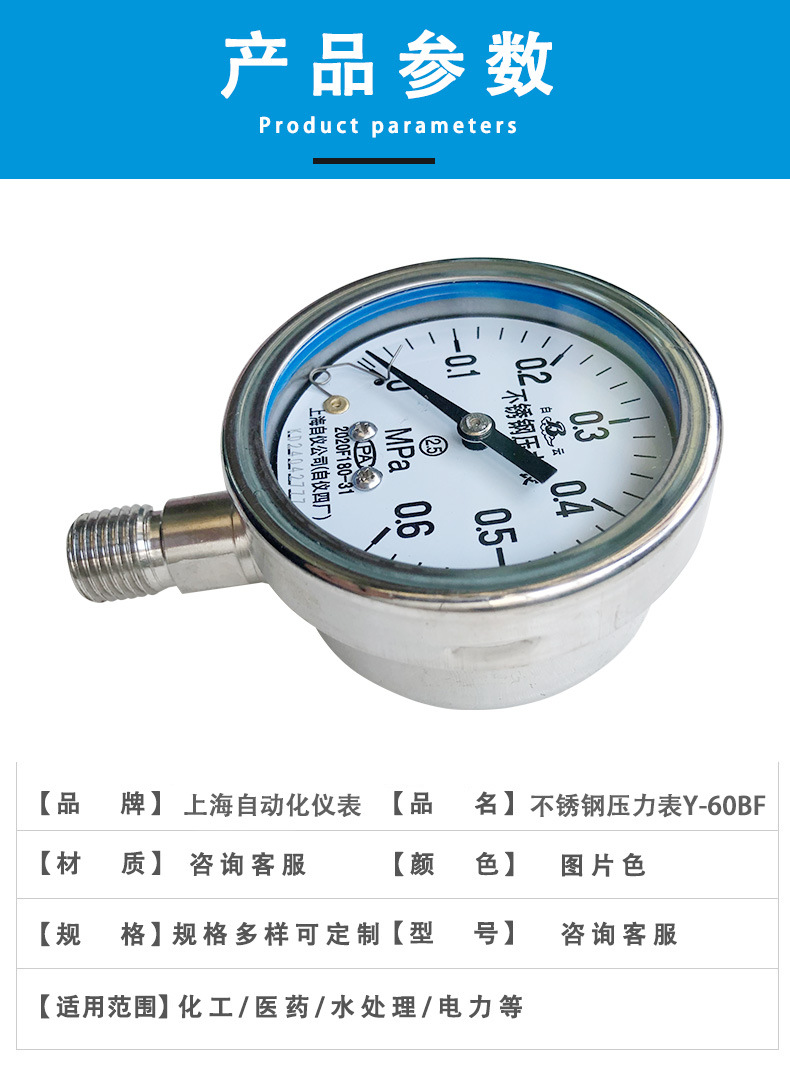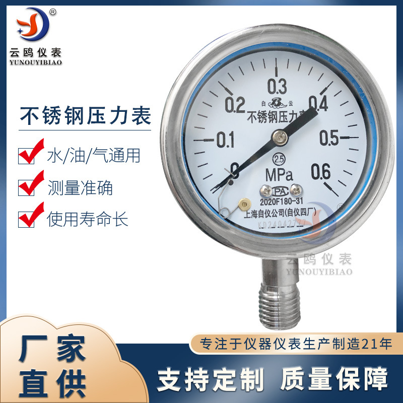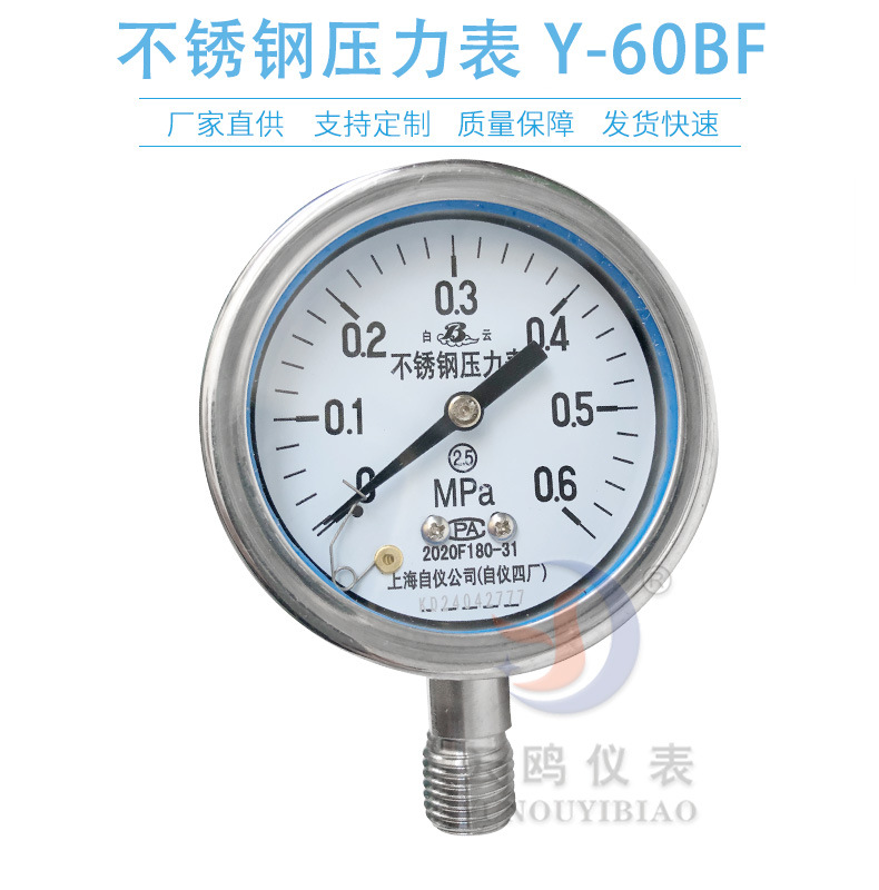 Манометр из нержавеющей стали Y-60BF Шанхай Автоматизированный прибор 4 манометр завода