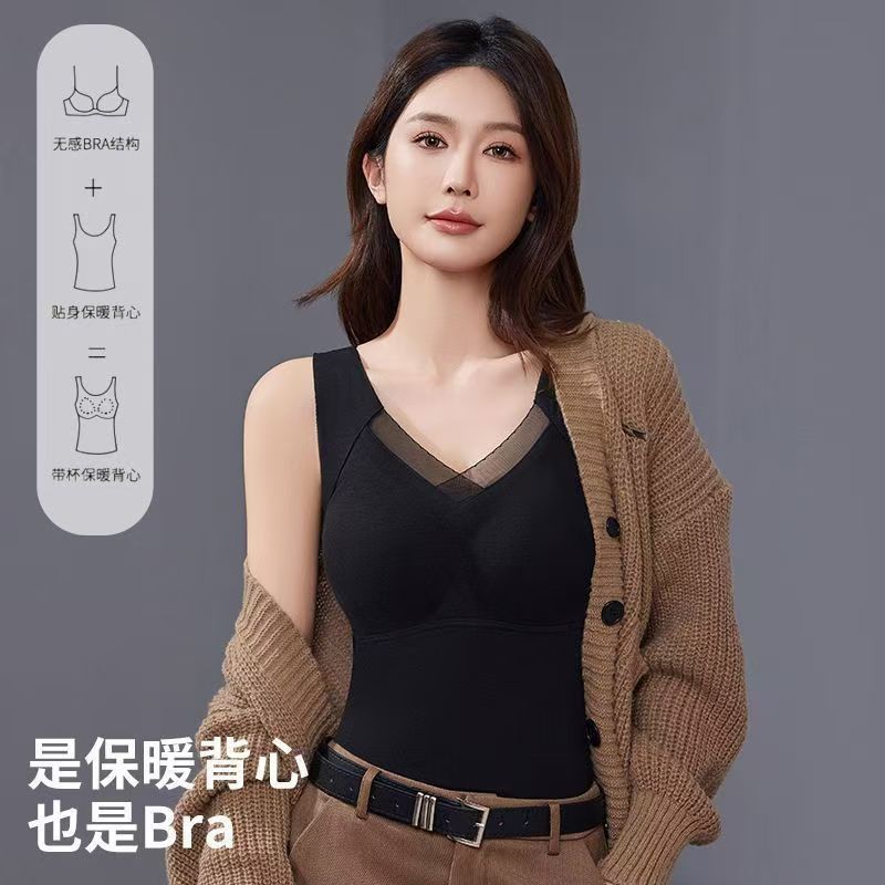 8803 осенний и зимний графеновый теплый жилет утолщенные нагрудные коврики, чтобы собрать без бюстгальтера в одном фиксированном стакане термобелье
