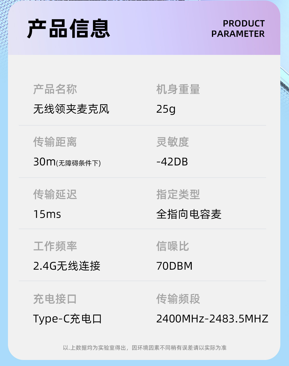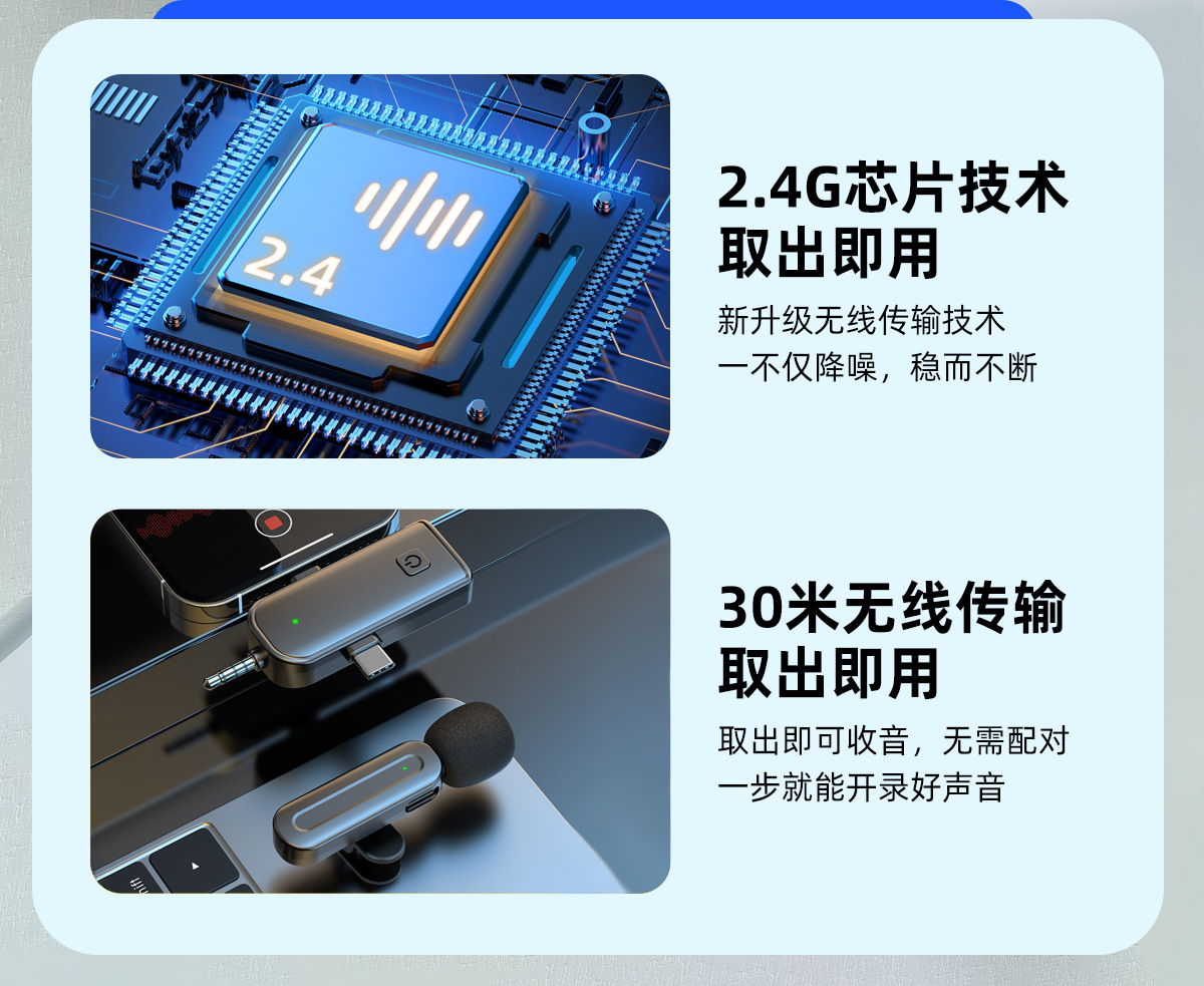 比较无线领夹麦克风的品质,主要从收音距离,收音稳定性,是否降噪,是否有杂音等去判断。欢迎客户下单拿样,从各个方面去评判我们的产品品质!