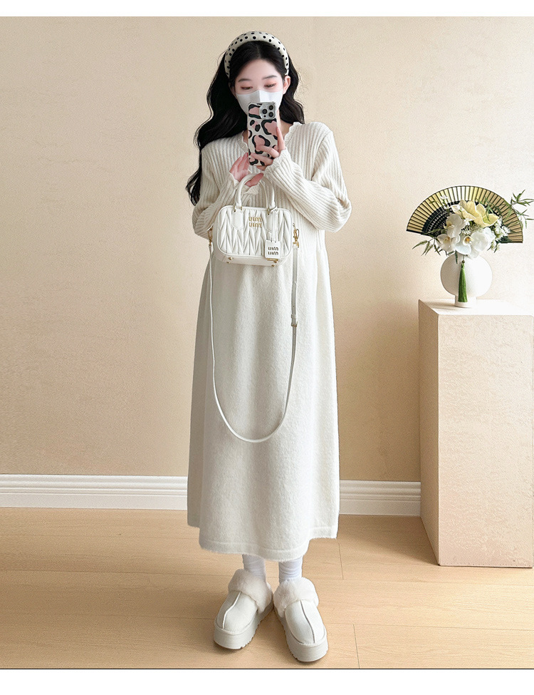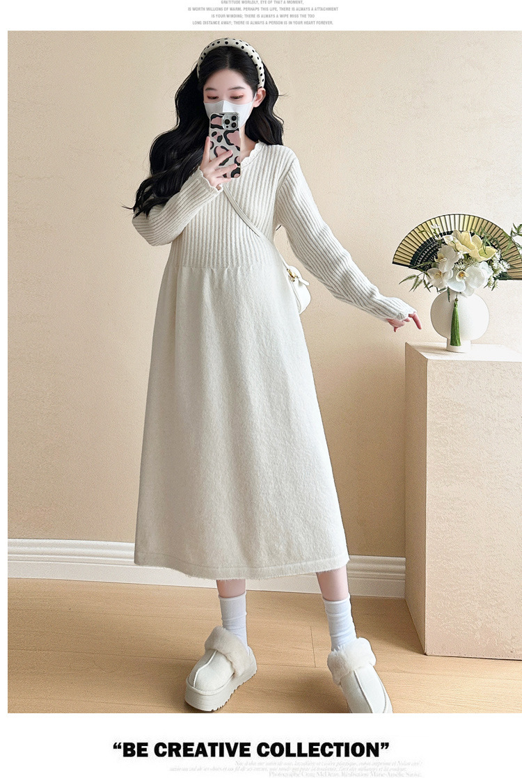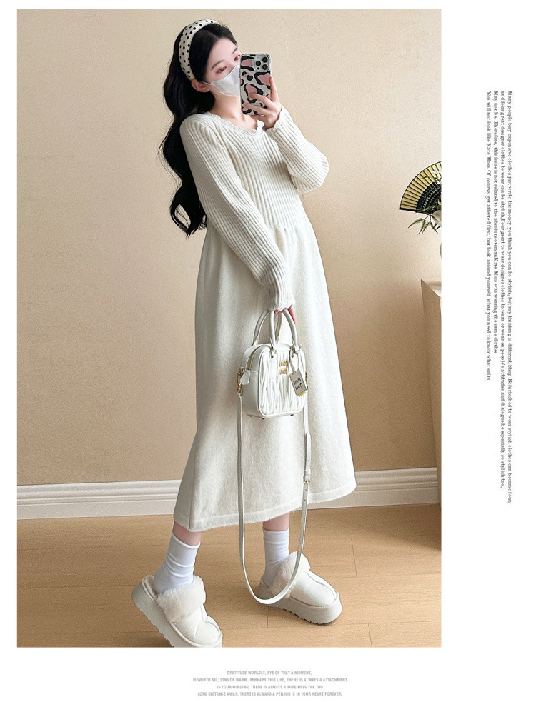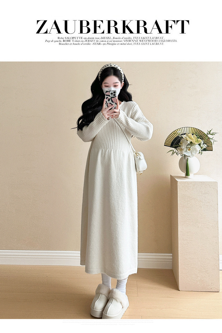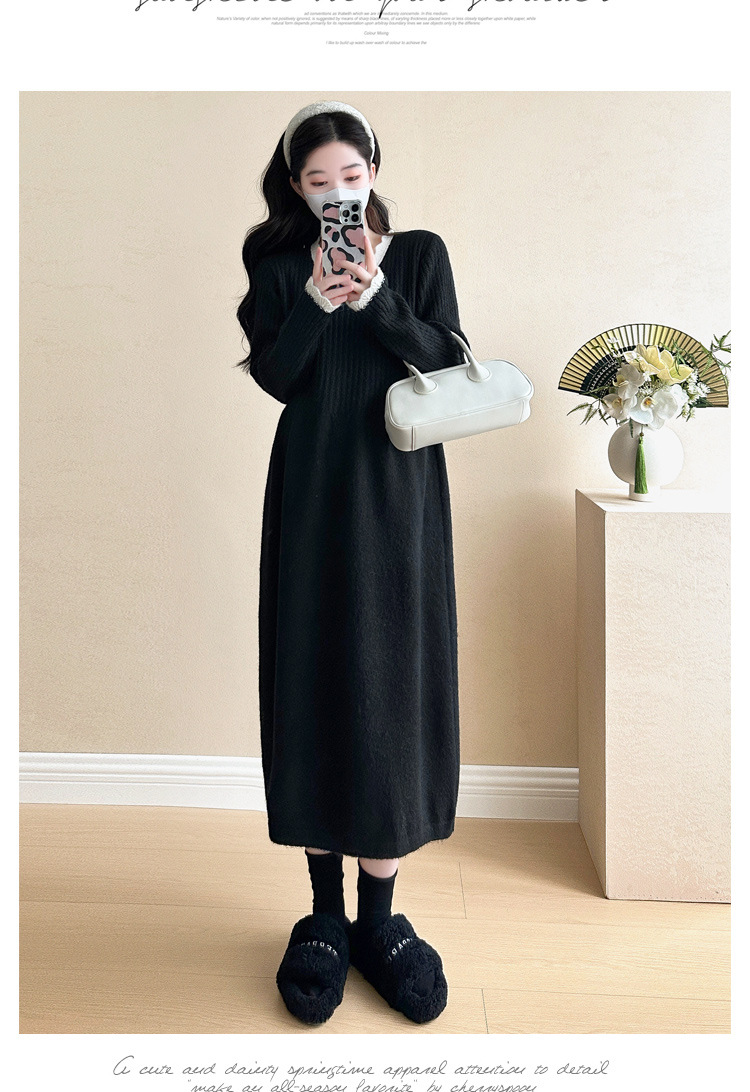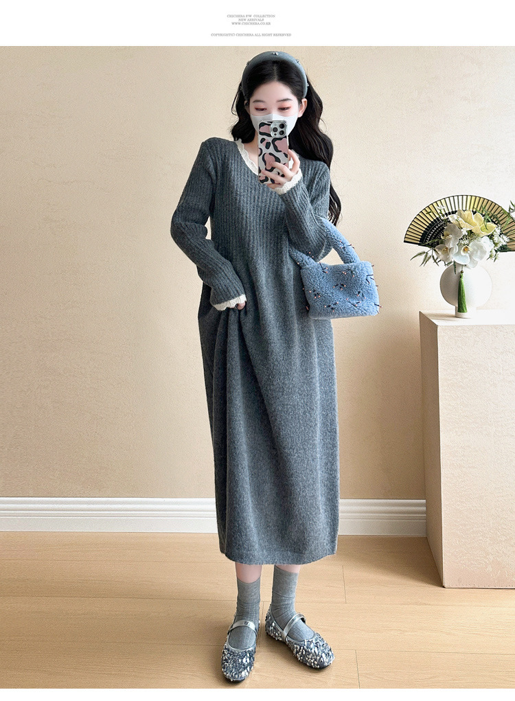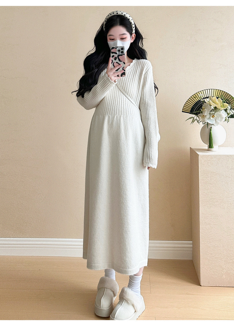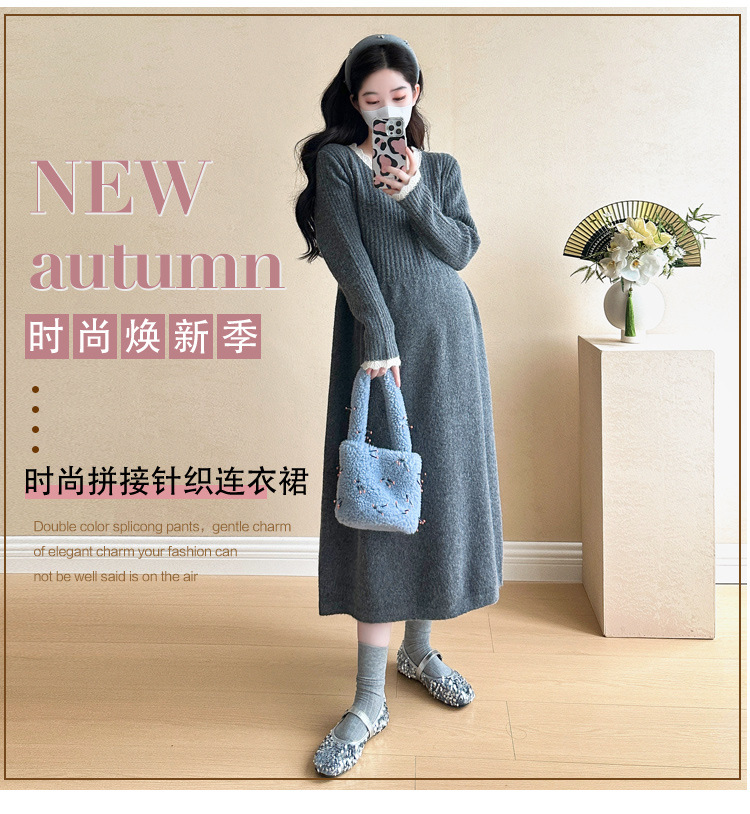 Одежда для беременных осенью и зимой трикотажное платье с длинными рукавами 2024 новая корейская версия сладкого кружева сшивания тонкая нижняя юбка