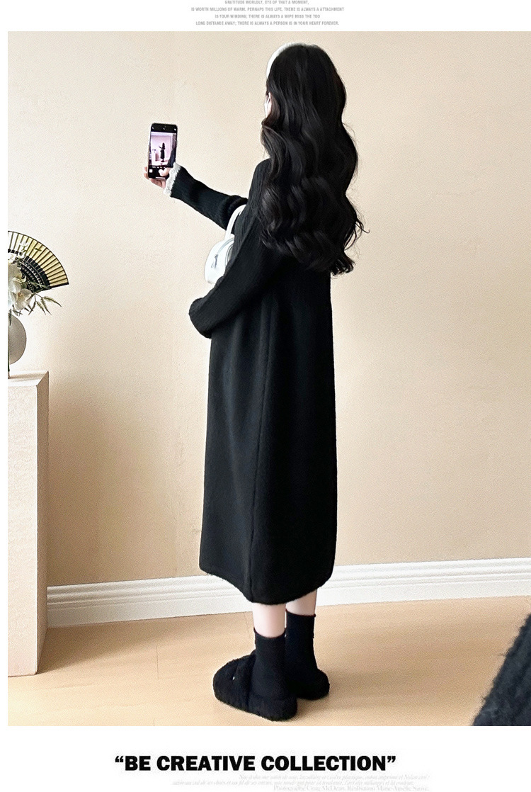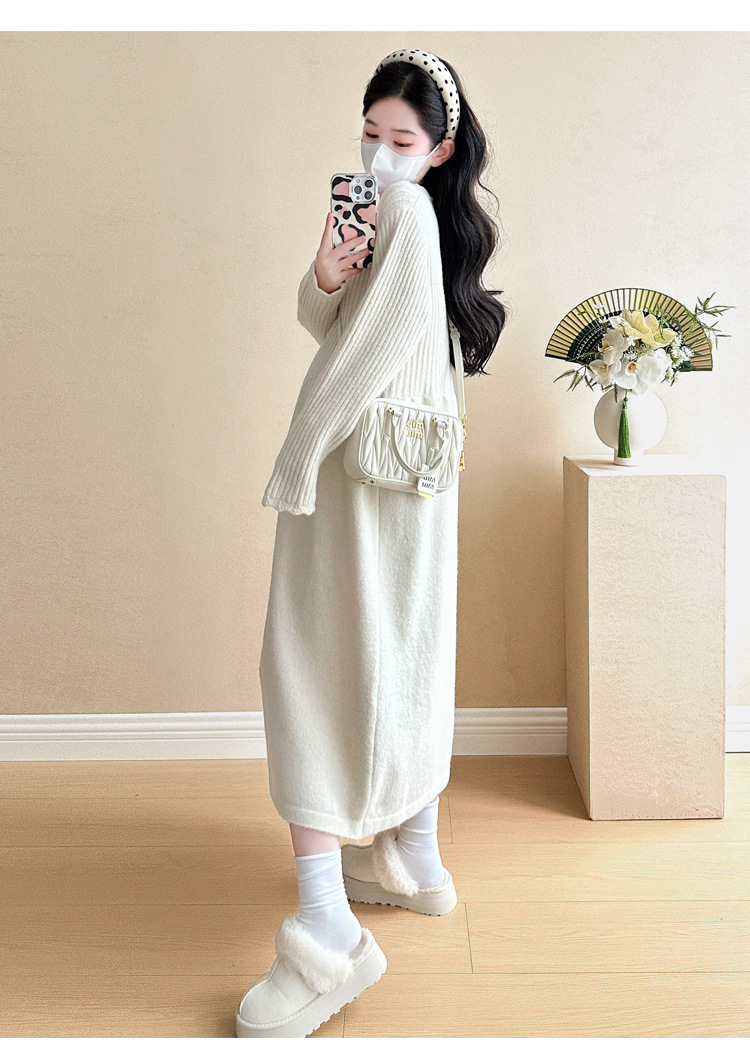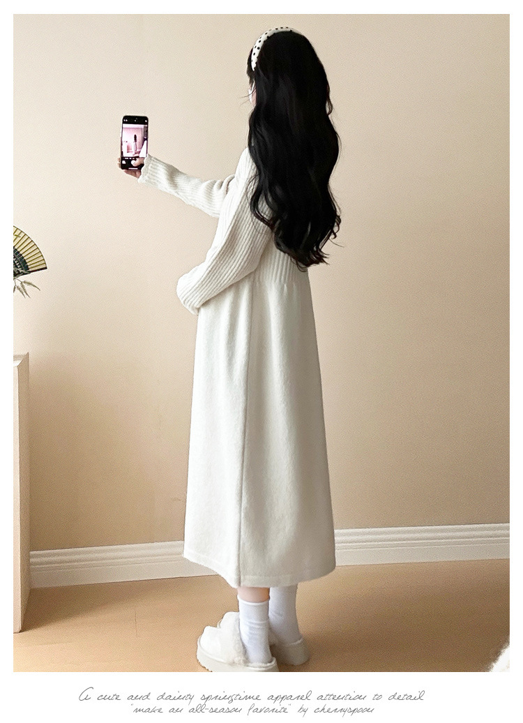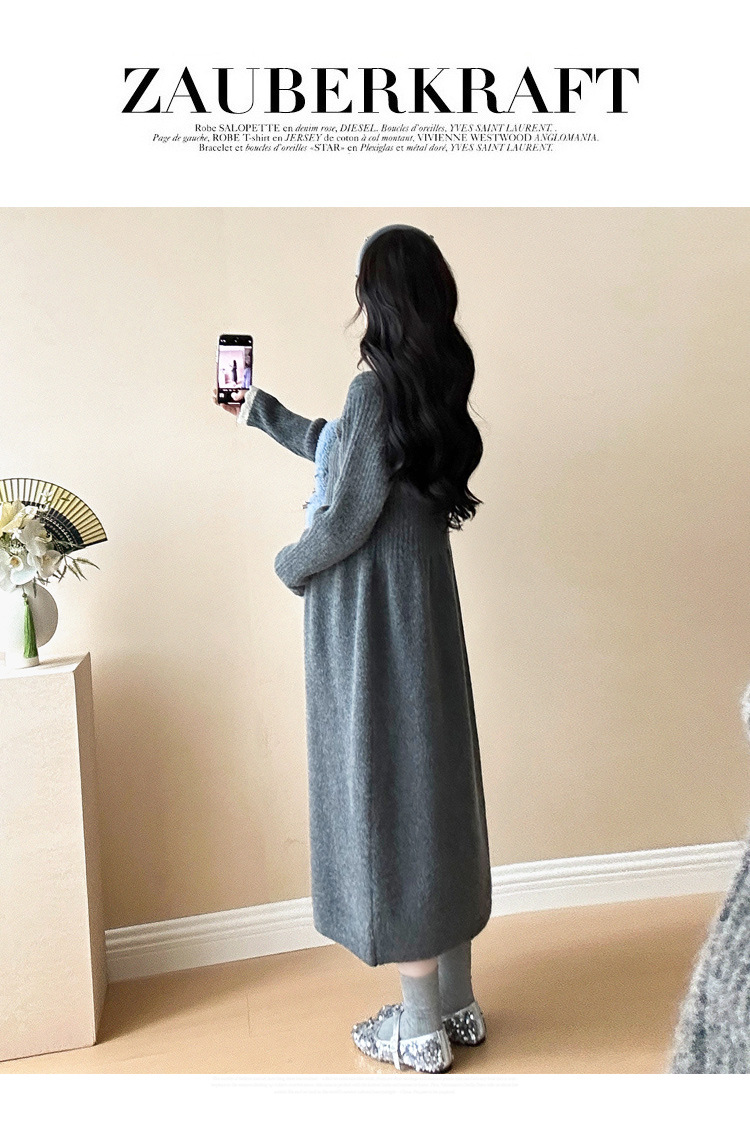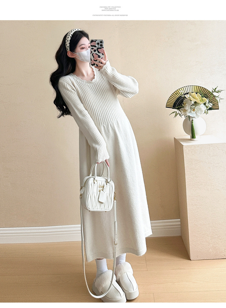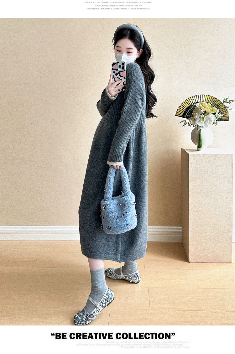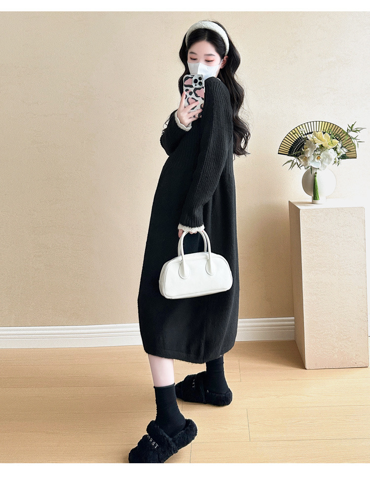 Одежда для беременных осенью и зимой трикотажное платье с длинными рукавами 2024 новая корейская версия сладкого кружева сшивания тонкая нижняя юбка