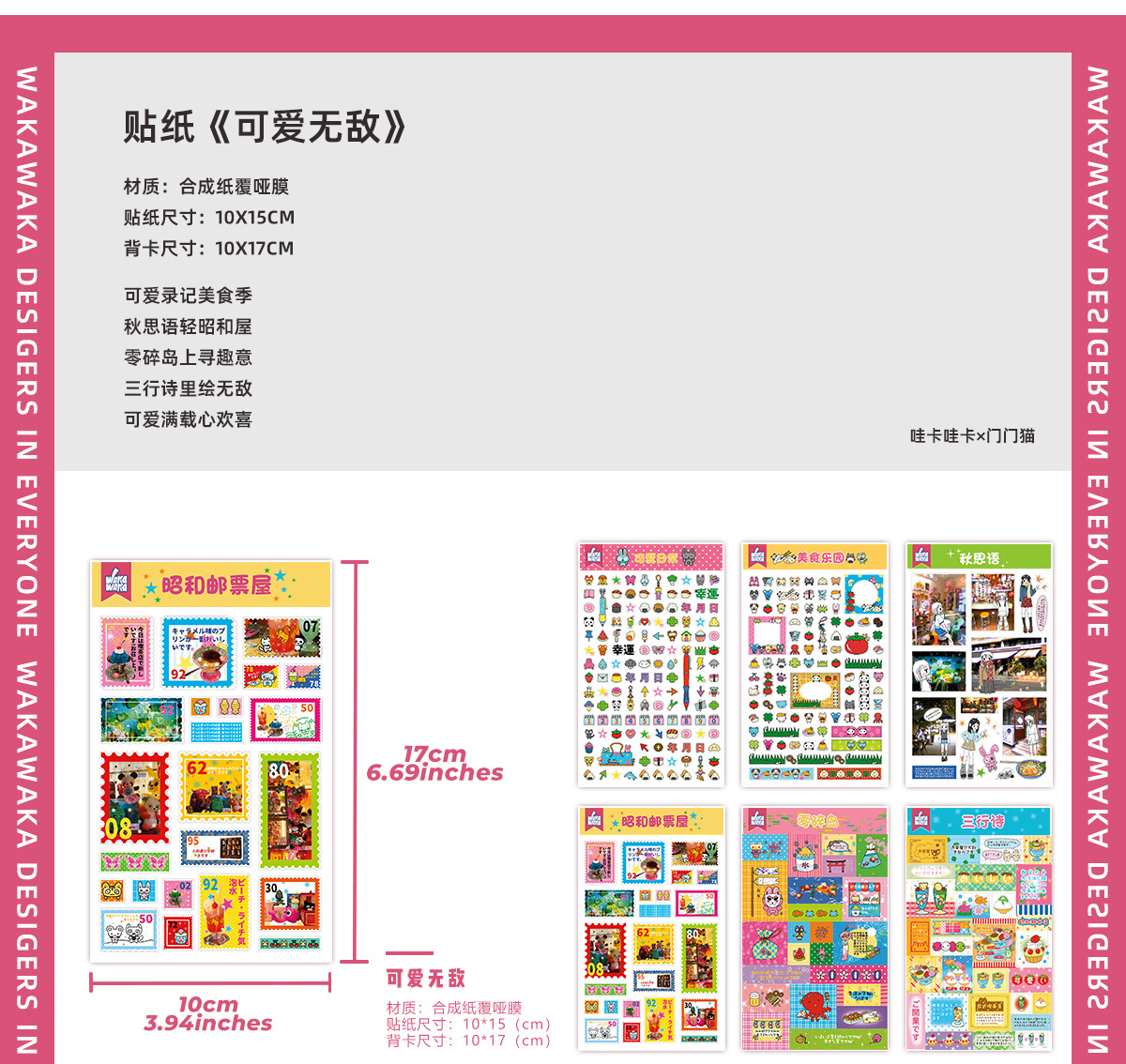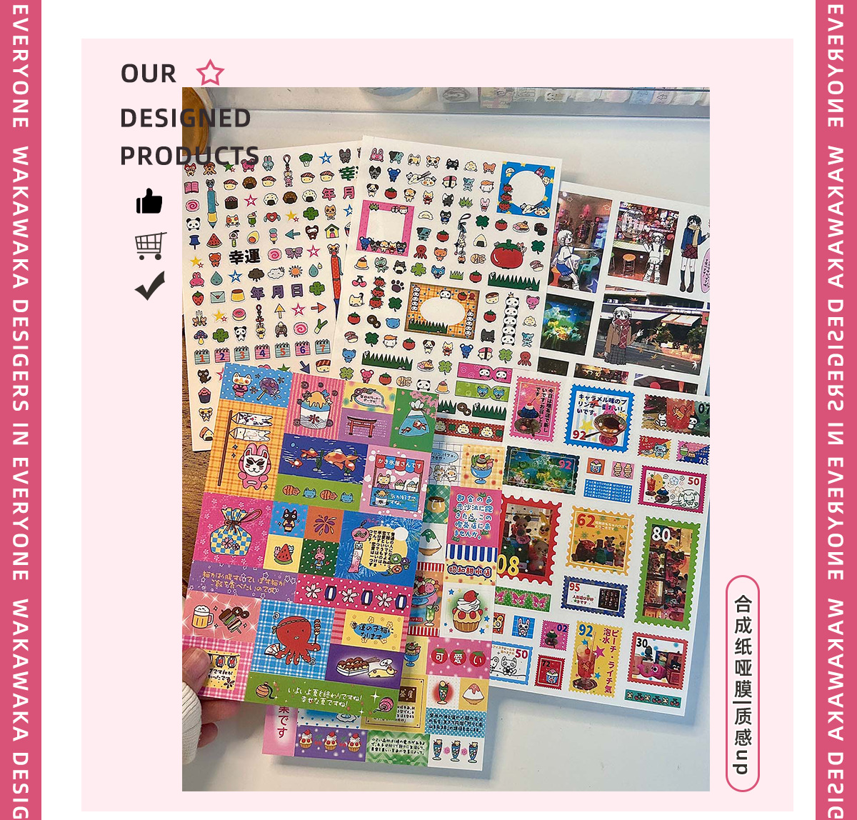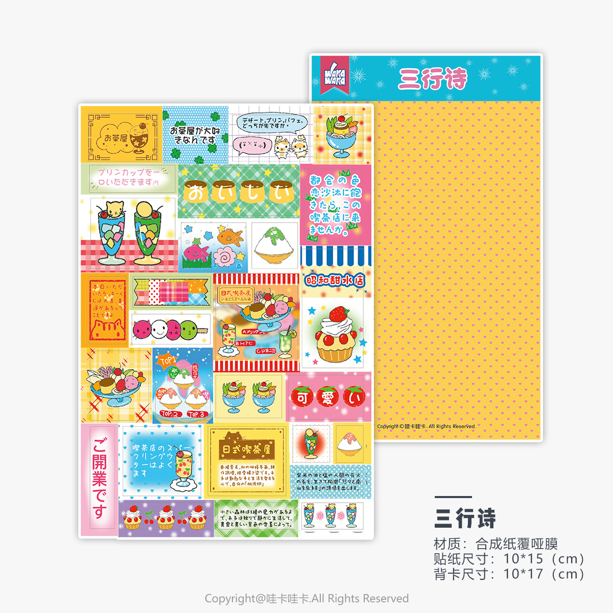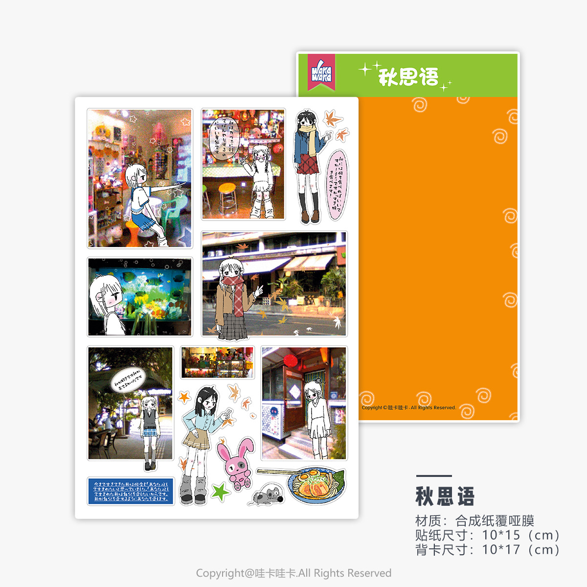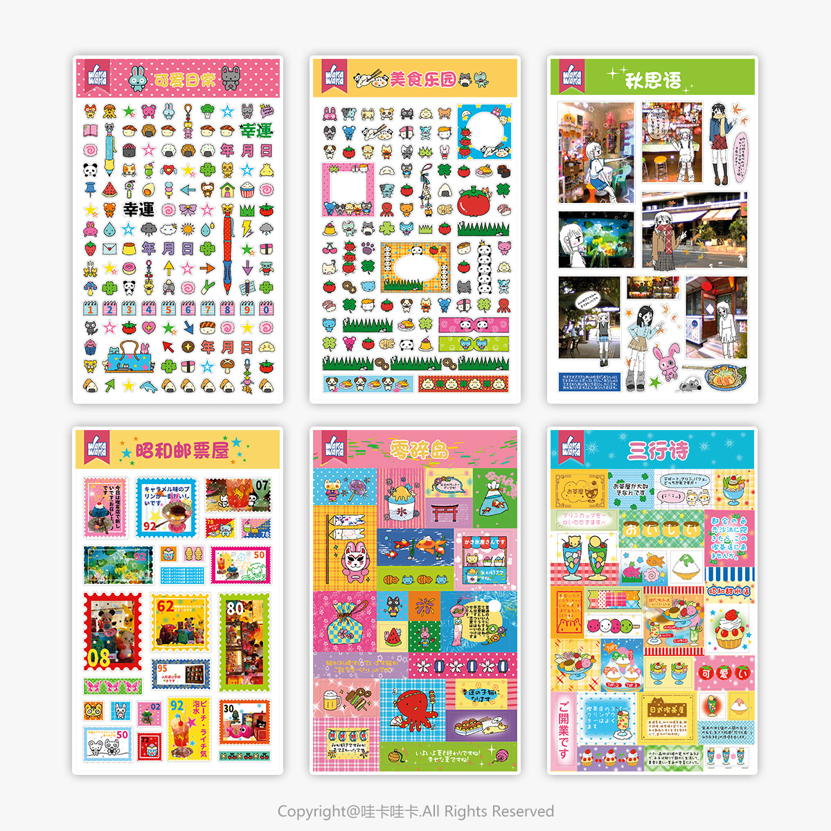 Симпатичная запись/одна наклейка; Пищевой сезон/одиночная наклейка; Осенние мысли/одинарная наклейка; Showa House/одиночная наклейка; Измельченный остров/одиночная наклейка; Три строки поэзии/одиночная наклейка