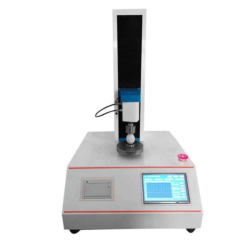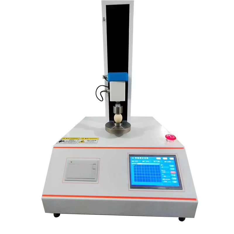 将鸡蛋固定竖放于上下测量面间,测量面以一定的速度作相对运动,并将鸡蛋压破。鸡蛋压破过程所的力通过传感器测量,并记录和显示出来。