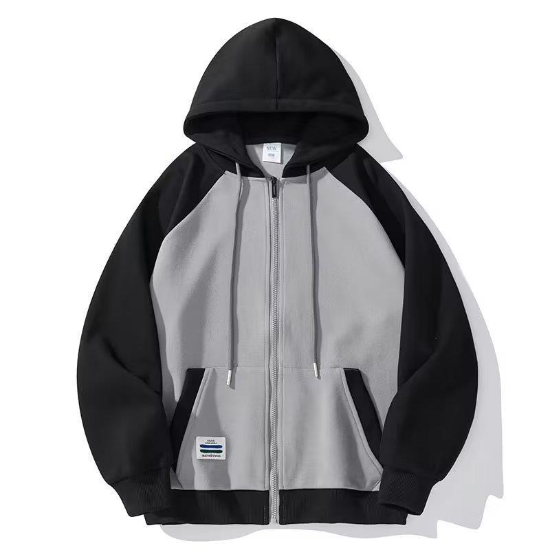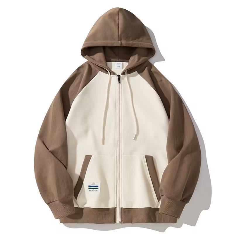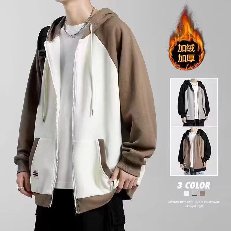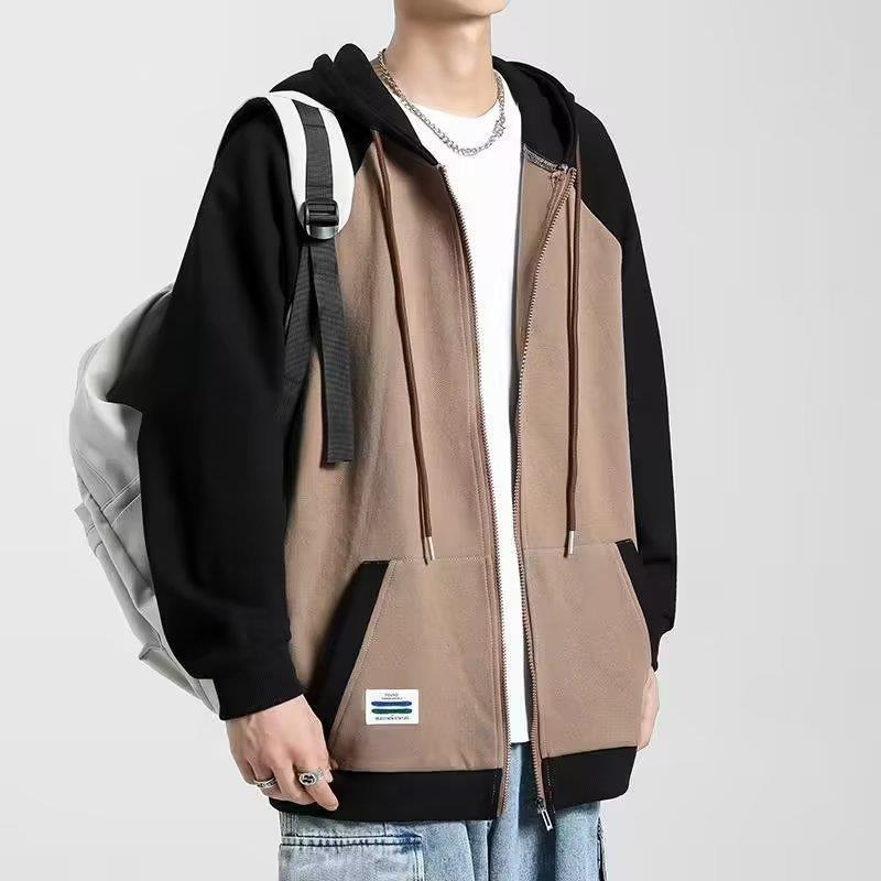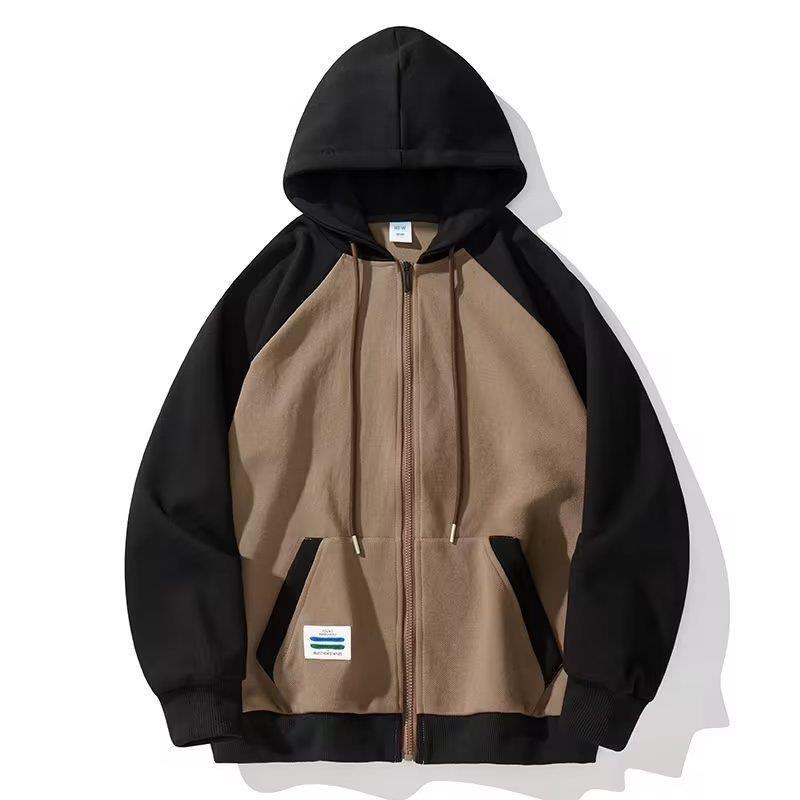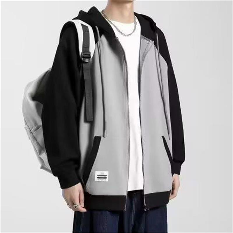 2024 куртка мужской ретро весна осень с капюшоном моды свитер свободный повседневный двухцветный сшитый плюс флисовая куртка
