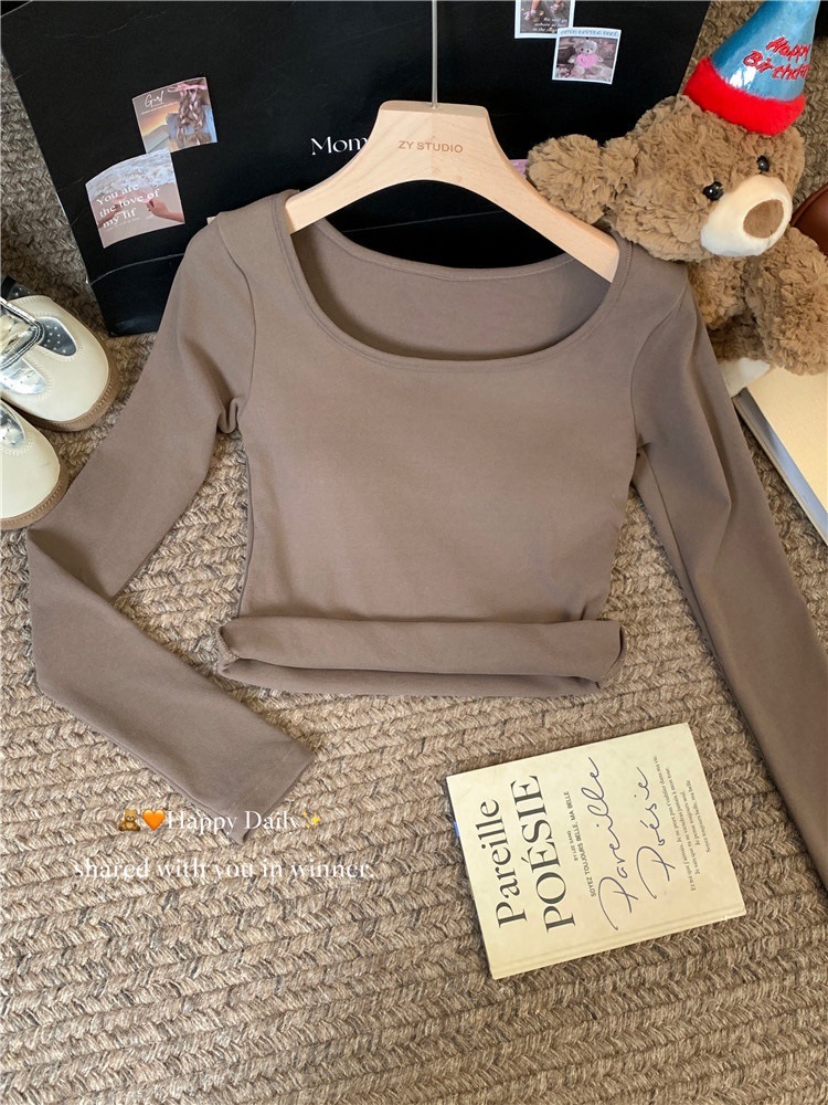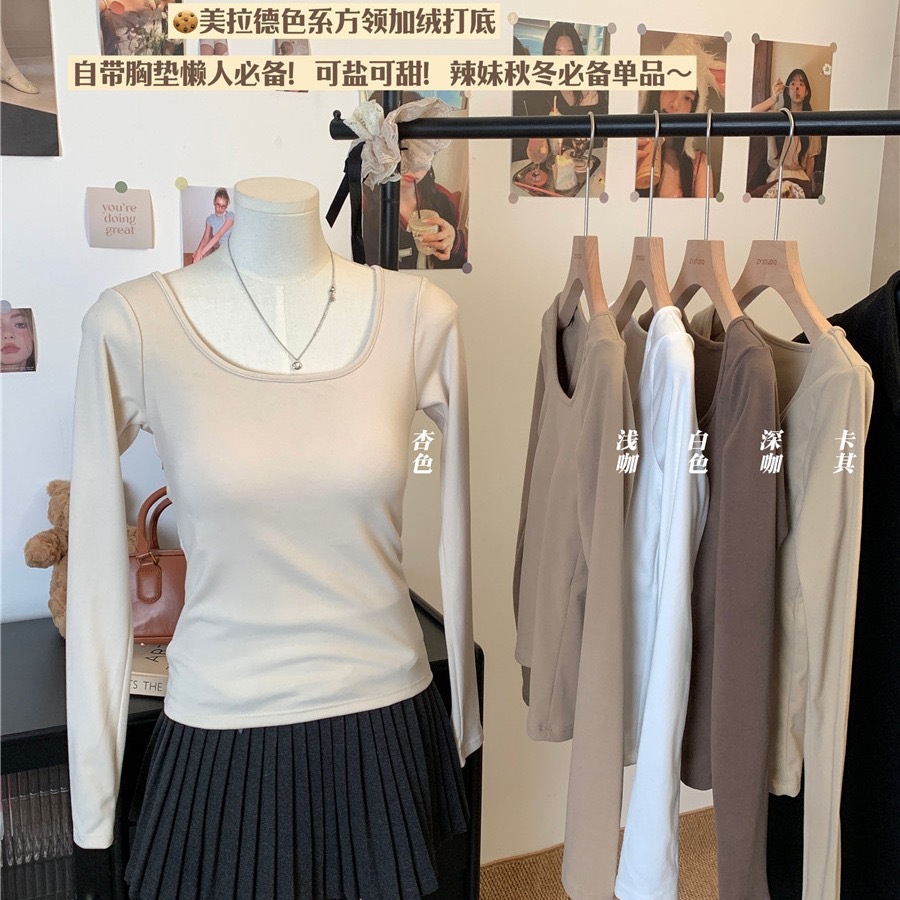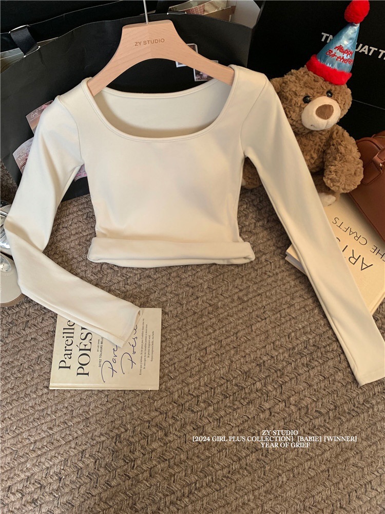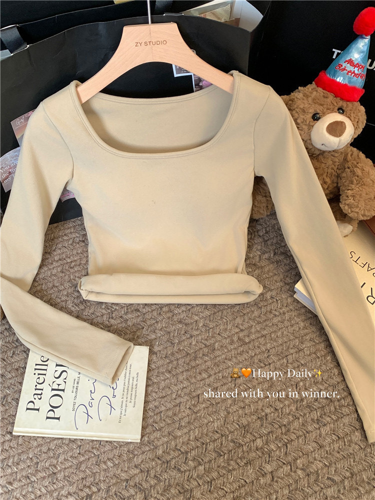 Теплая футболка с длинными рукавами U-образным вырезом нижняя рубашка