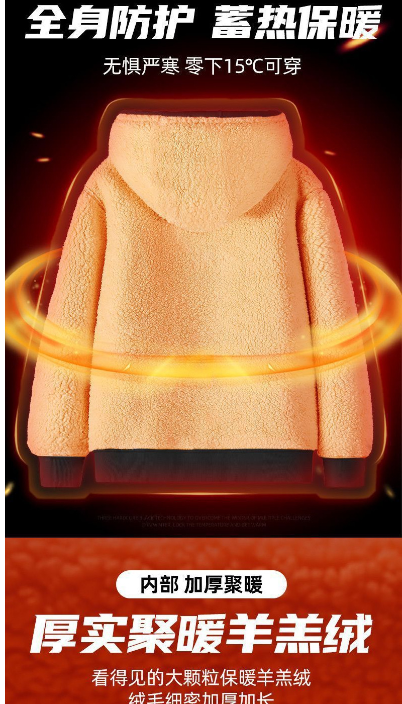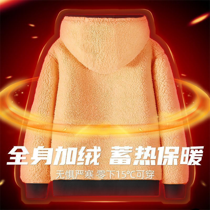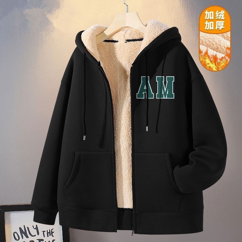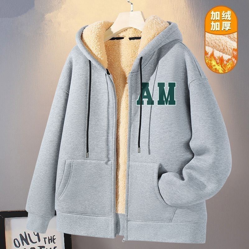 Толстый свитер на молнии мужской 2024 осень-зима новый толстый бархат свободный корейский сплошной цвет овечья шерсть с капюшоном топ