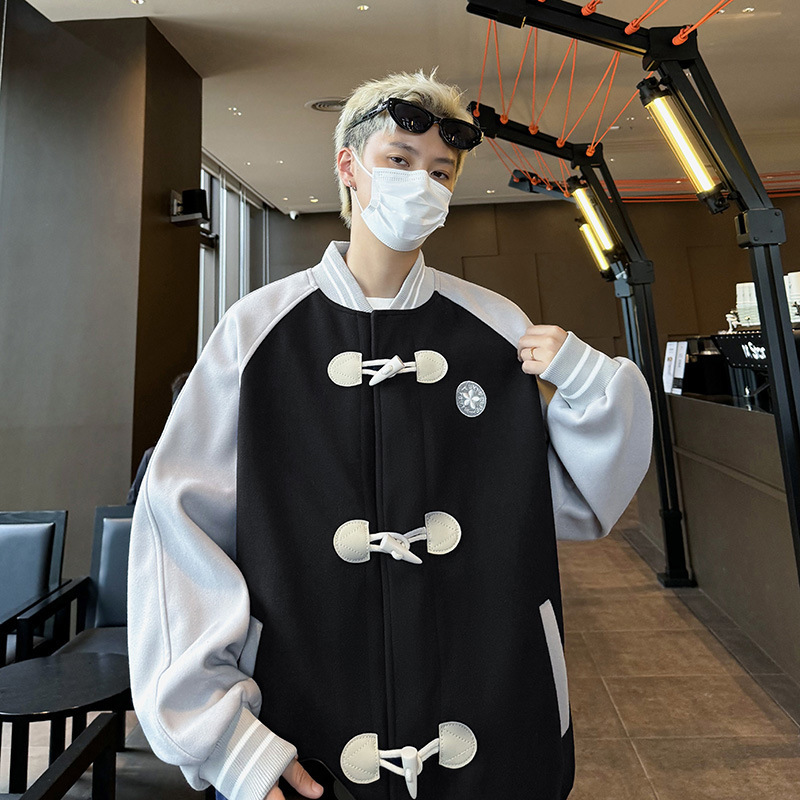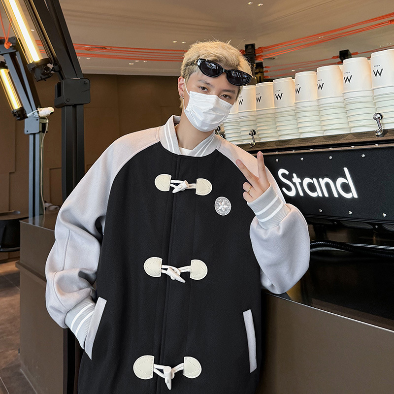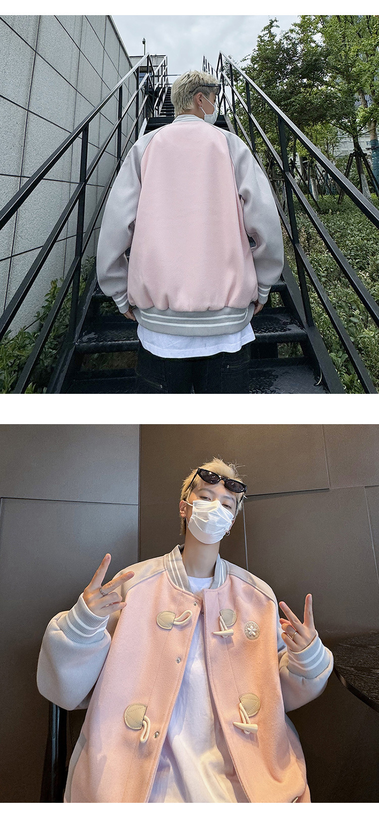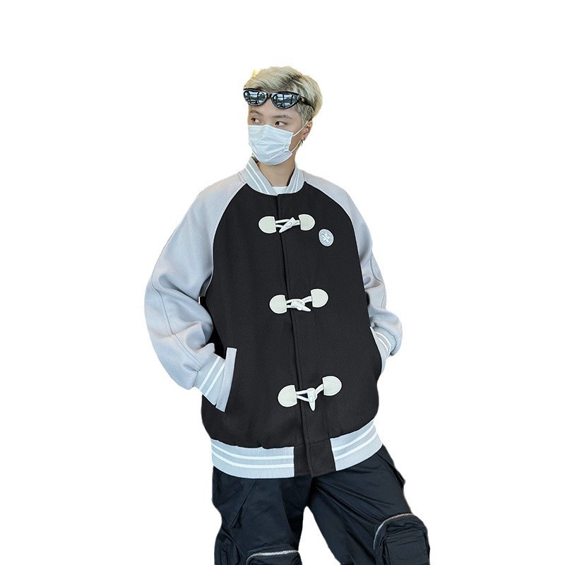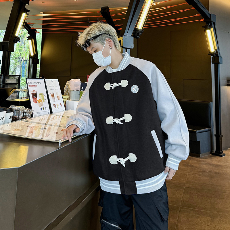 Модная сшитая колорит рога пуговицы шерстяной бейсбольный костюм куртка для мужчин и женщин осень ретро свободная спортивная пара куртка