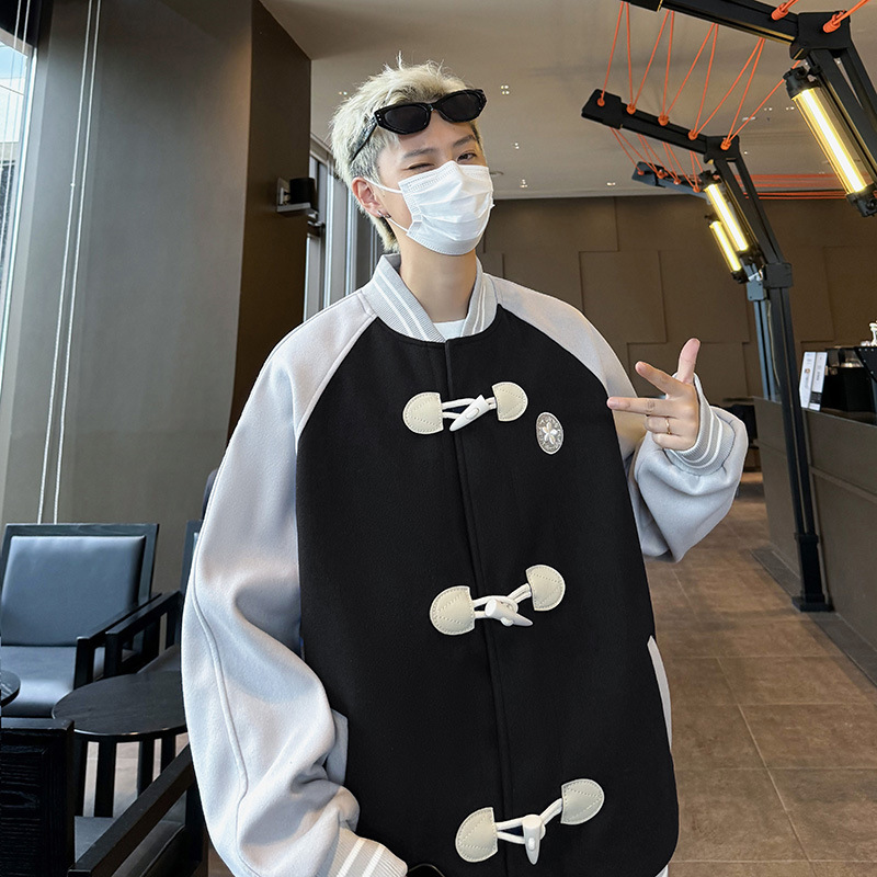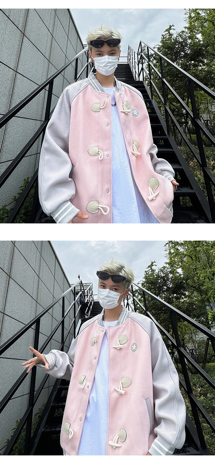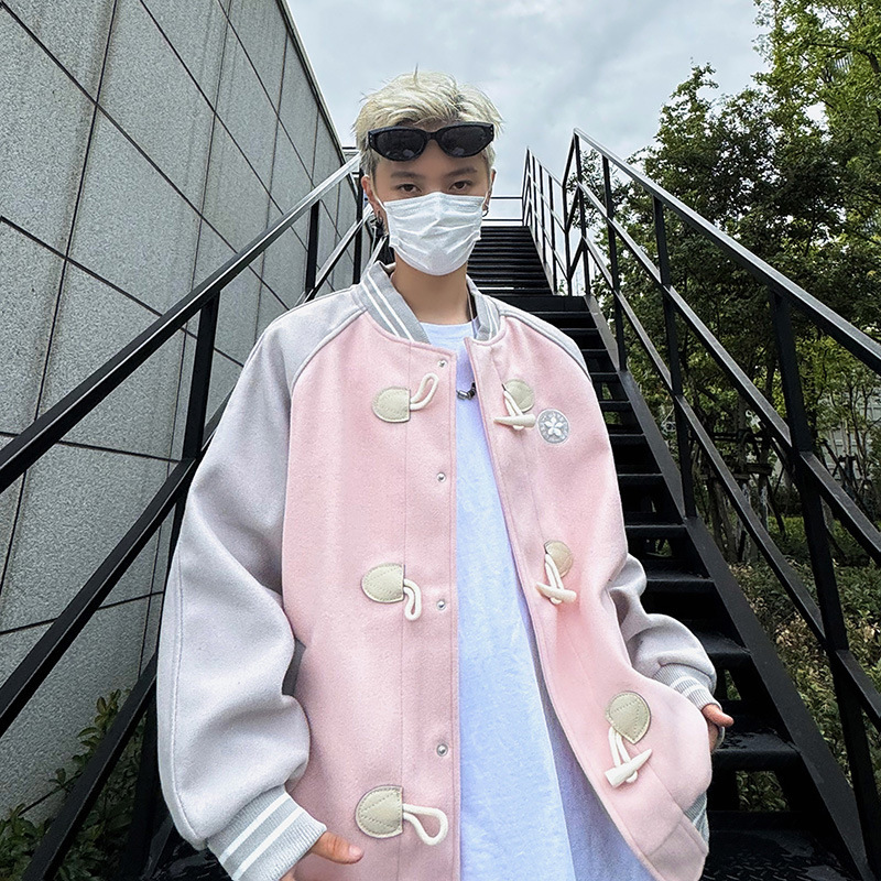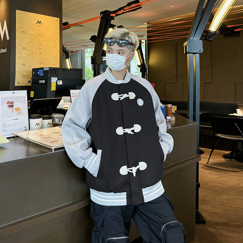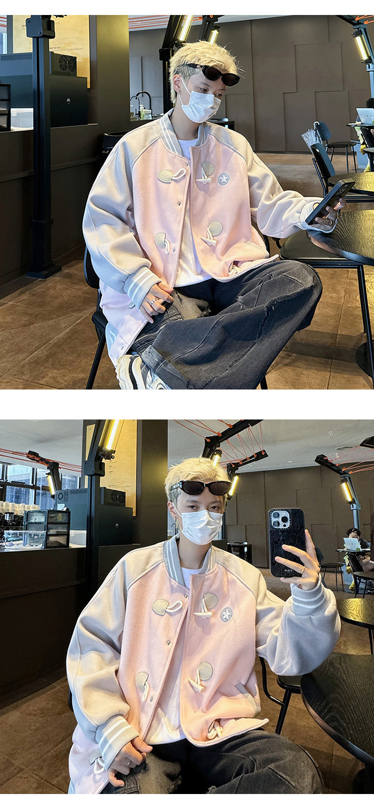 Модная сшитая колорит рога пуговицы шерстяной бейсбольный костюм куртка для мужчин и женщин осень ретро свободная спортивная пара куртка