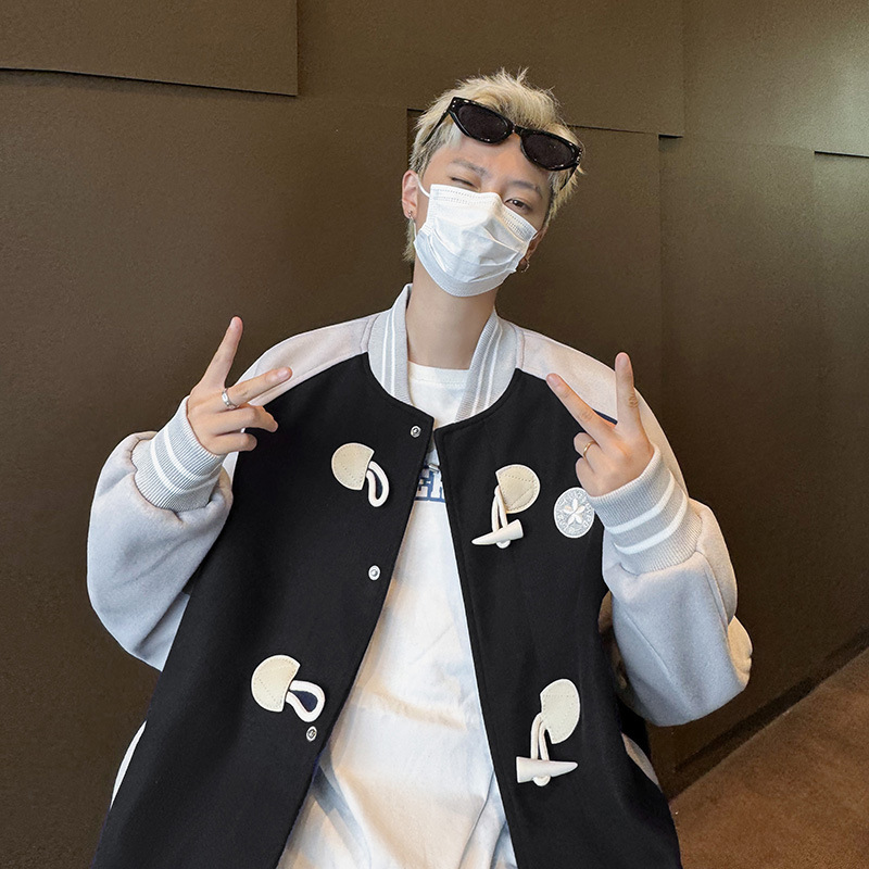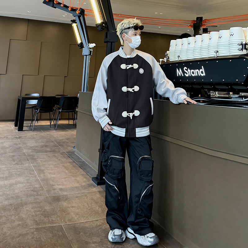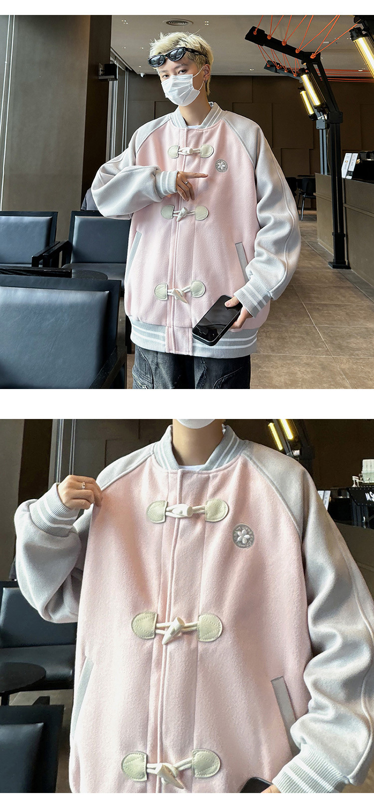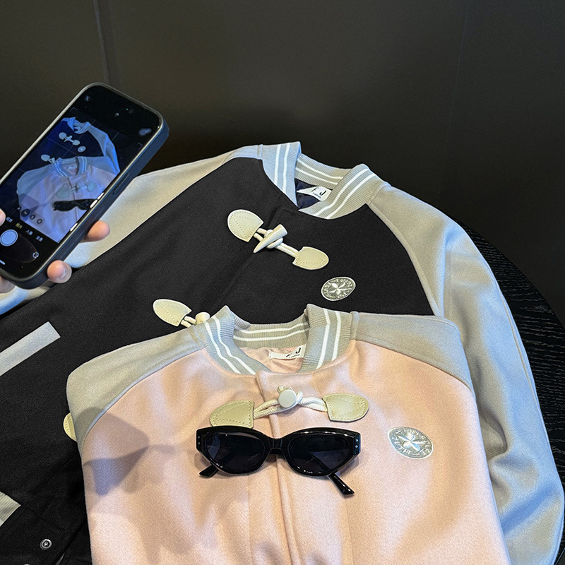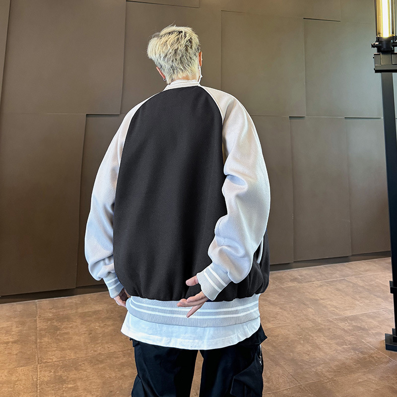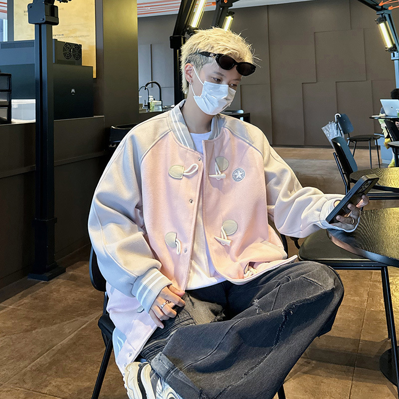 Модная сшитая колорит рога пуговицы шерстяной бейсбольный костюм куртка для мужчин и женщин осень ретро свободная спортивная пара куртка