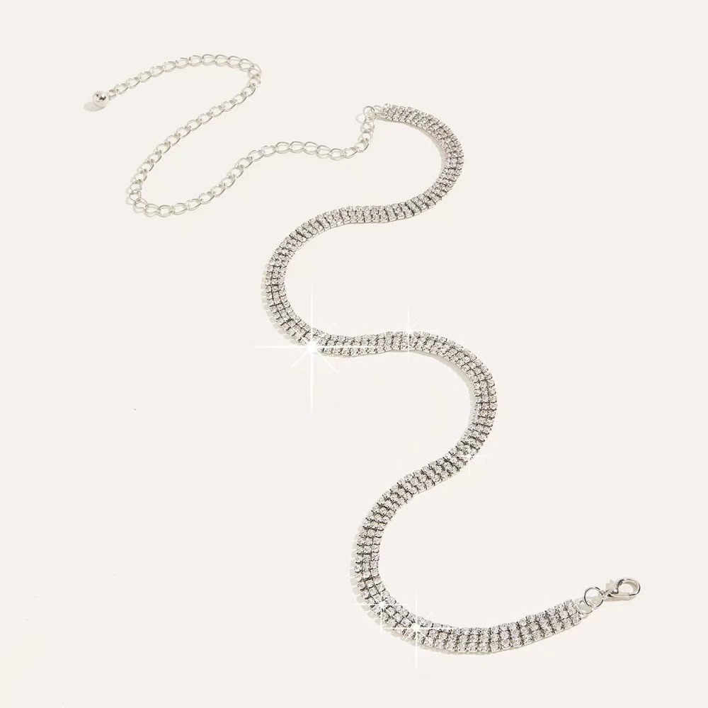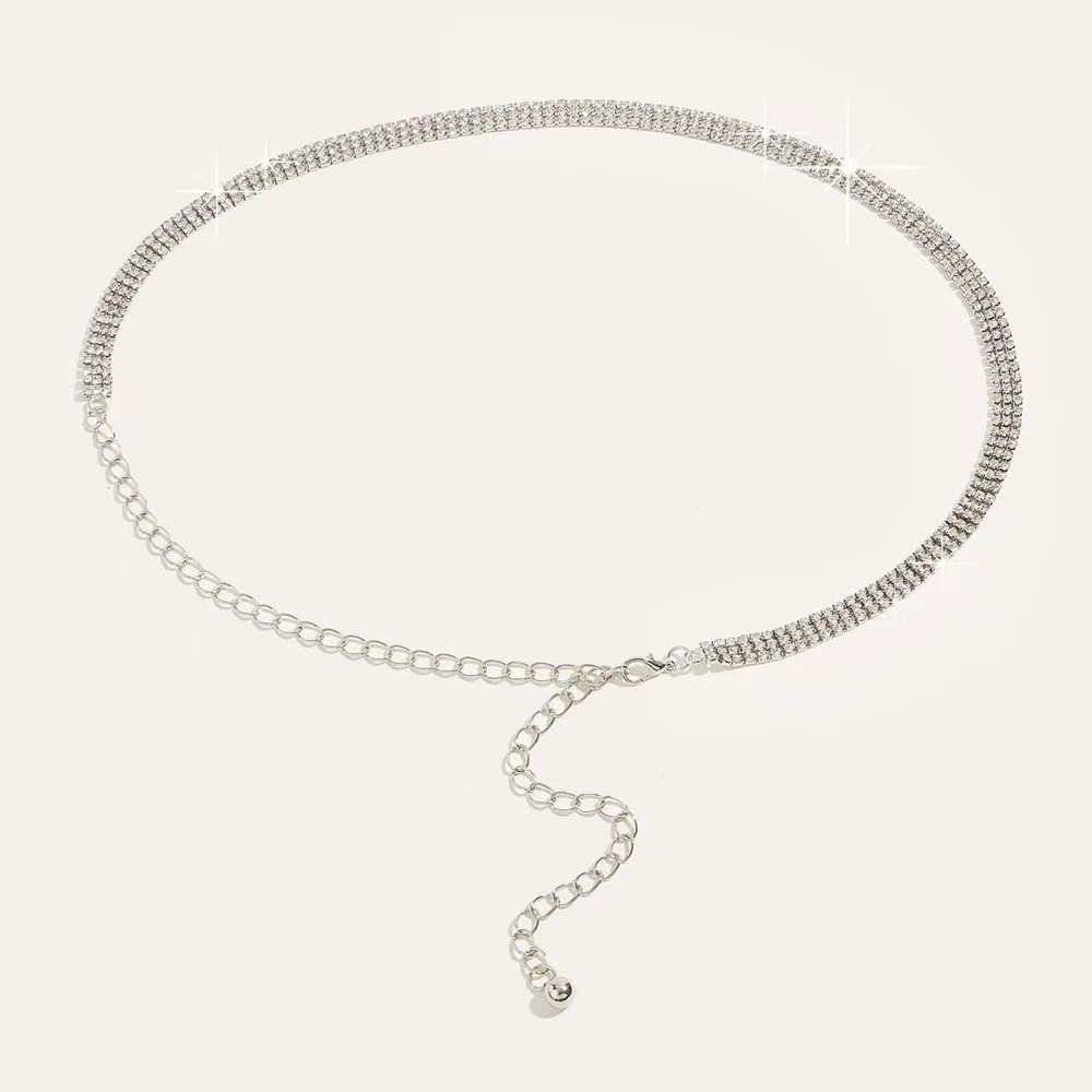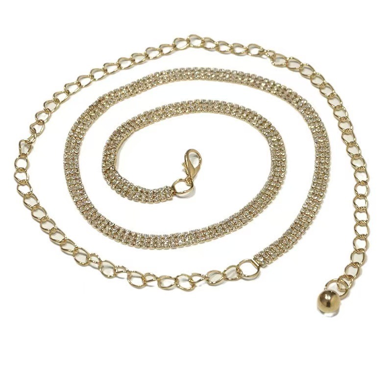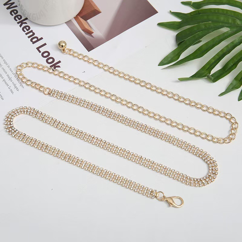 Производители напрямую поставляют трансграничные новые модные дамы полный бриллиант металлическая поясная цепь сладкие три ряда страз инкрустированные металлические украшения