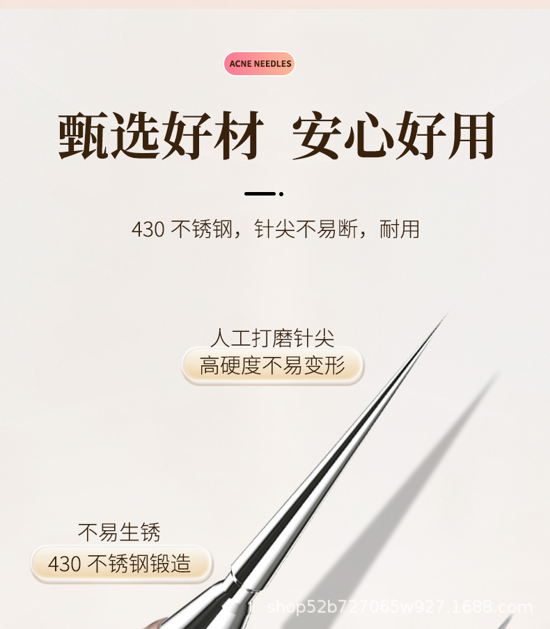 Светло-розовая игла от прыщей с кепкой; Игла от прыщей с фиолетовой штифтой; Игла от прыщей с зеленым штифтом; Игла от прыщей с серебряным штифтом