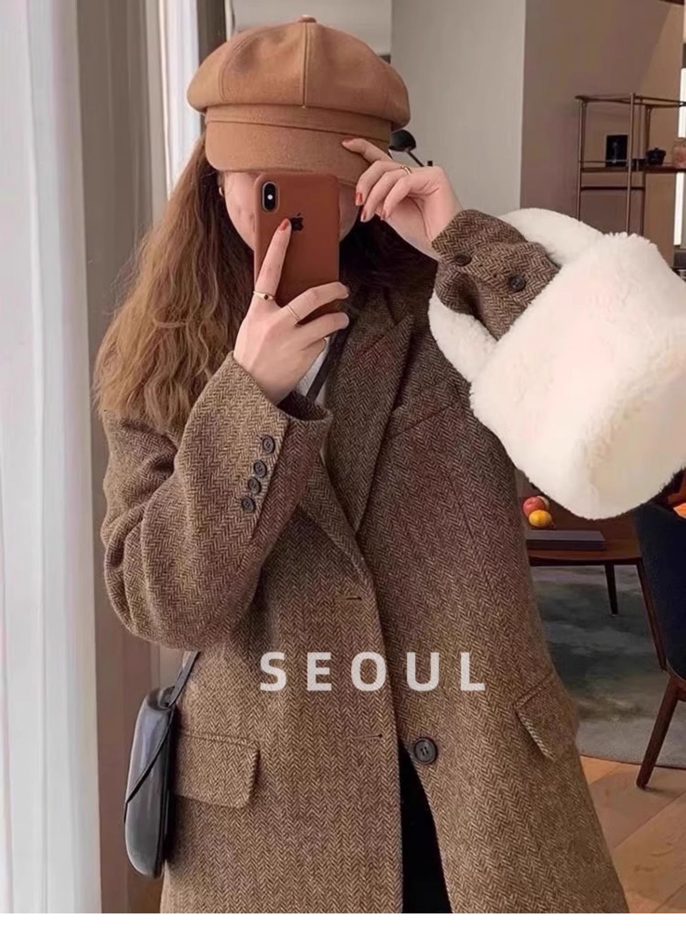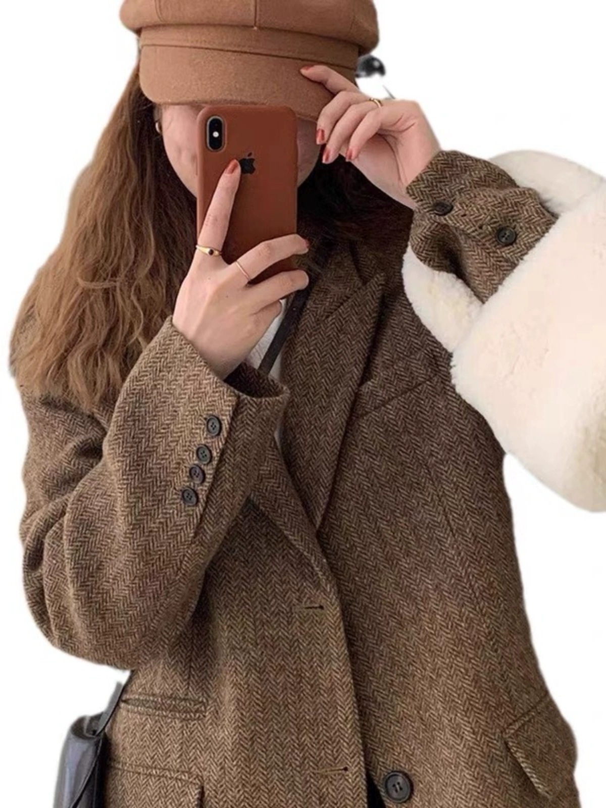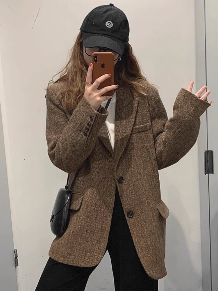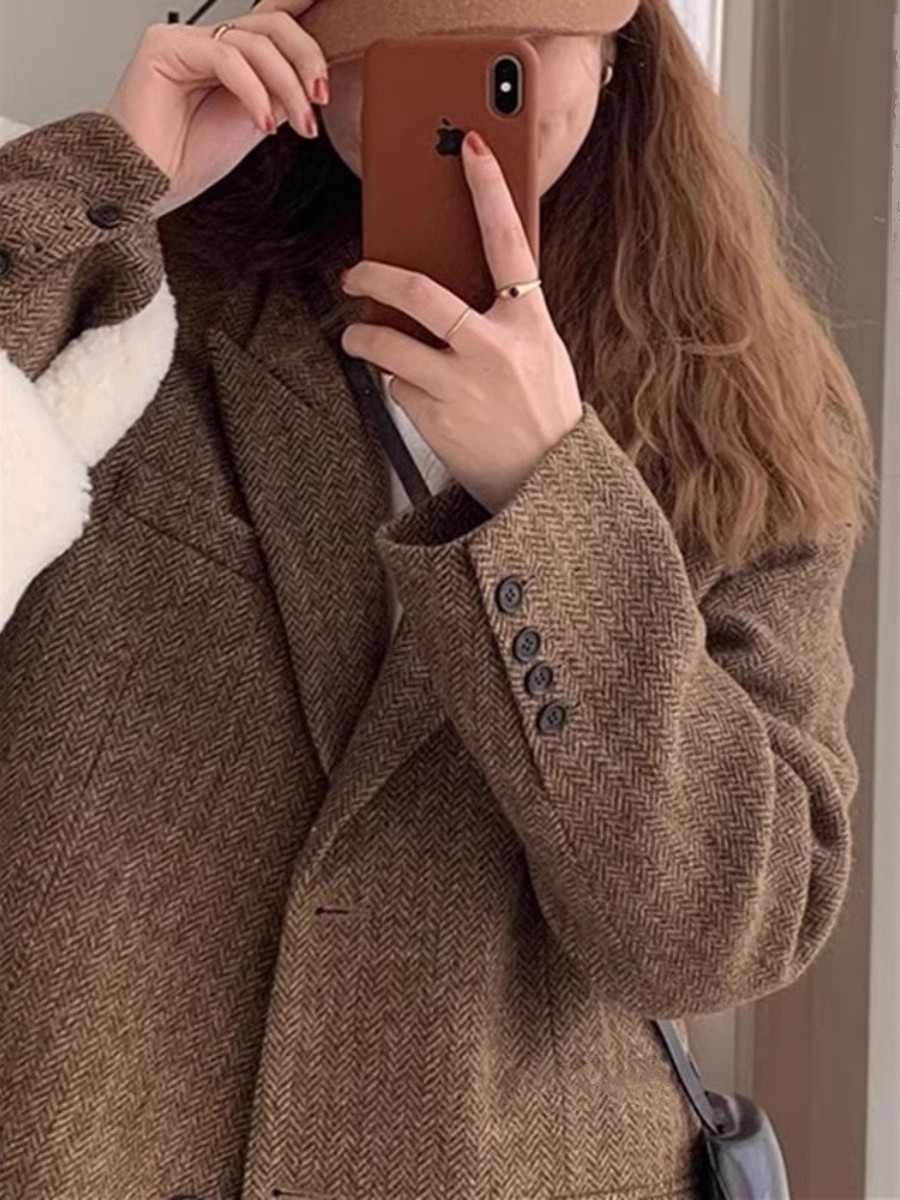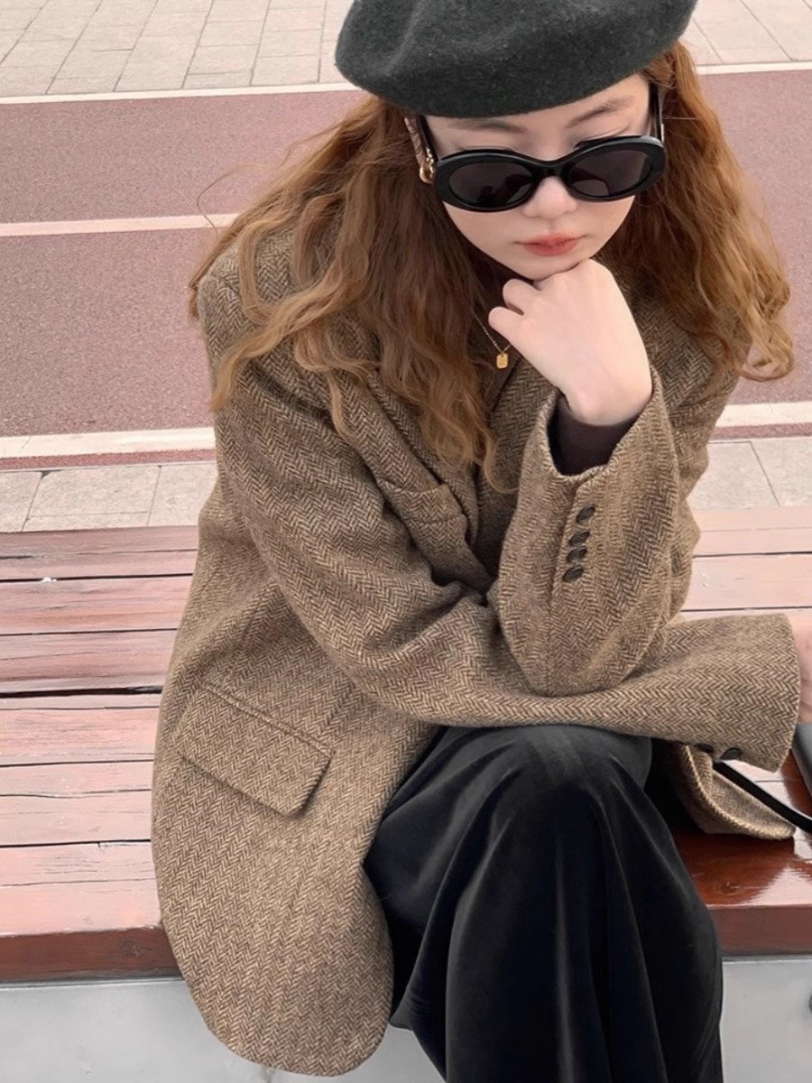 [Спот] 2024 большой размер осенний и зимний елочка костюм слегка толстый средний шерстяной костюм куртка женский 9055
