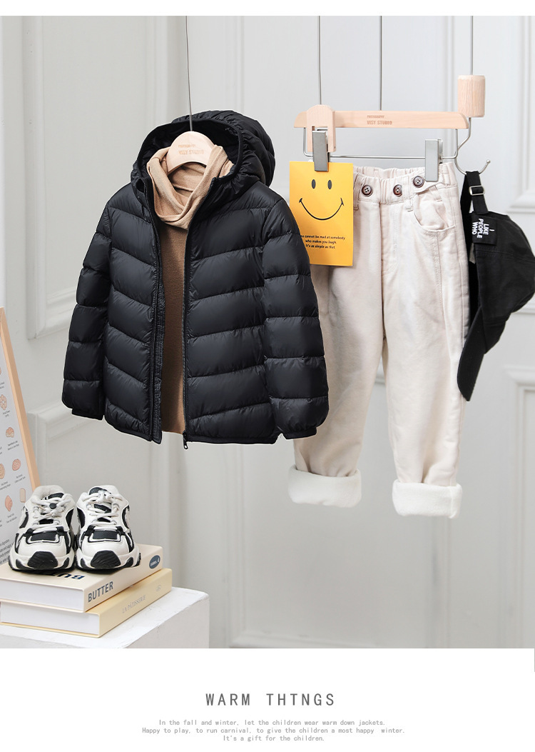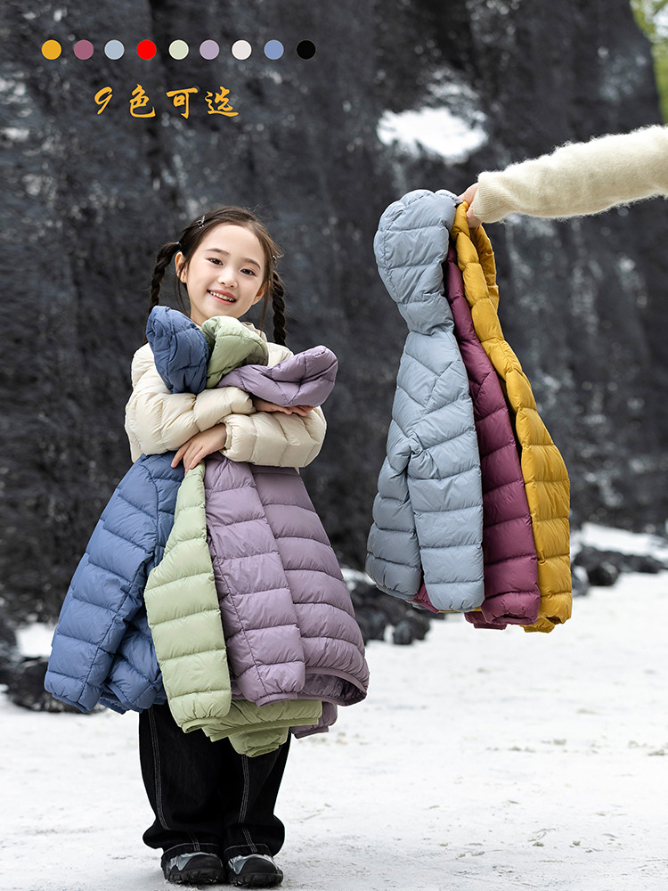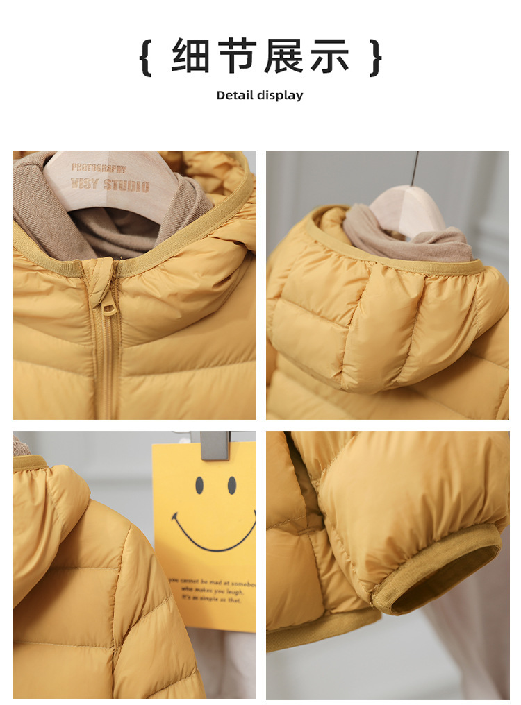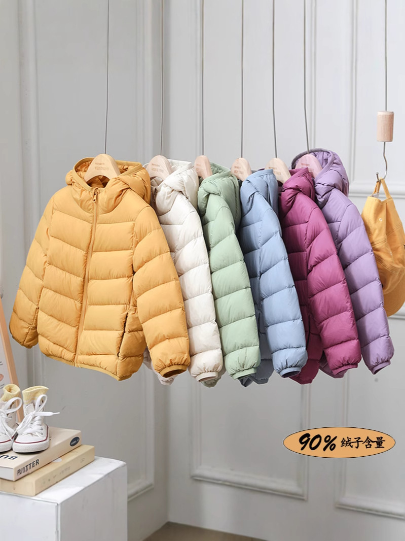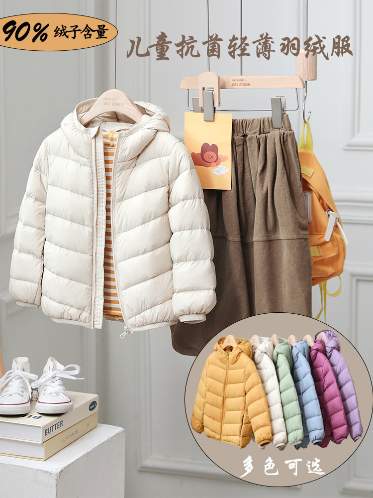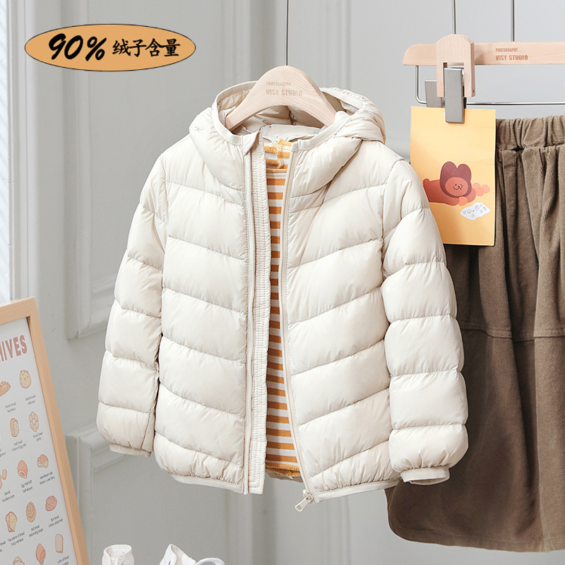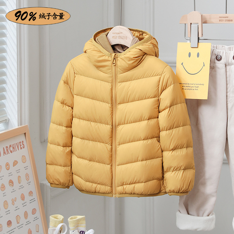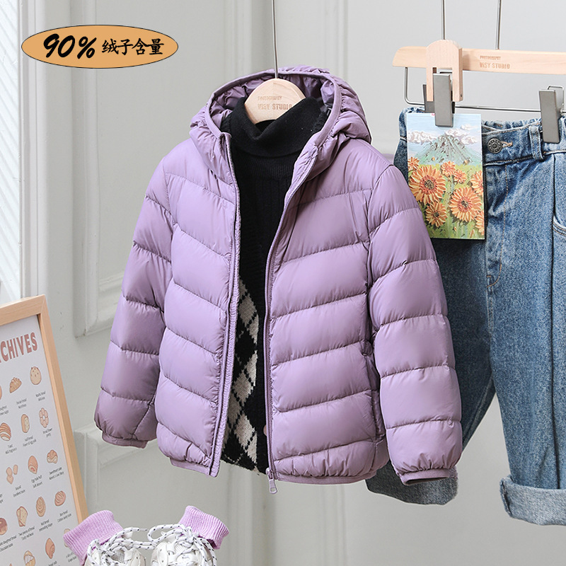 Физический магазин 90 бархатный детский легкий пуховик с капюшоном 2024 зимний новый средний ребенок короткий свободный иностранный пиджак