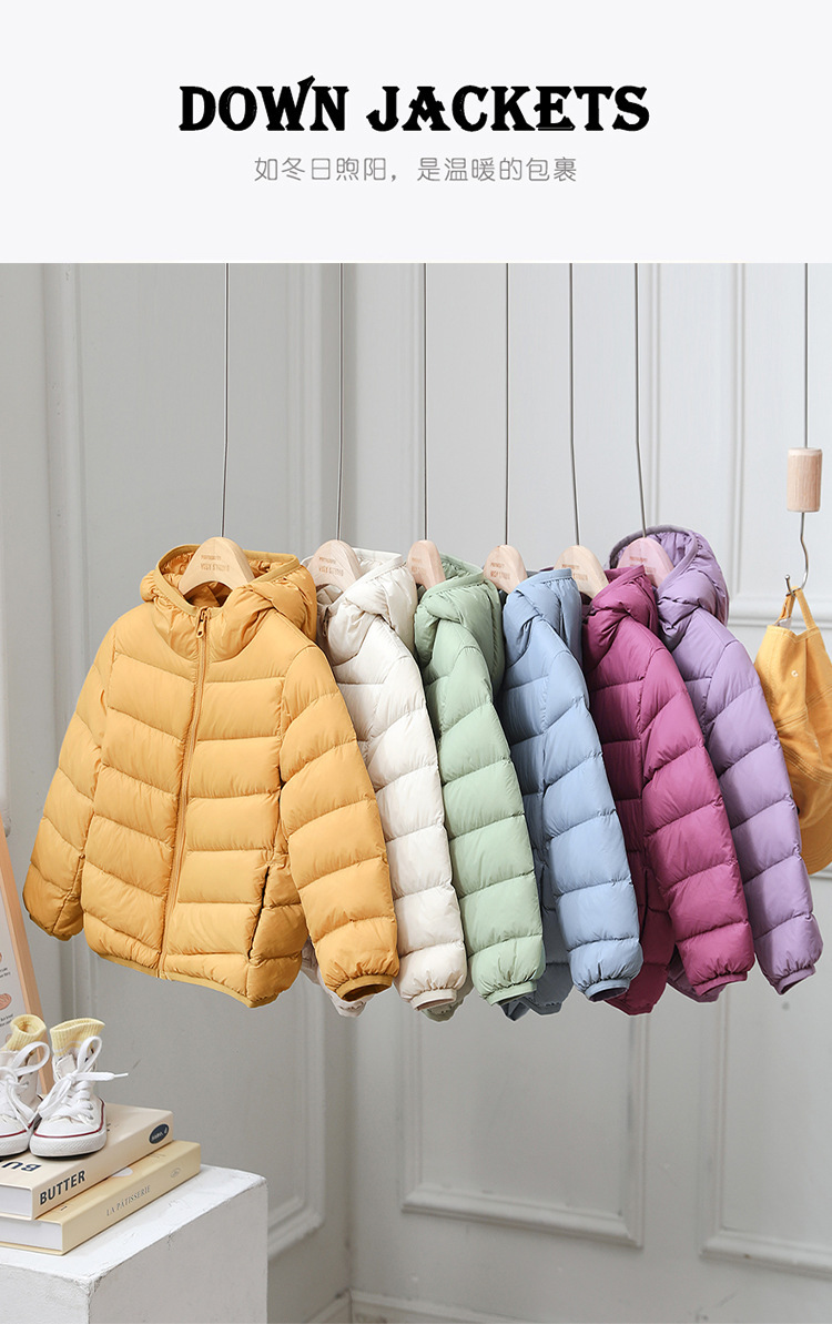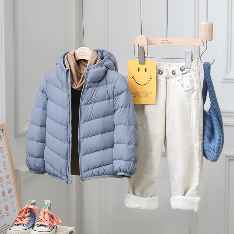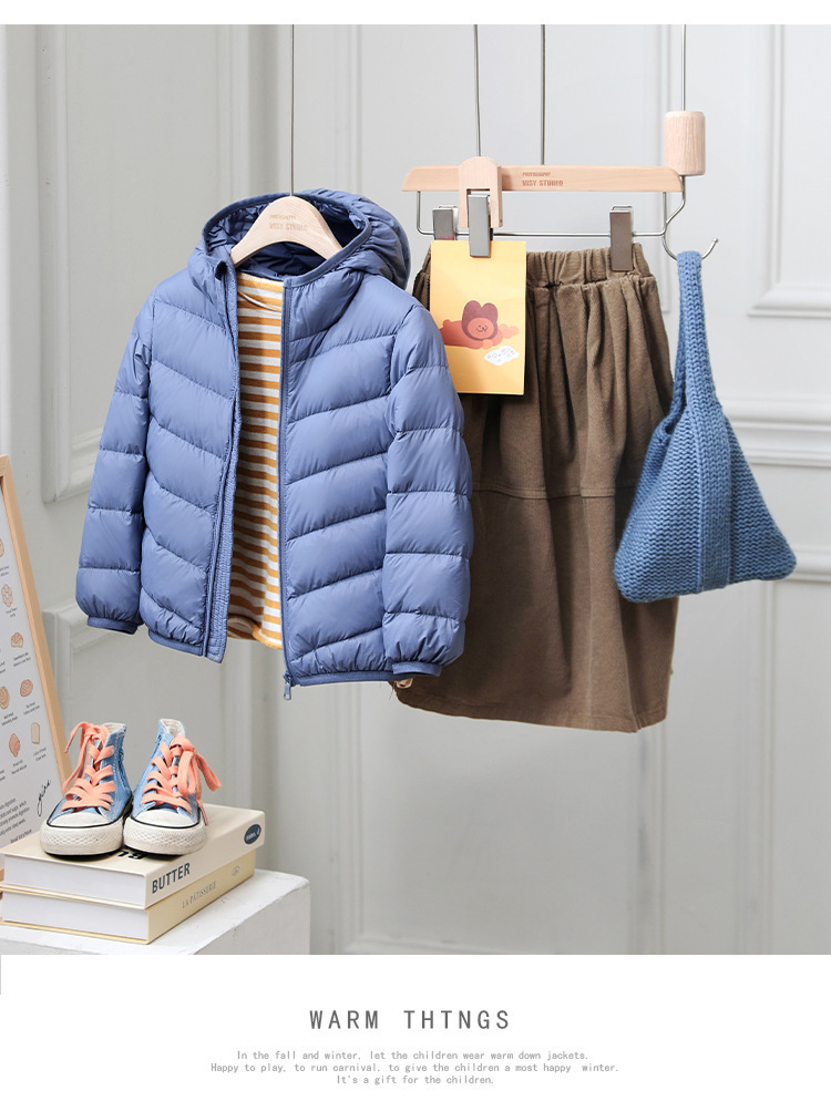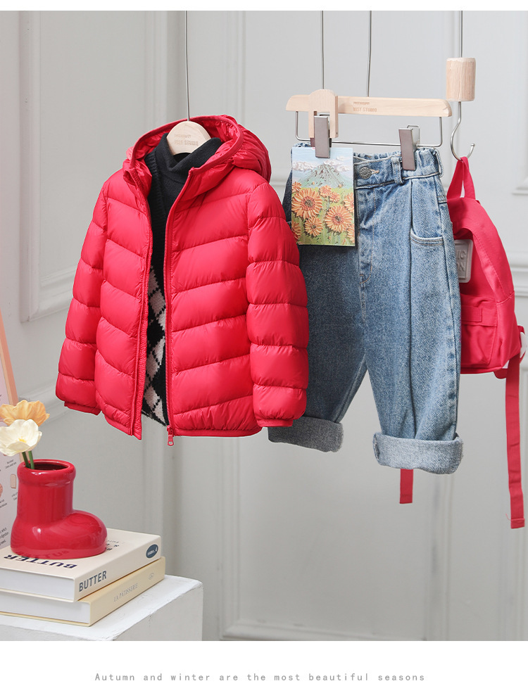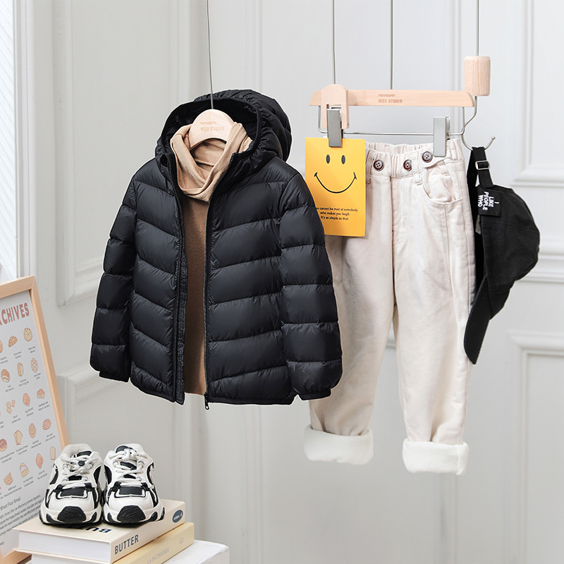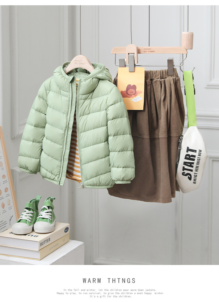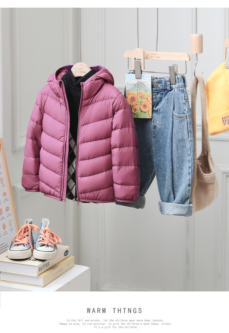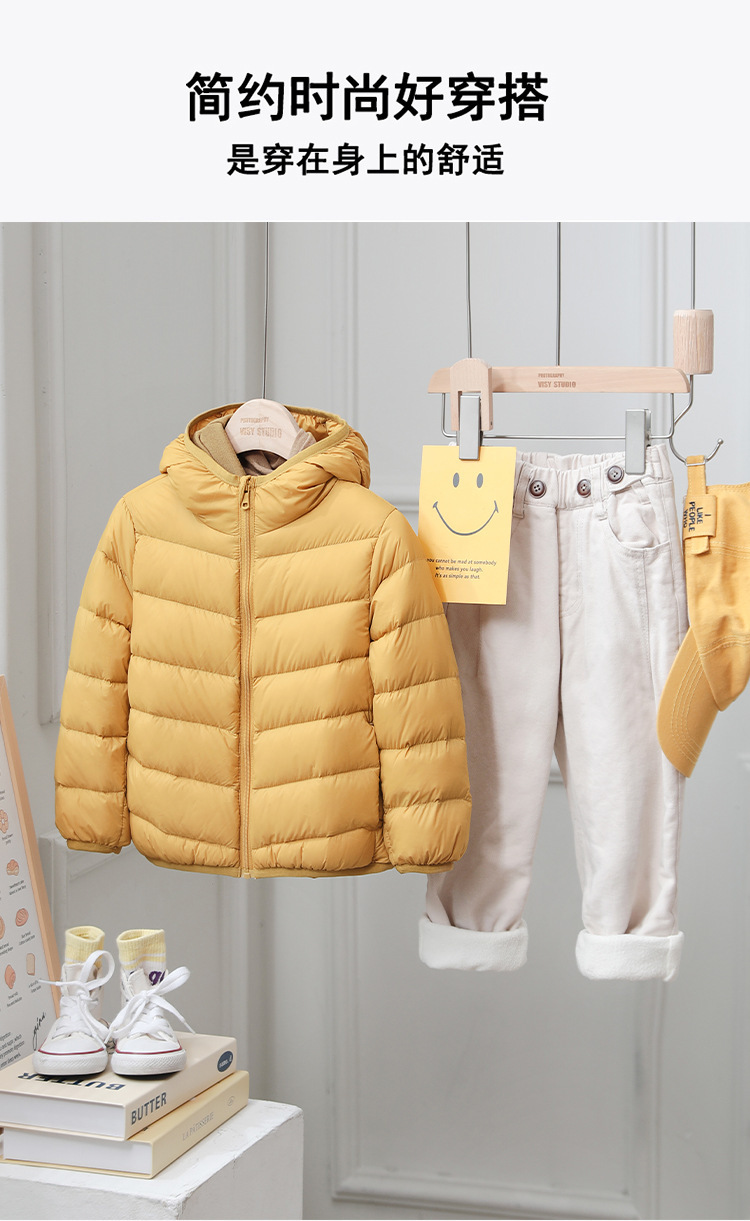Физический магазин 90 бархатный детский легкий пуховик с капюшоном 2024 зимний новый средний ребенок короткий свободный иностранный пиджак