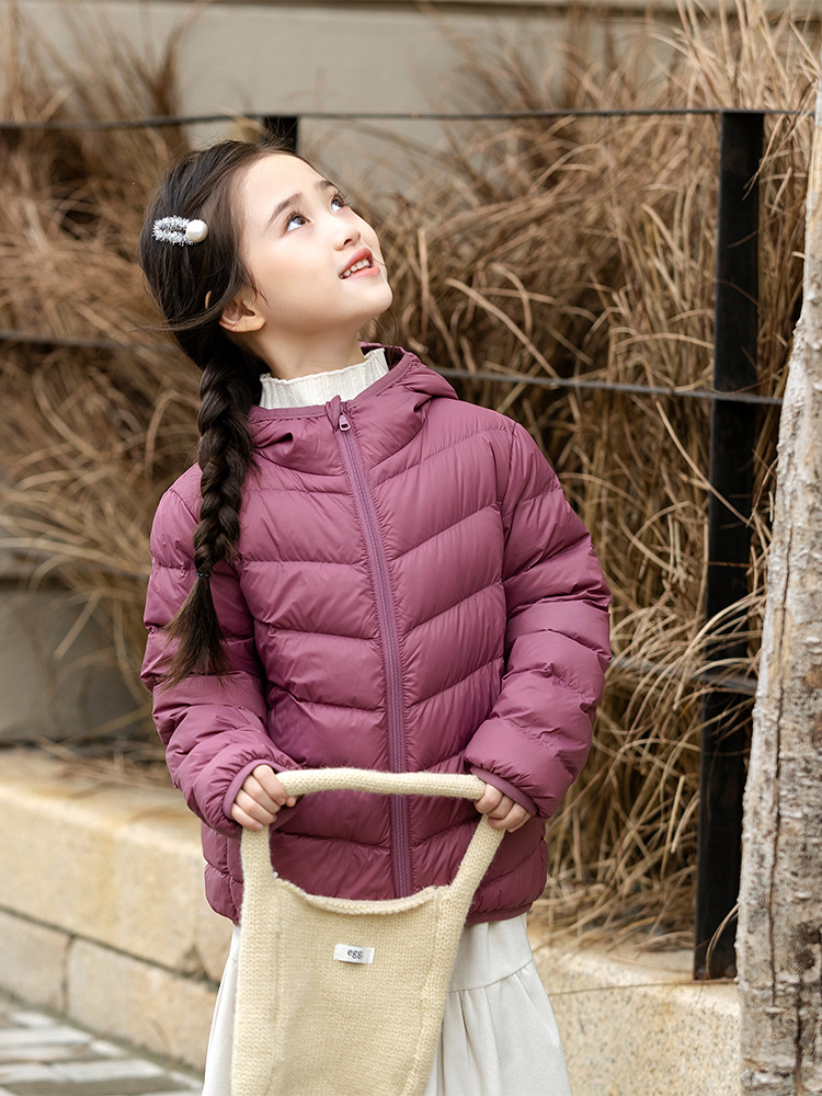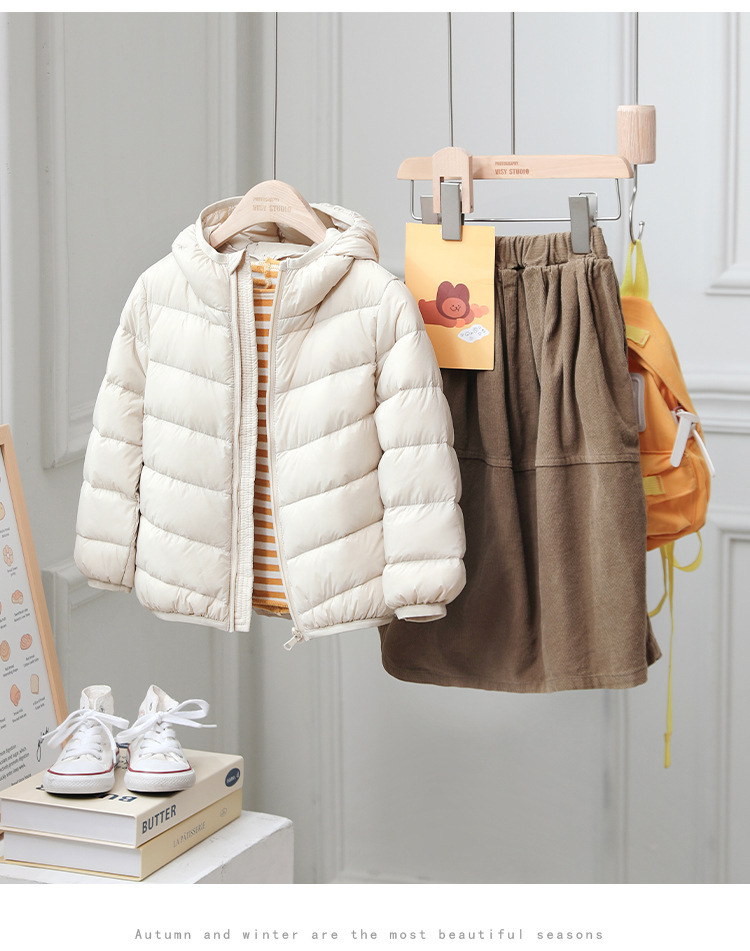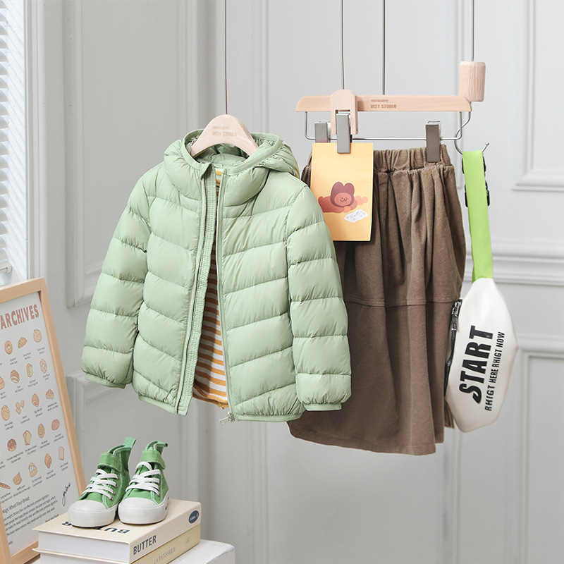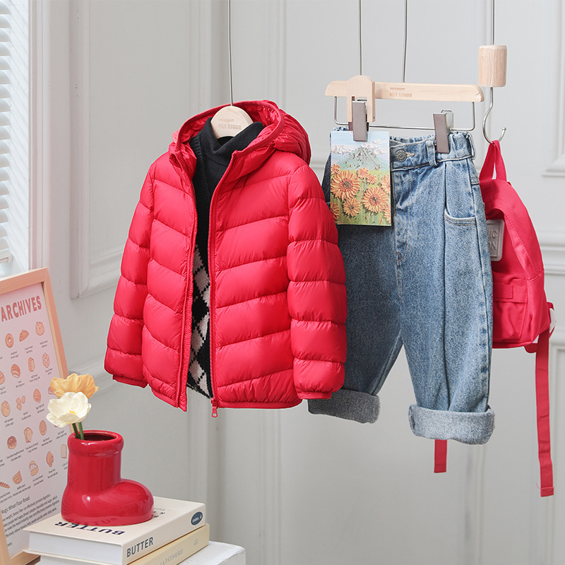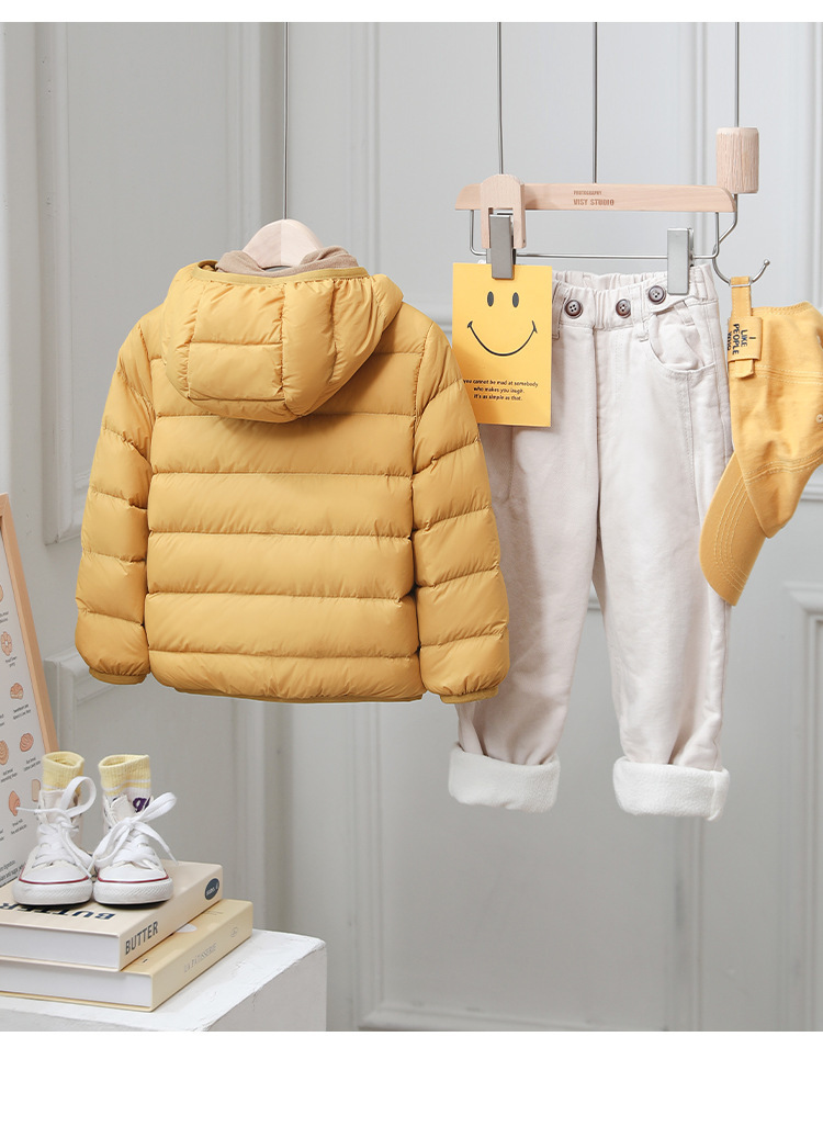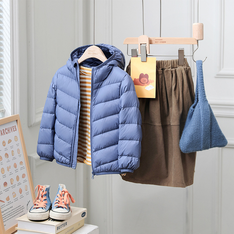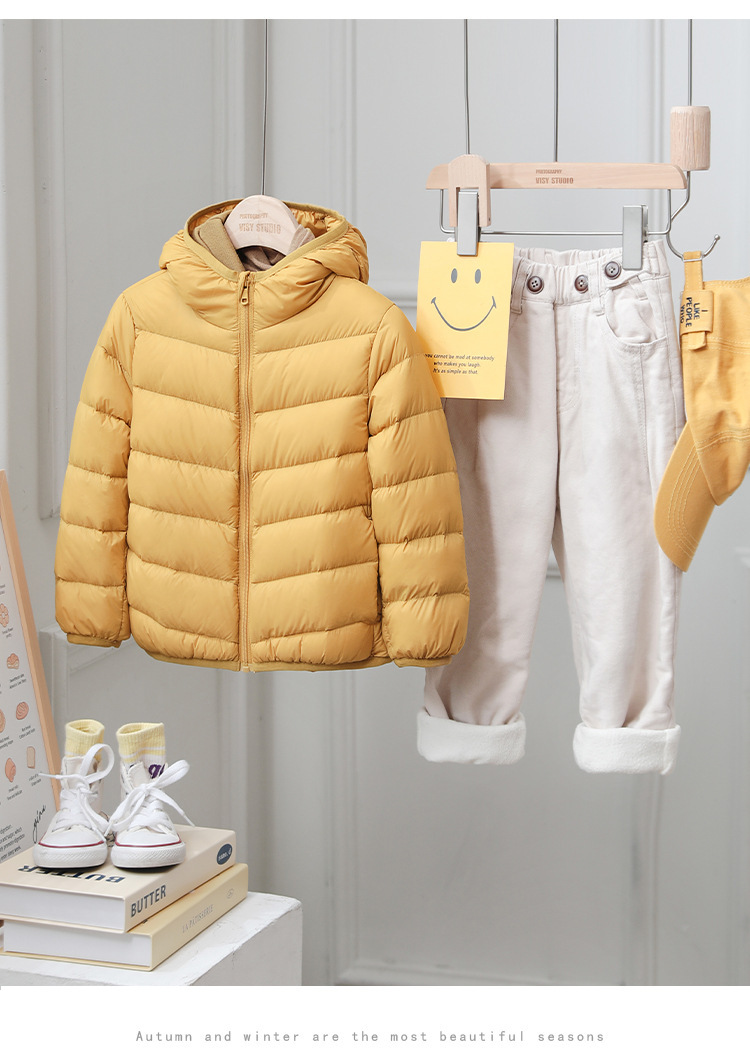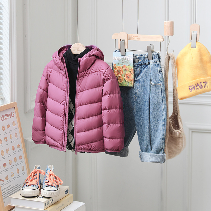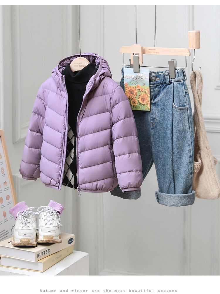 Физический магазин 90 бархатный детский легкий пуховик с капюшоном 2024 зимний новый средний ребенок короткий свободный иностранный пиджак