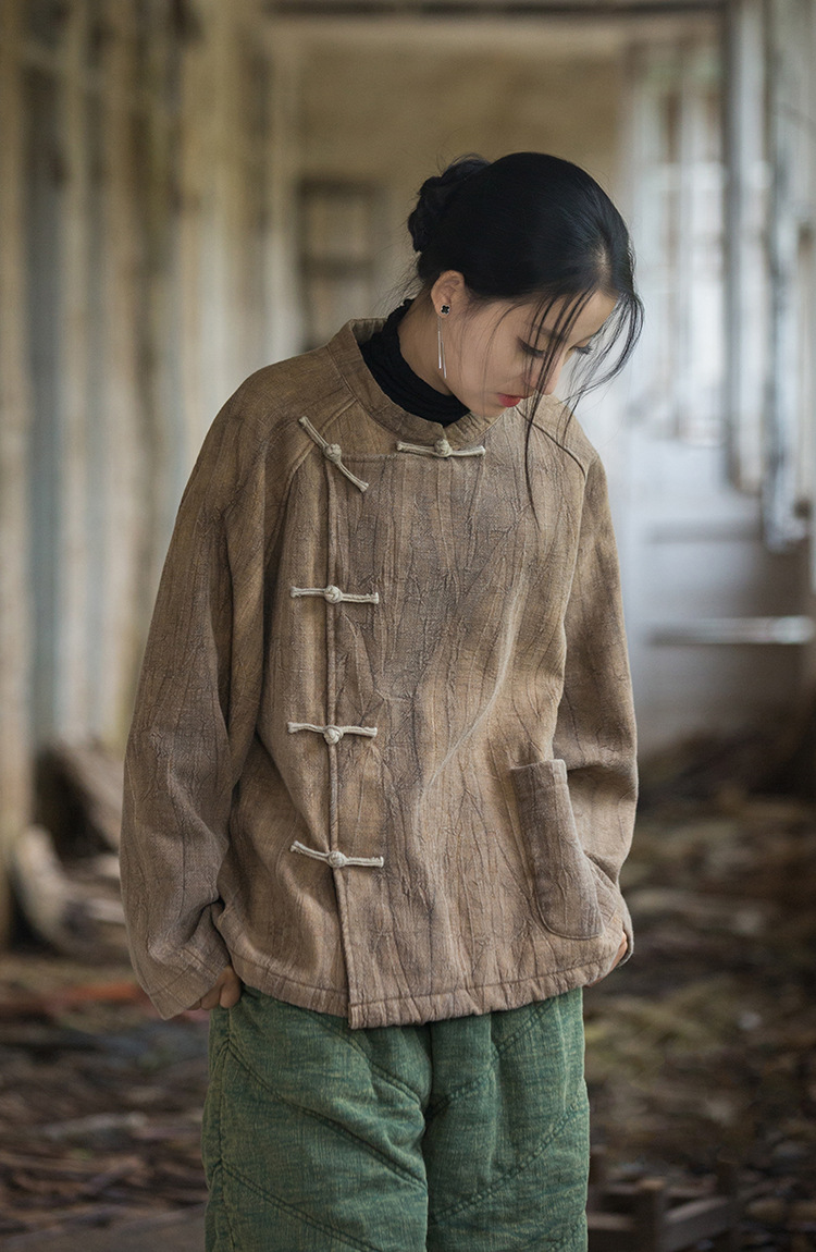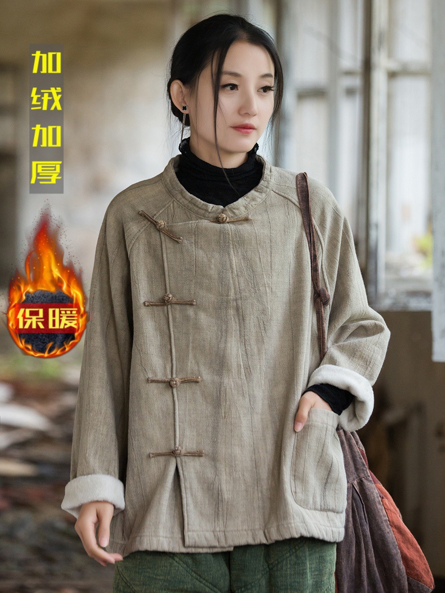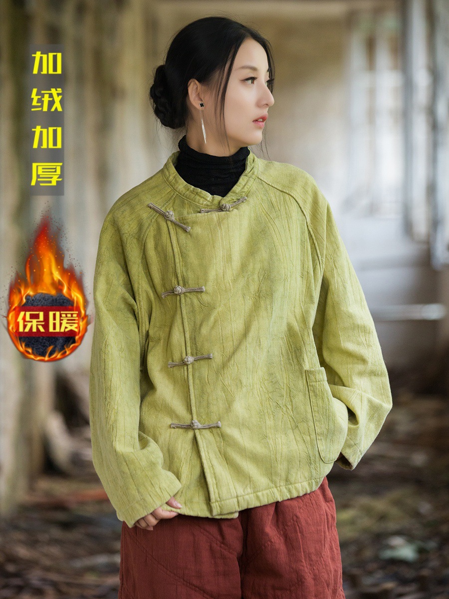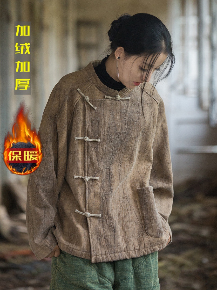 Женская зимняя футболка на пуговицах из рами с эффектом тай-дай, на флисовой подкладке, утолщенная, теплая, винтажная, с художественным дизайном, новинка