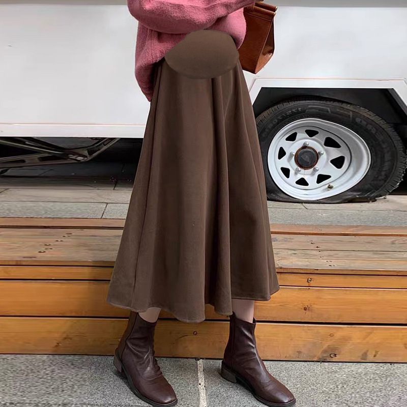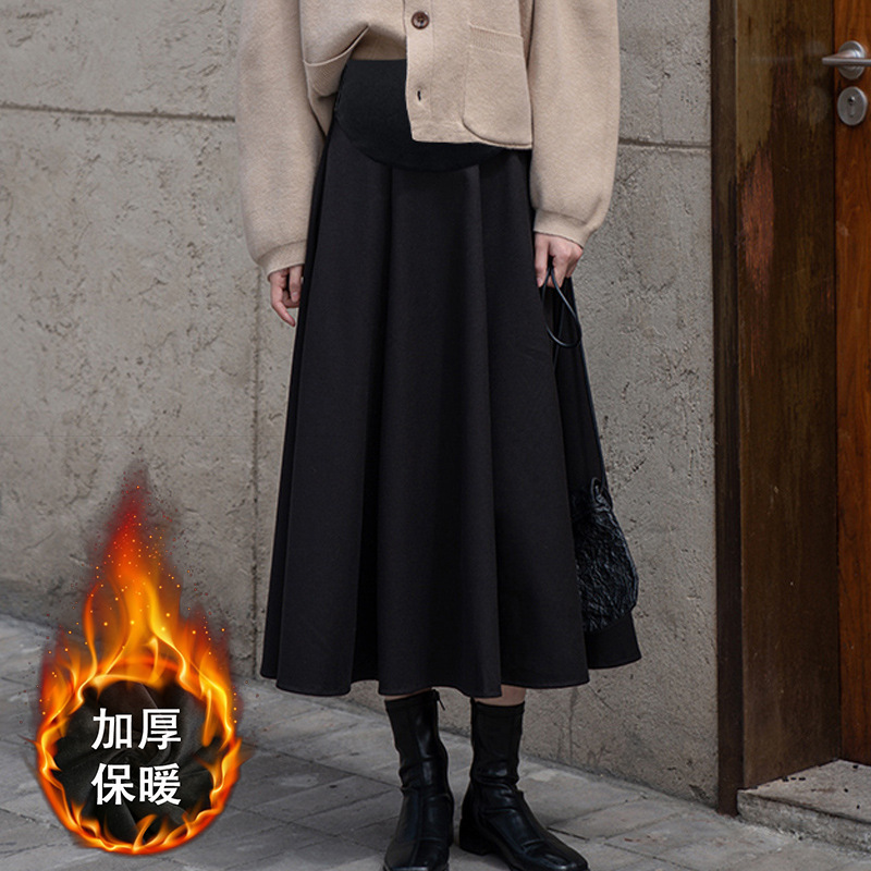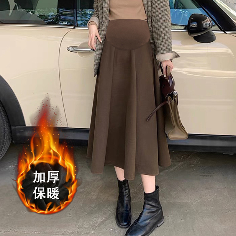 Юбка для беременных осенью и зимой 2024 новая корейская мода носить свободную с высокой талией и тонкой плюшевой шерстяной юбкой