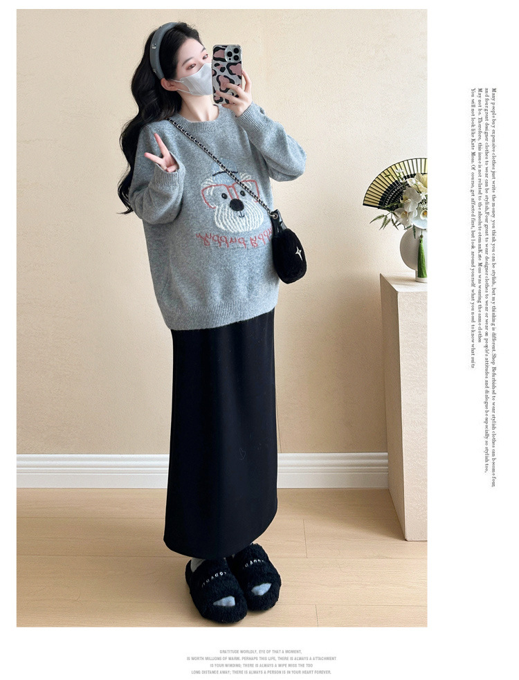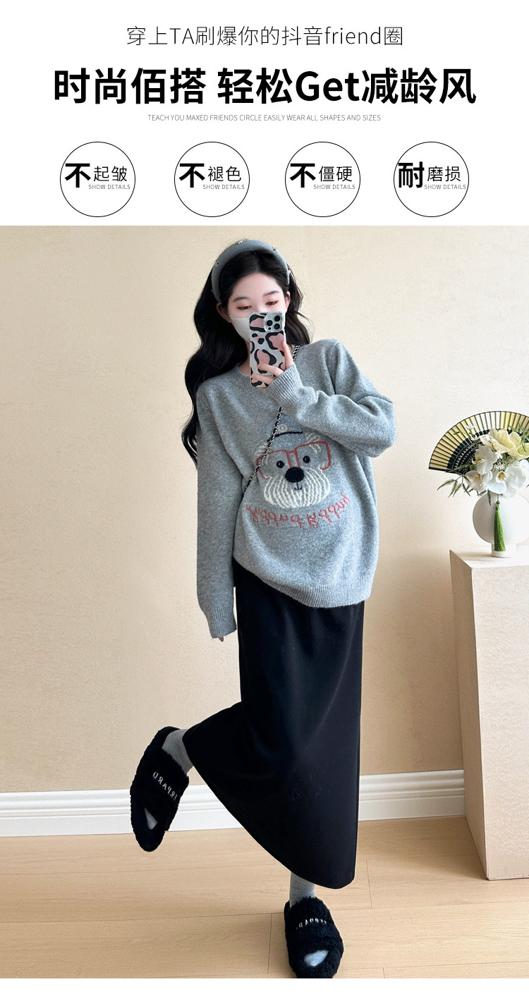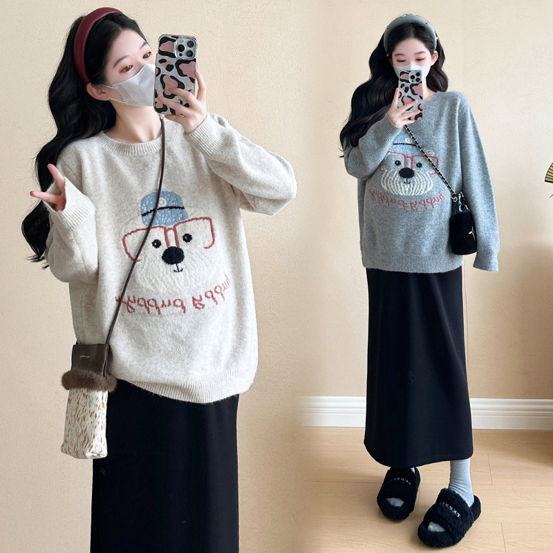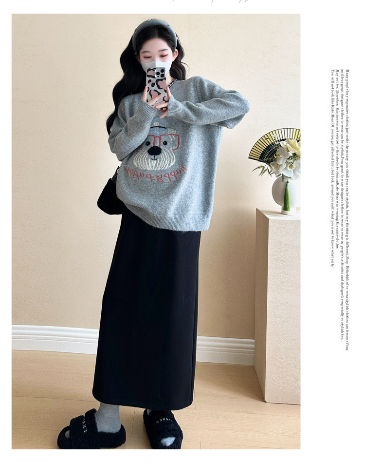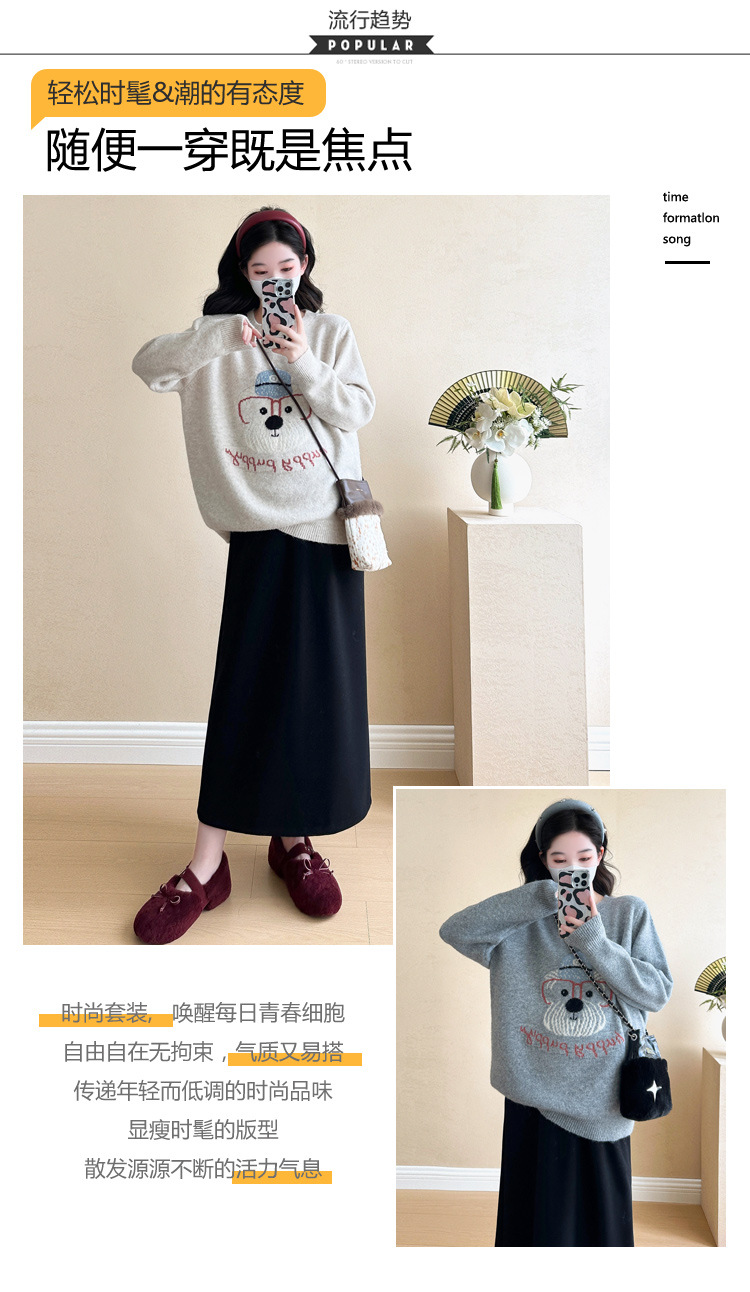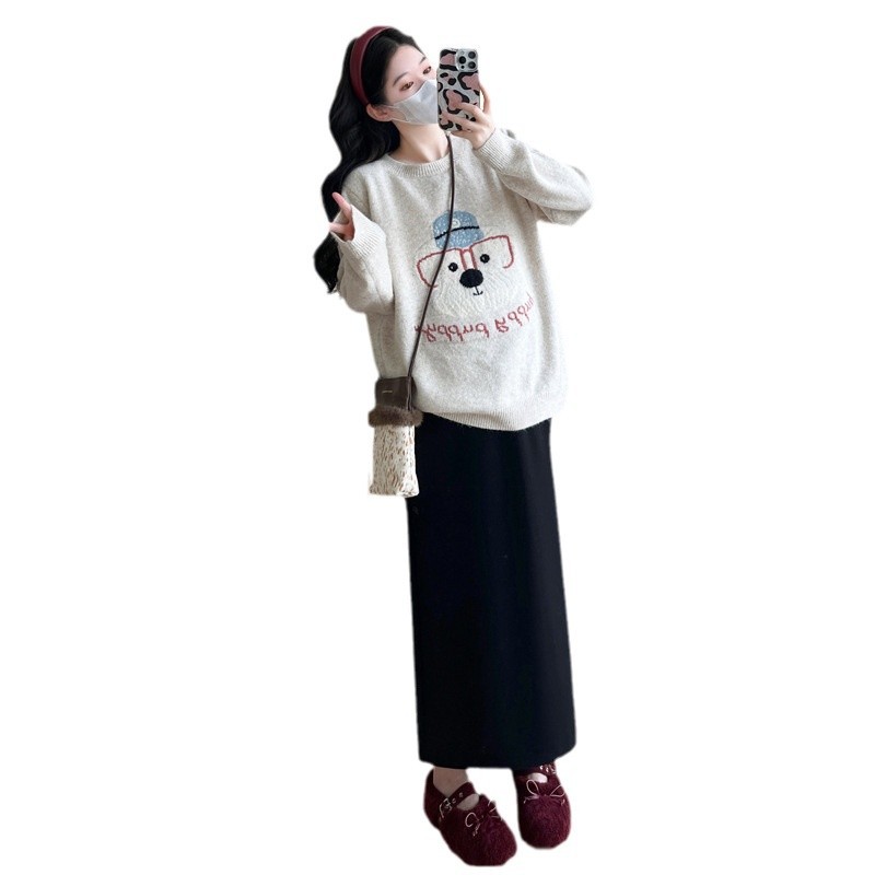 Набор для беременных 2024 осень-зима новая мода корейская версия свободного размера плюс размер минус возраст толстый свитер юбка для живота