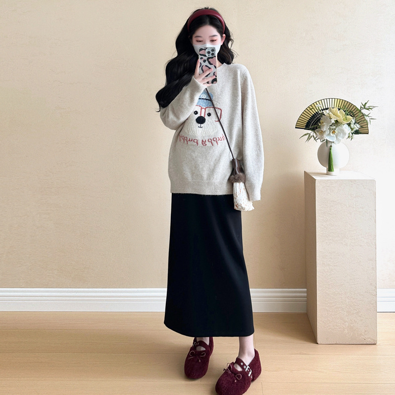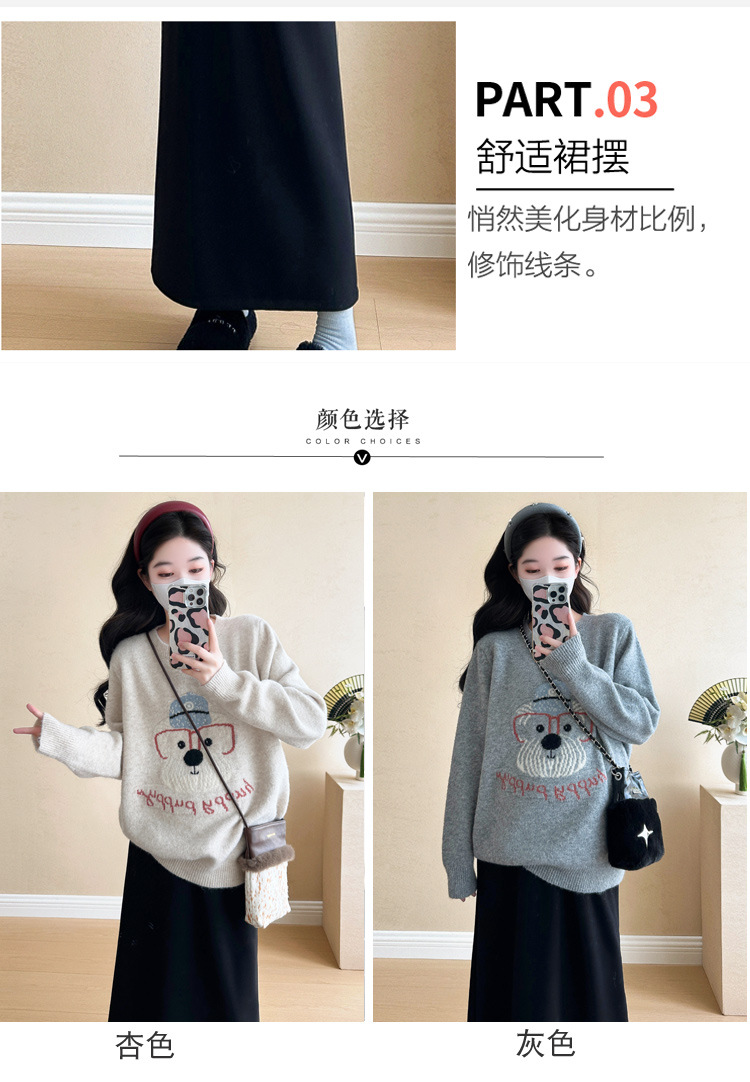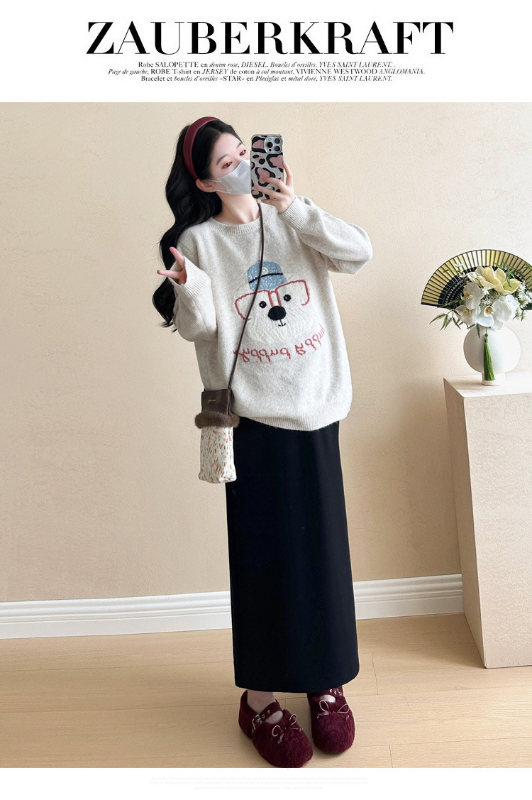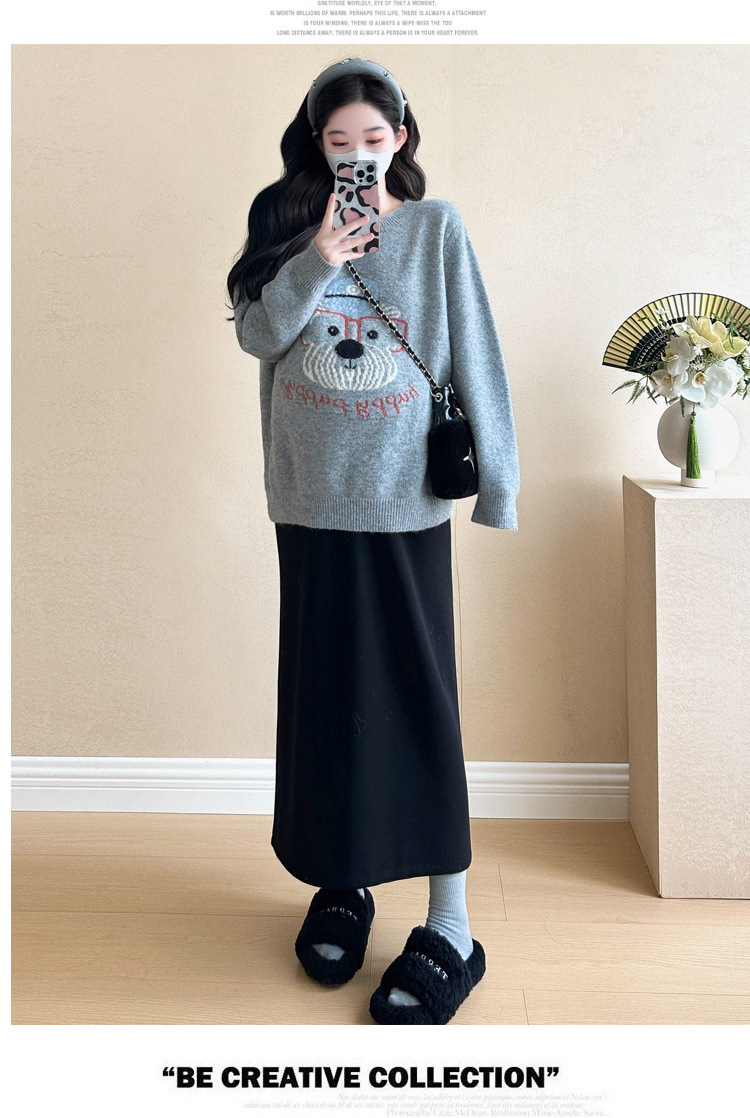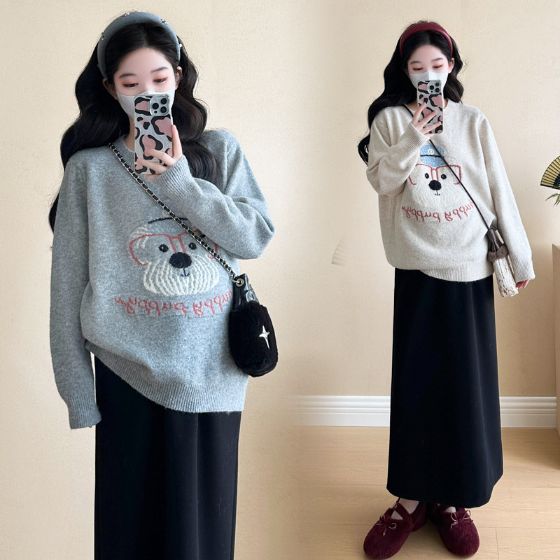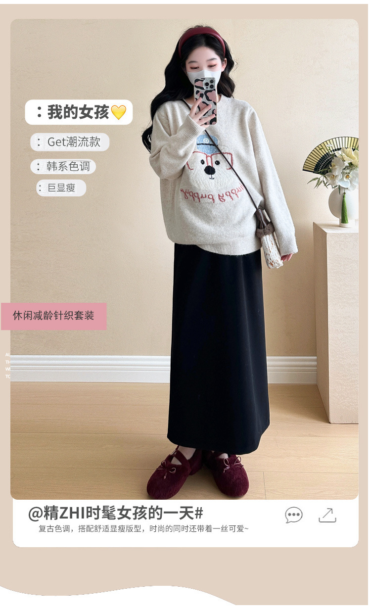 Набор для беременных 2024 осень-зима новая мода корейская версия свободного размера плюс размер минус возраст толстый свитер юбка для живота