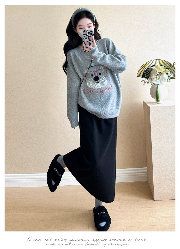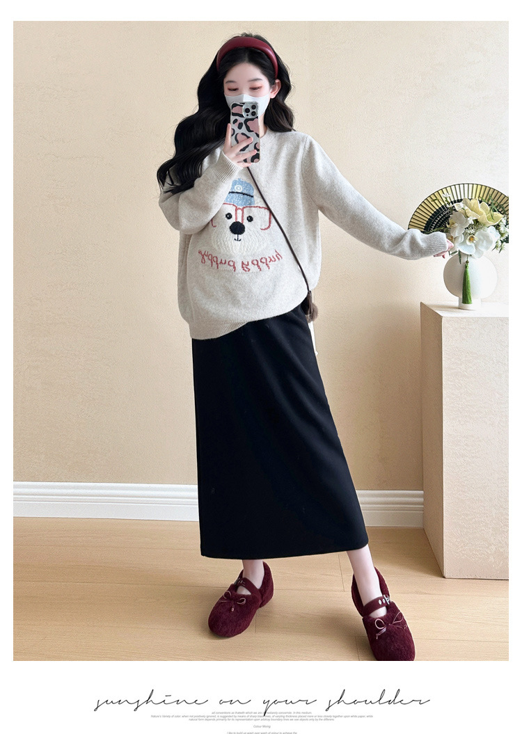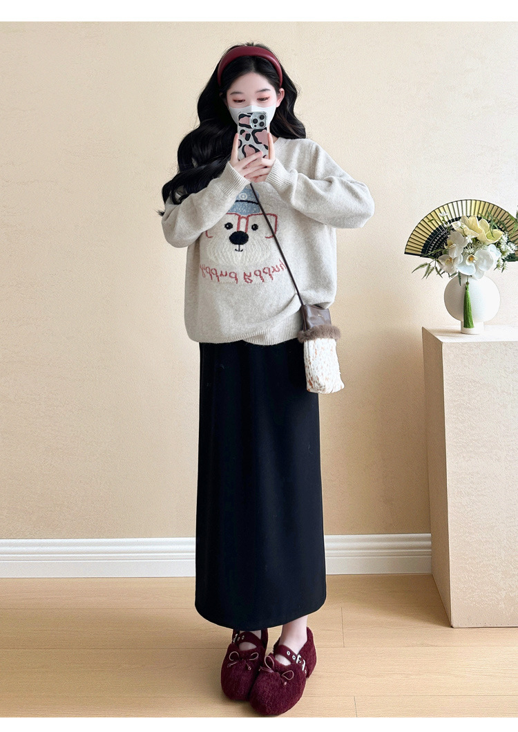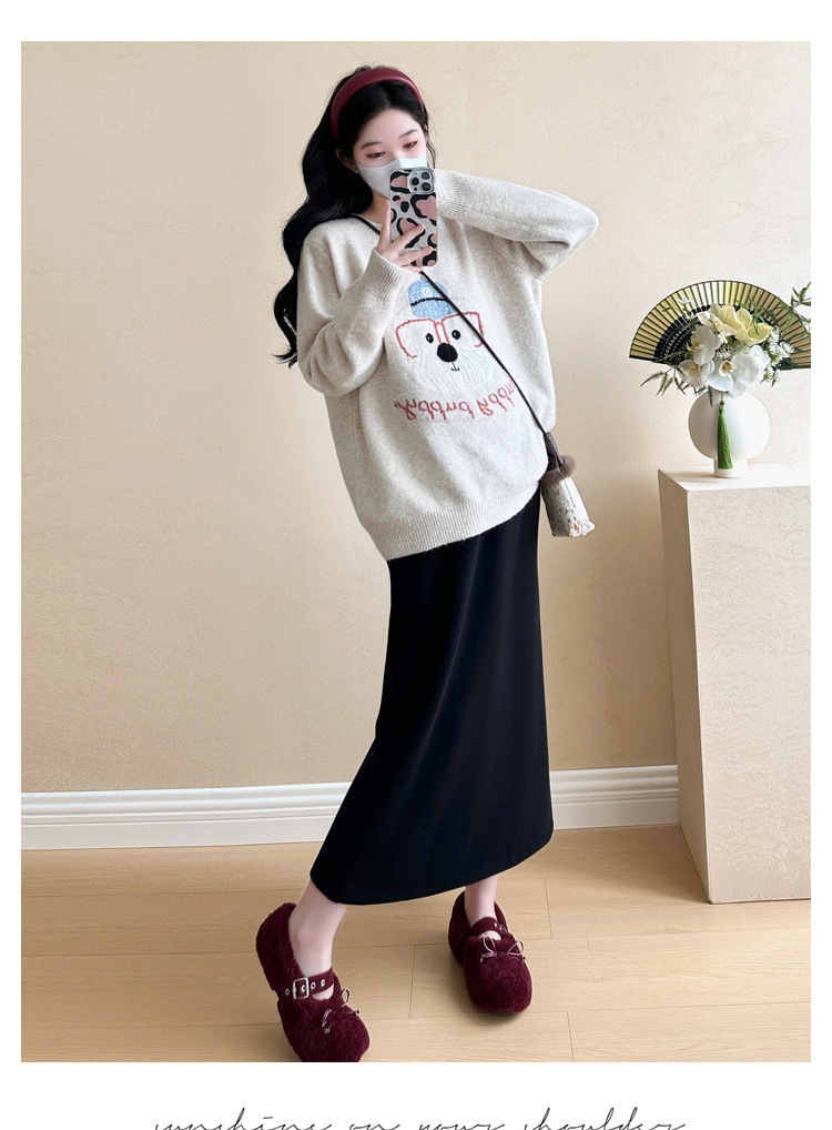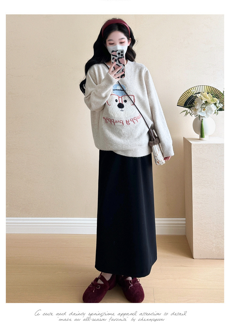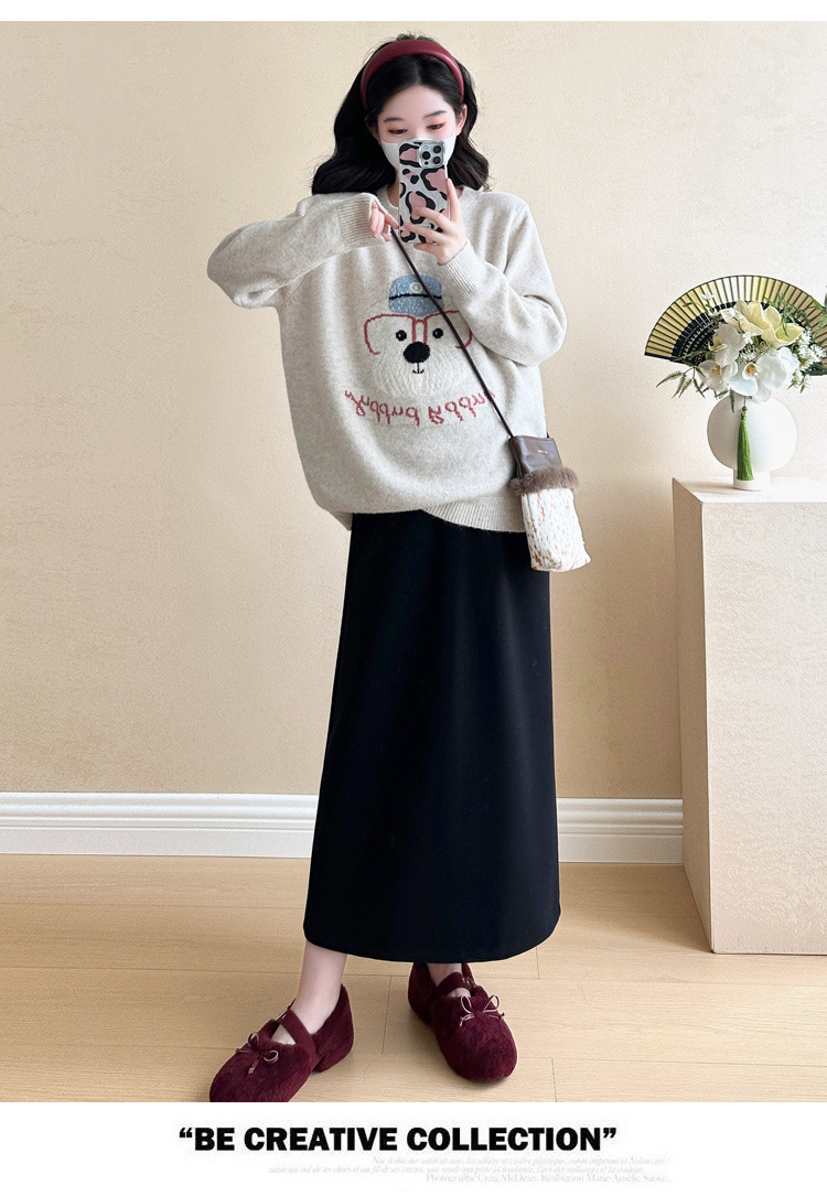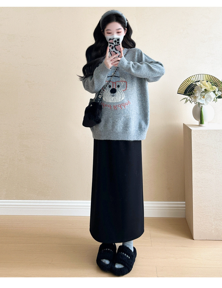 Набор для беременных 2024 осень-зима новая мода корейская версия свободного размера плюс размер минус возраст толстый свитер юбка для живота