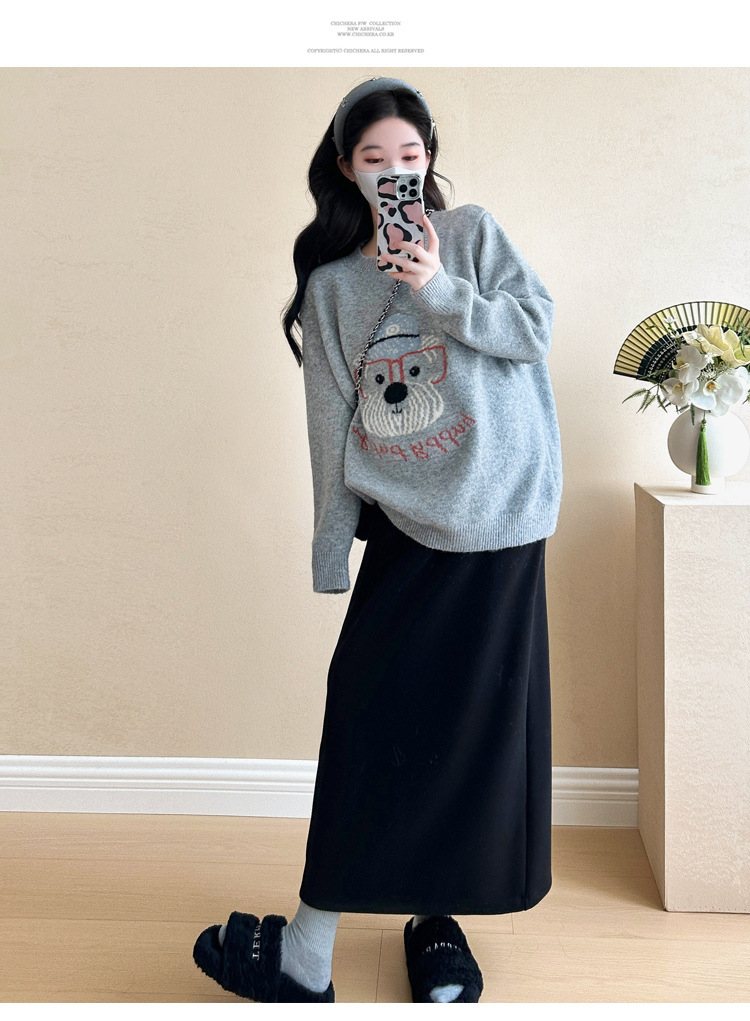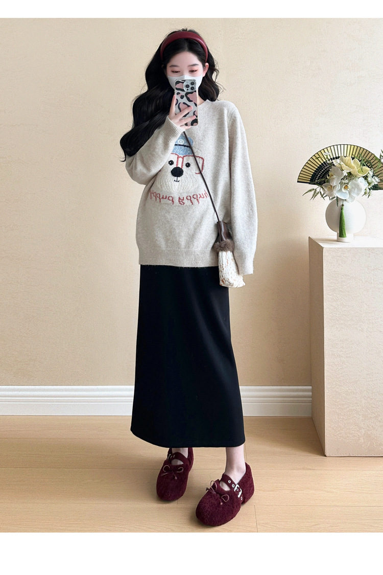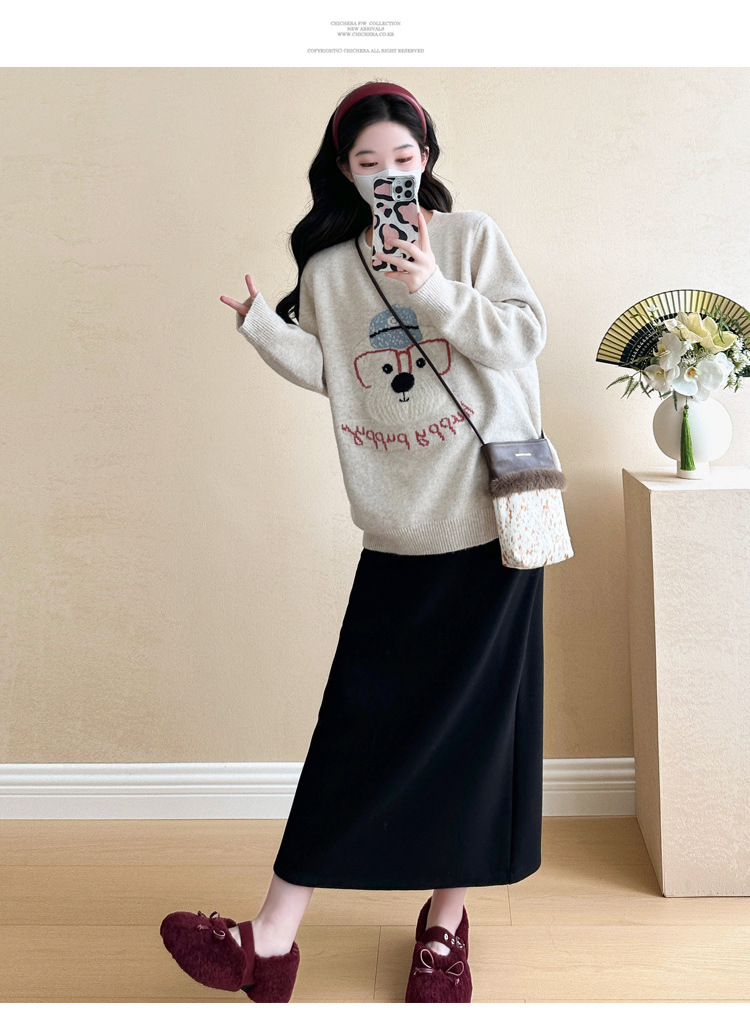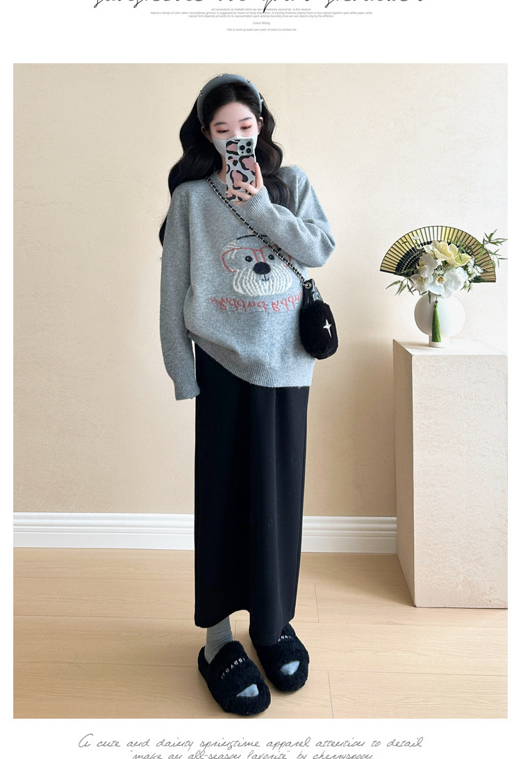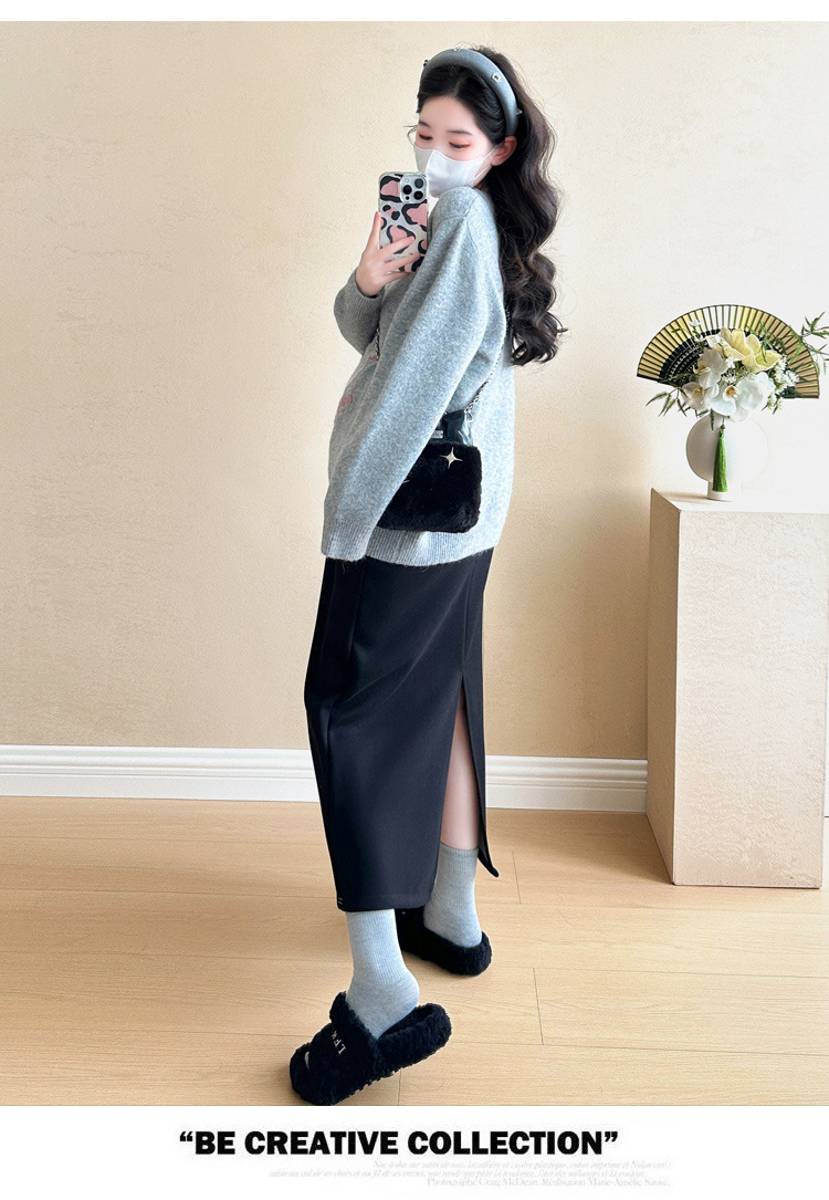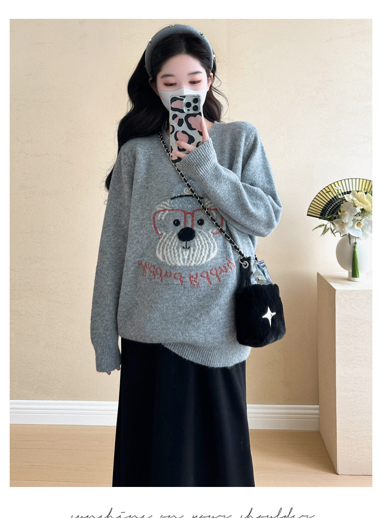 Набор для беременных 2024 осень-зима новая мода корейская версия свободного размера плюс размер минус возраст толстый свитер юбка для живота