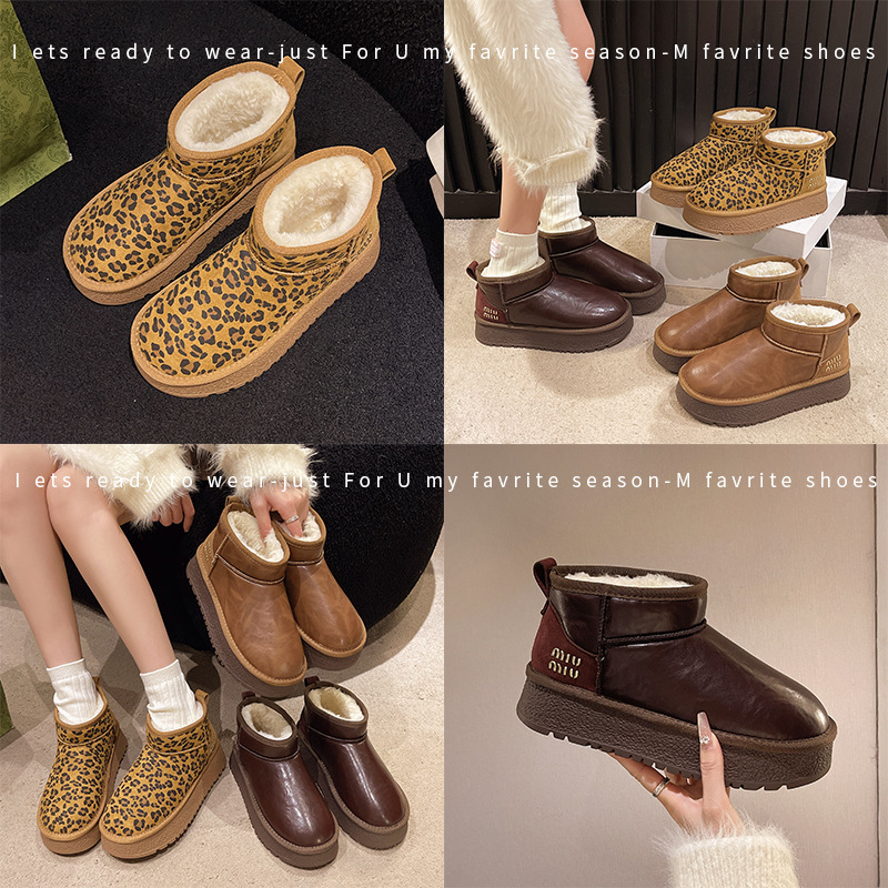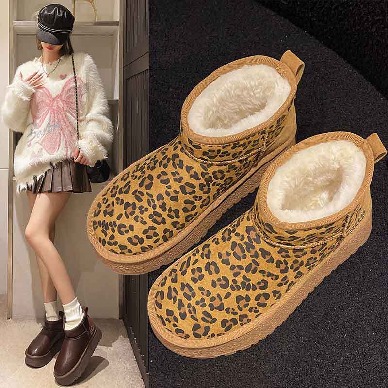 Снежные сапоги кожаные лапши дигл 2024 зимние шерстяные пушистые теплые хлопчатобумажные туфли водонепроницаемые мягкие кожаные толстые женские туфли